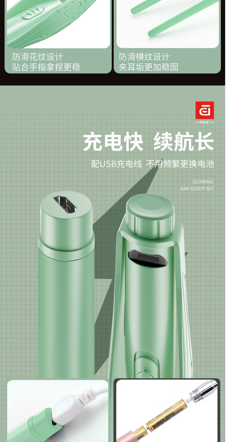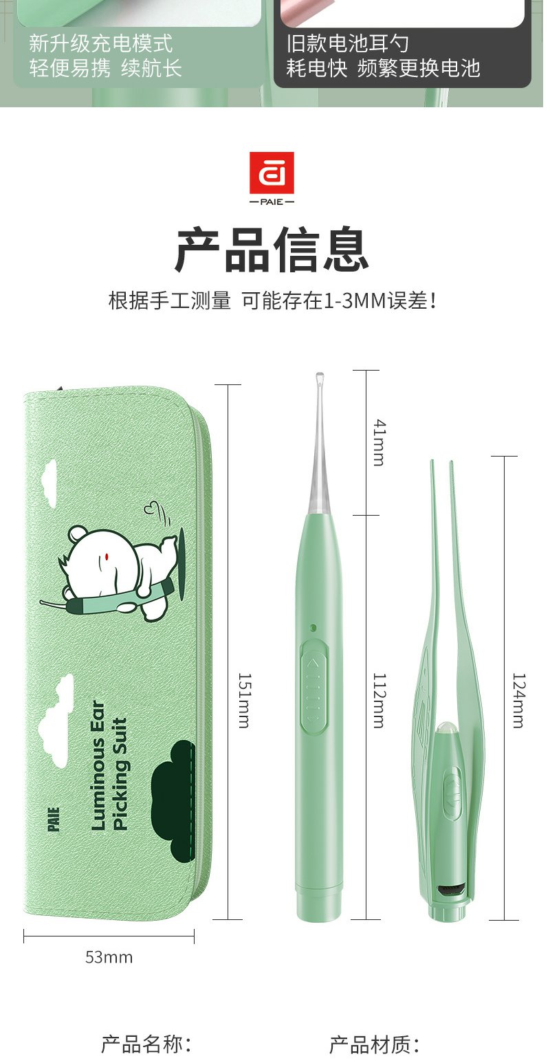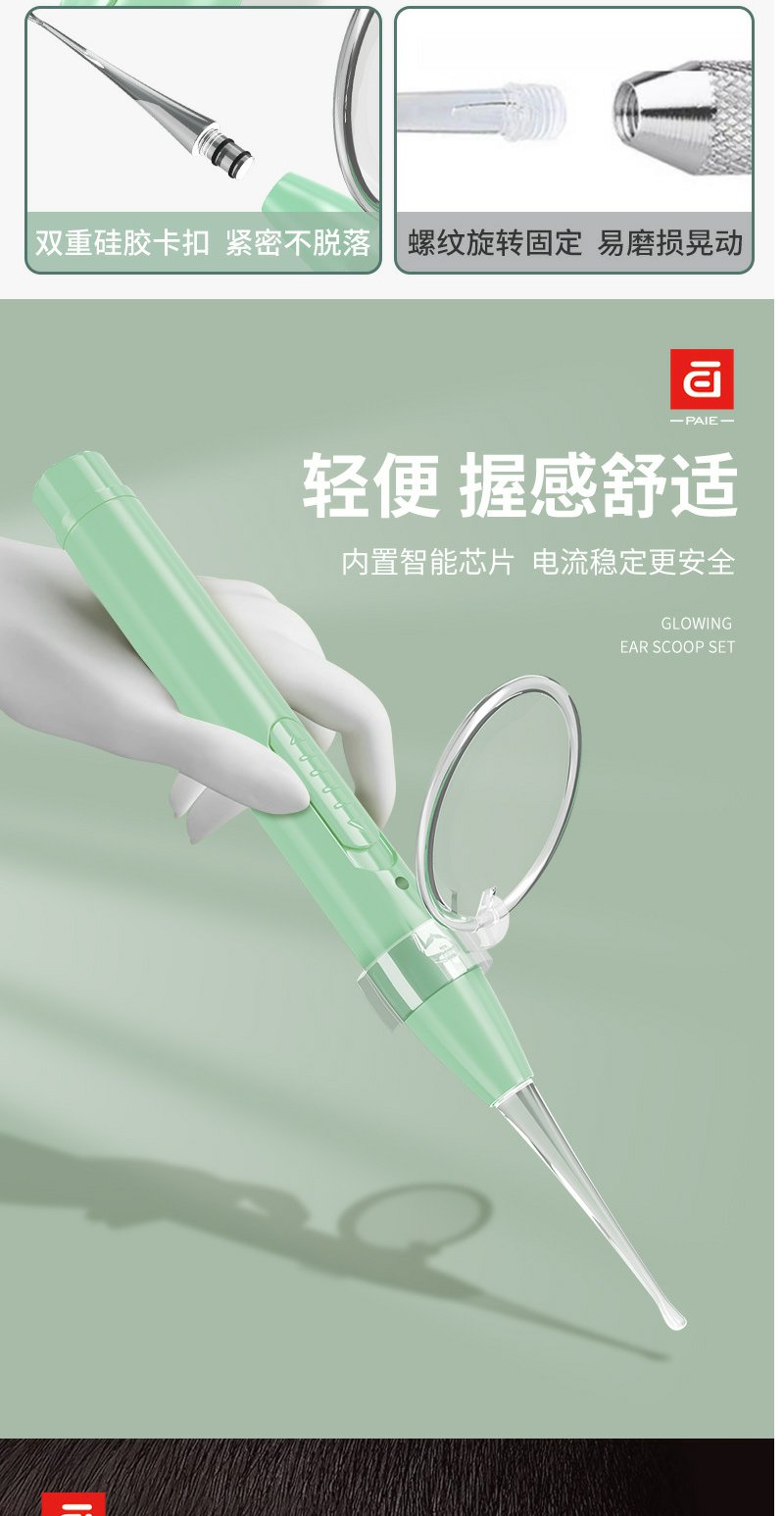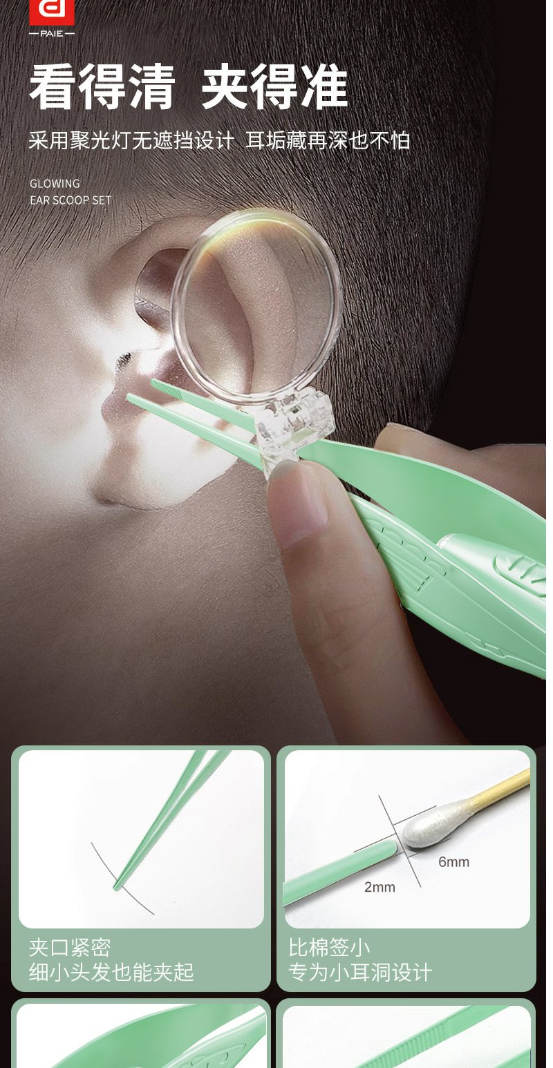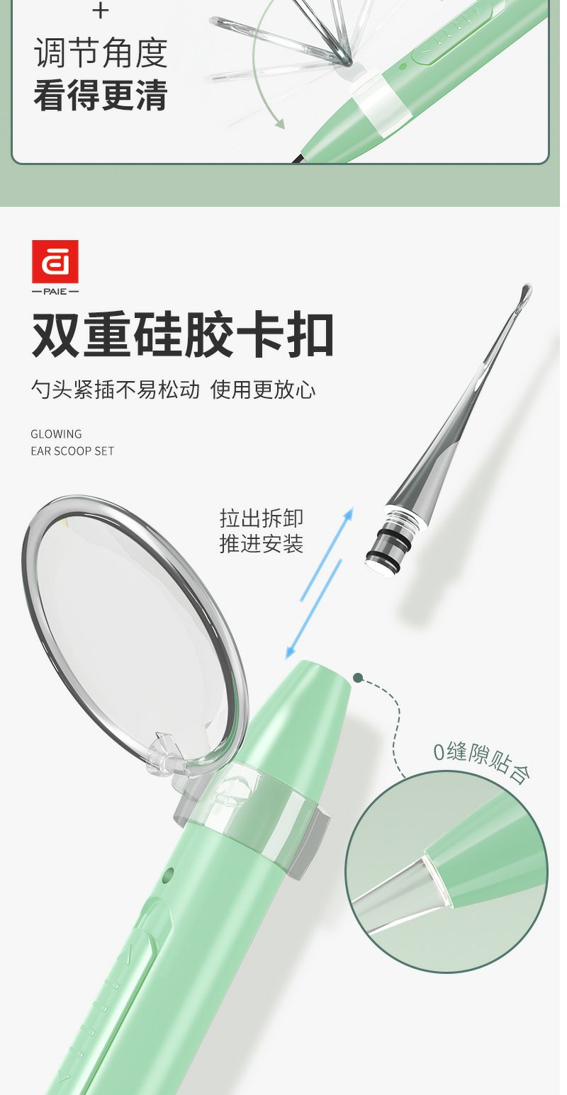 【皮套+放大镜】PAIE儿童宝宝发光耳勺 硅胶软头挖耳勺镊子成人可视带灯掏耳勺