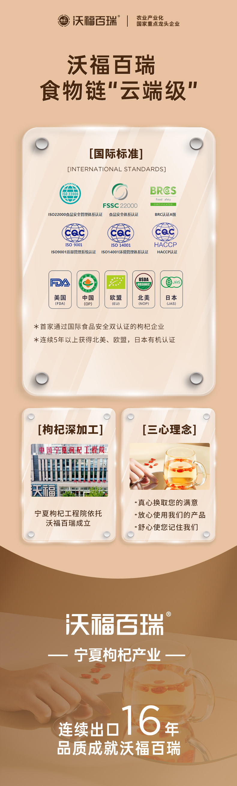 宁夏沃福百瑞是有机枸杞生产专家,枸杞养生专家。国际品牌枸杞产品的缔造者。