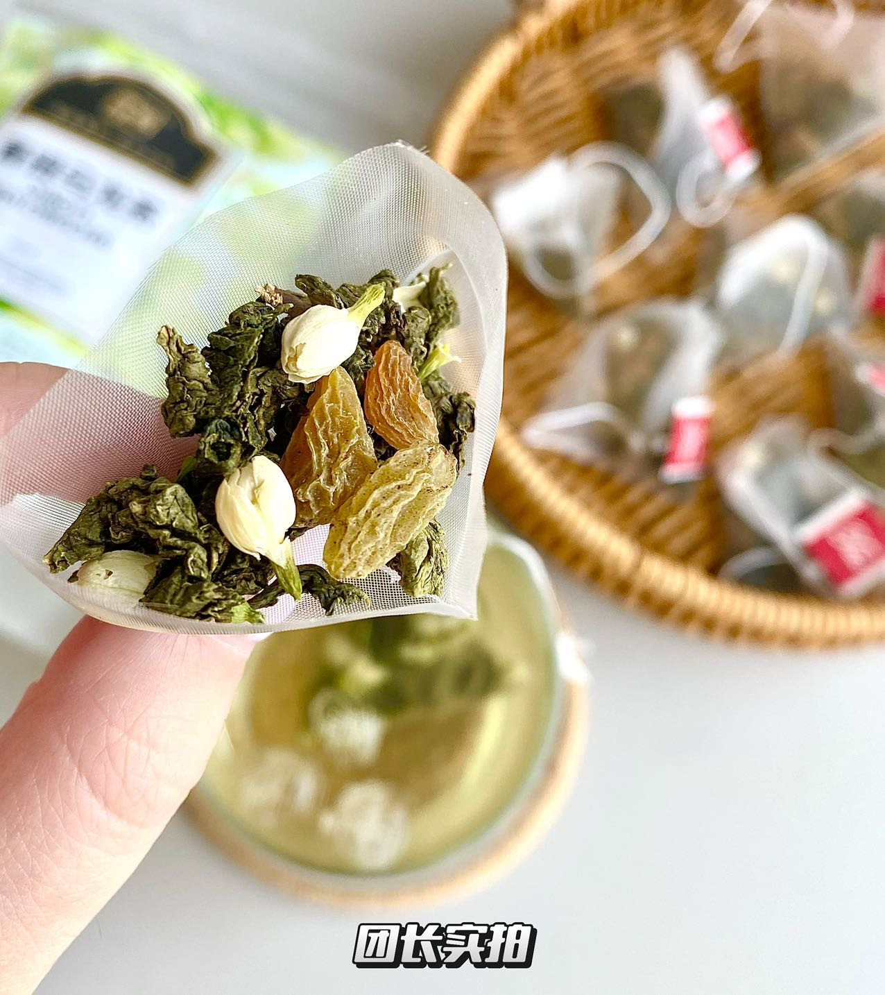 【青提荣莉冷泡茶】 巨清爽!巨解渴 夏天多加点冰块 冰冰凉凉很过瘾! 乌龙茶+葡萄干十茉莉花!花果香和茶香,巨清新!一次一包,喝一杯根本不够!