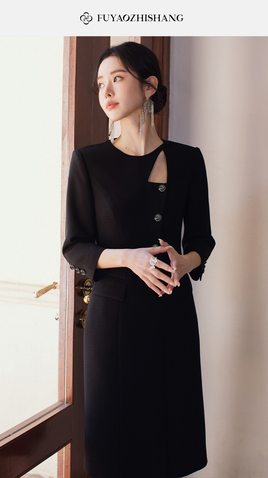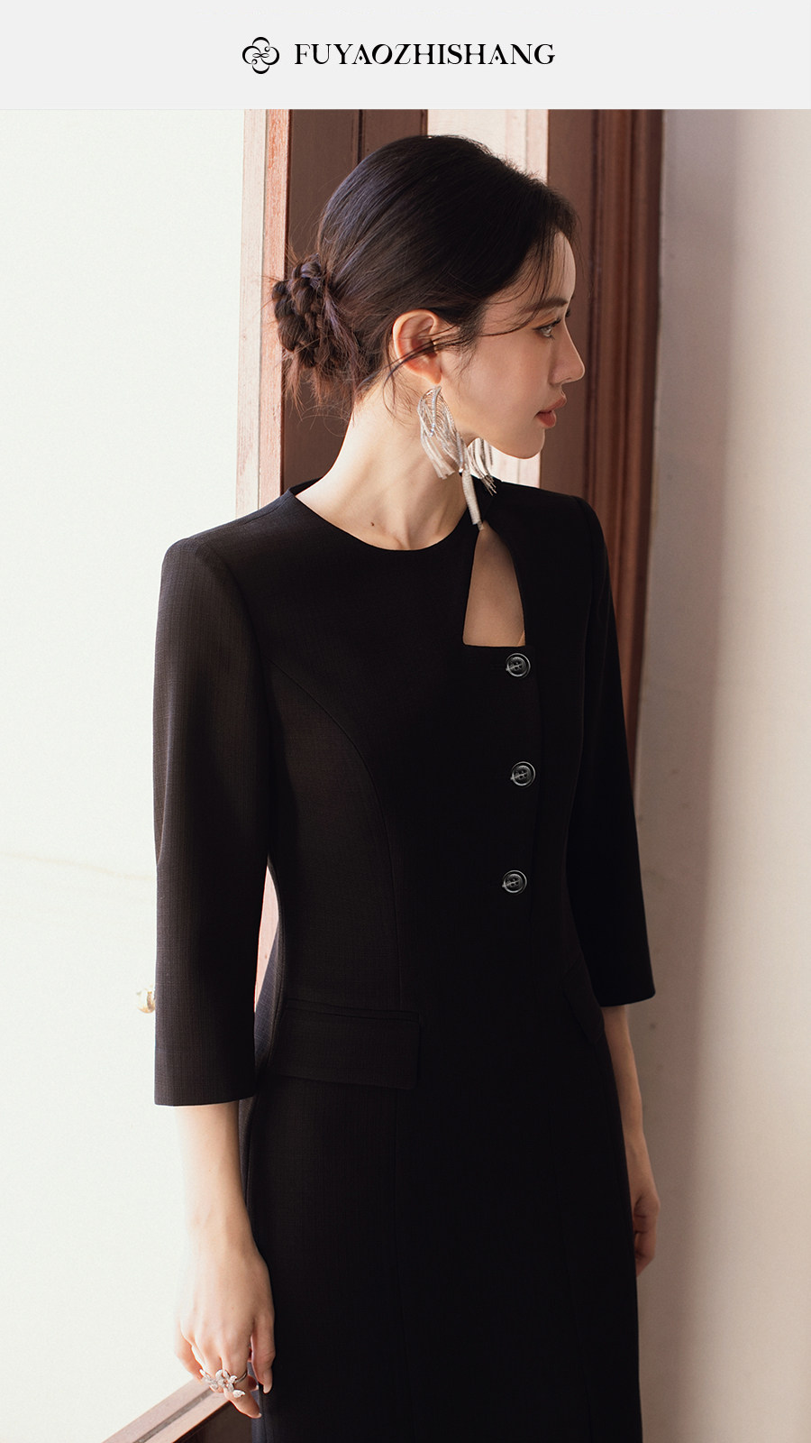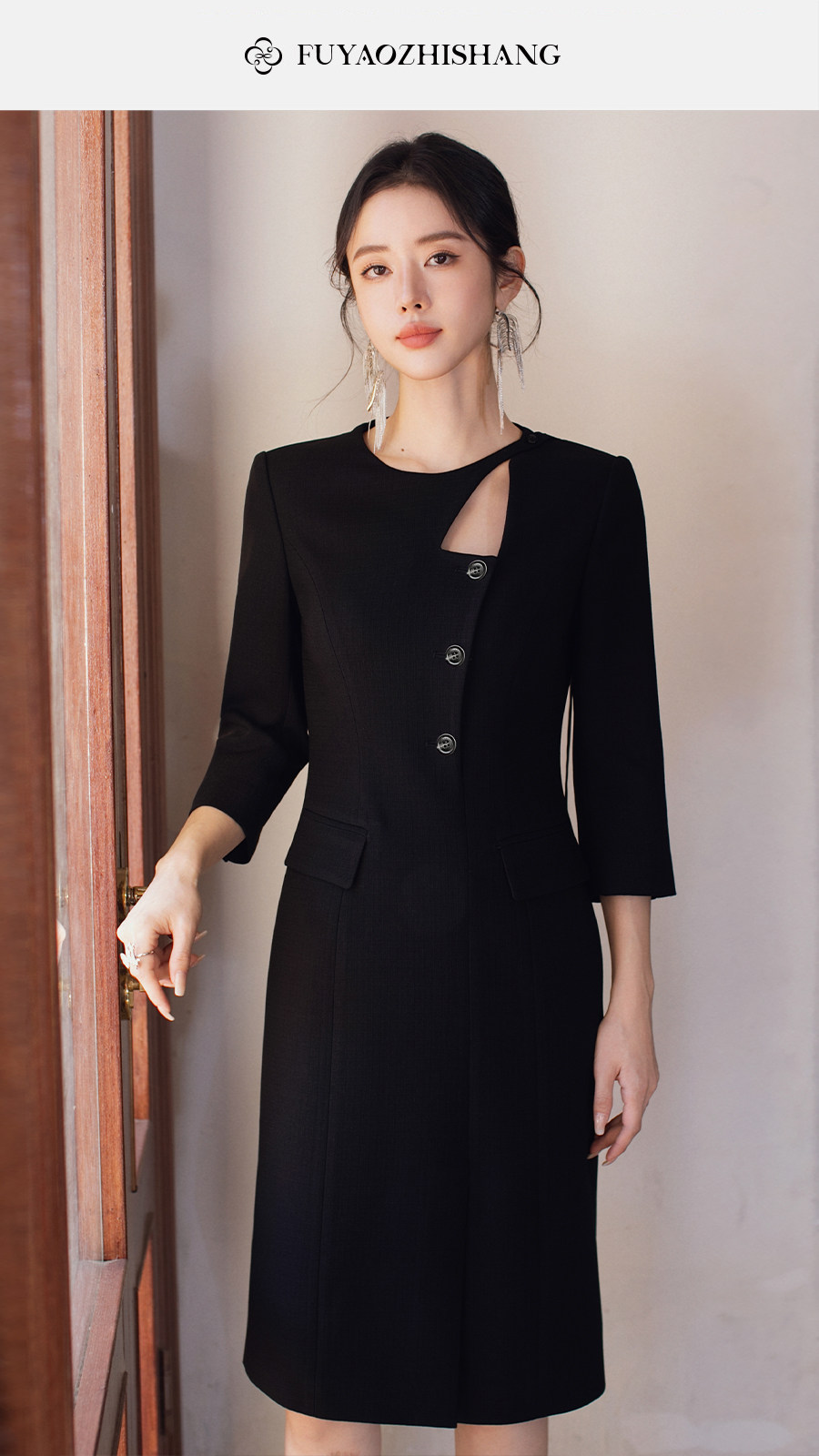 FUYAO扶摇直上 优雅国风连衣裙女新中式圆领裙子赫本风醋酸小黑裙