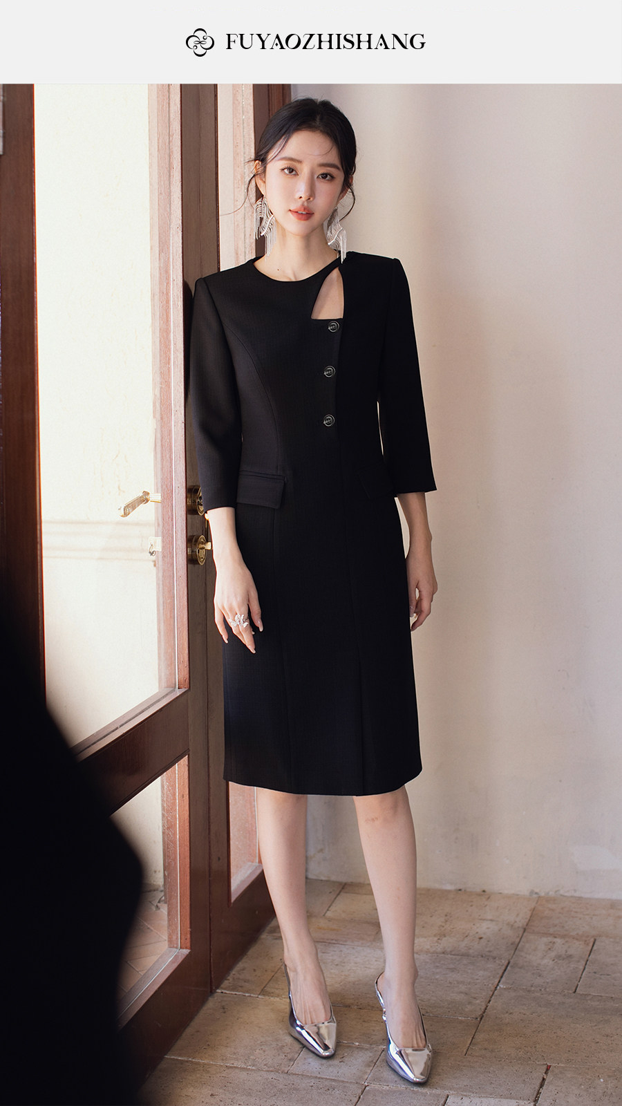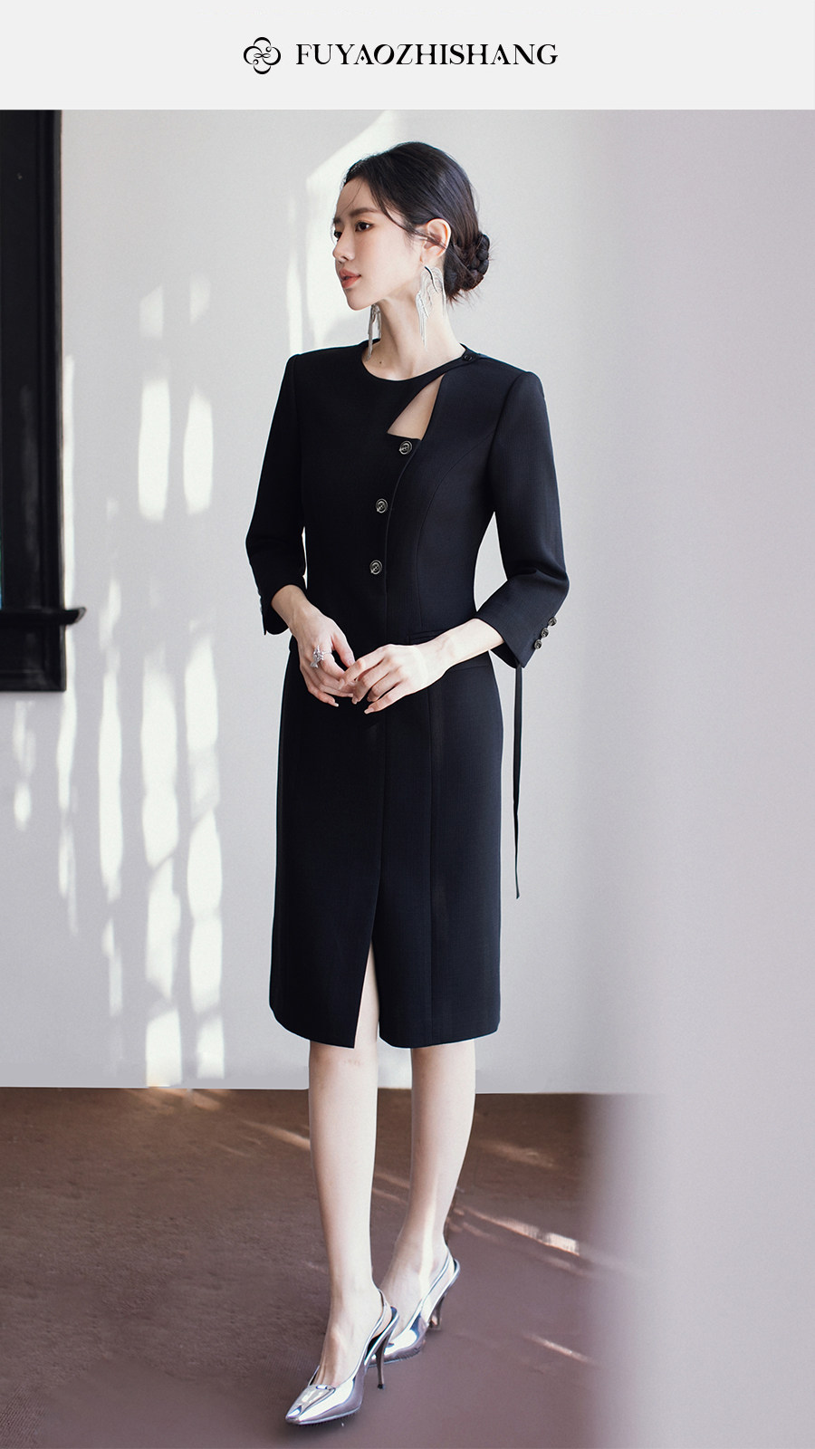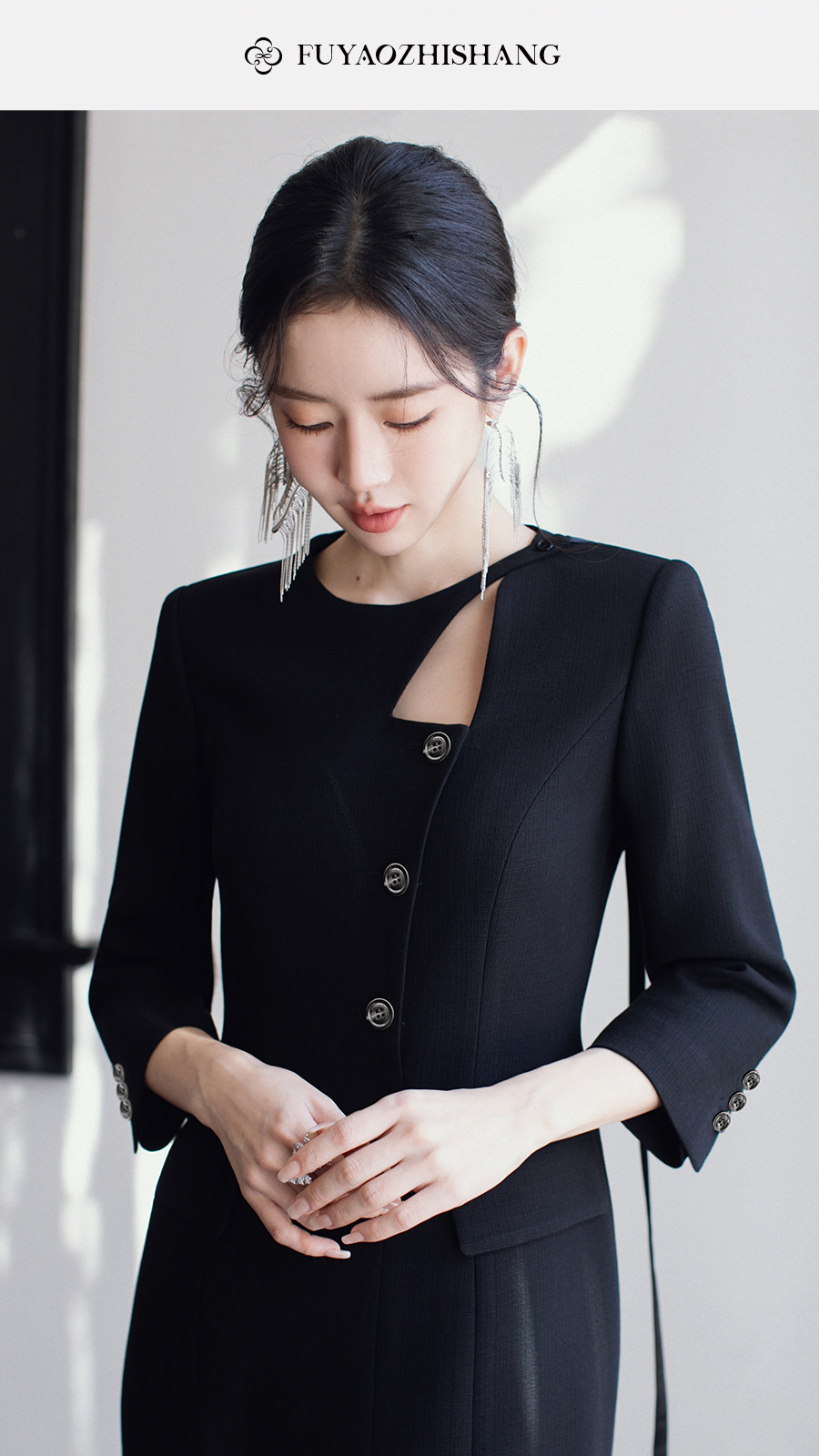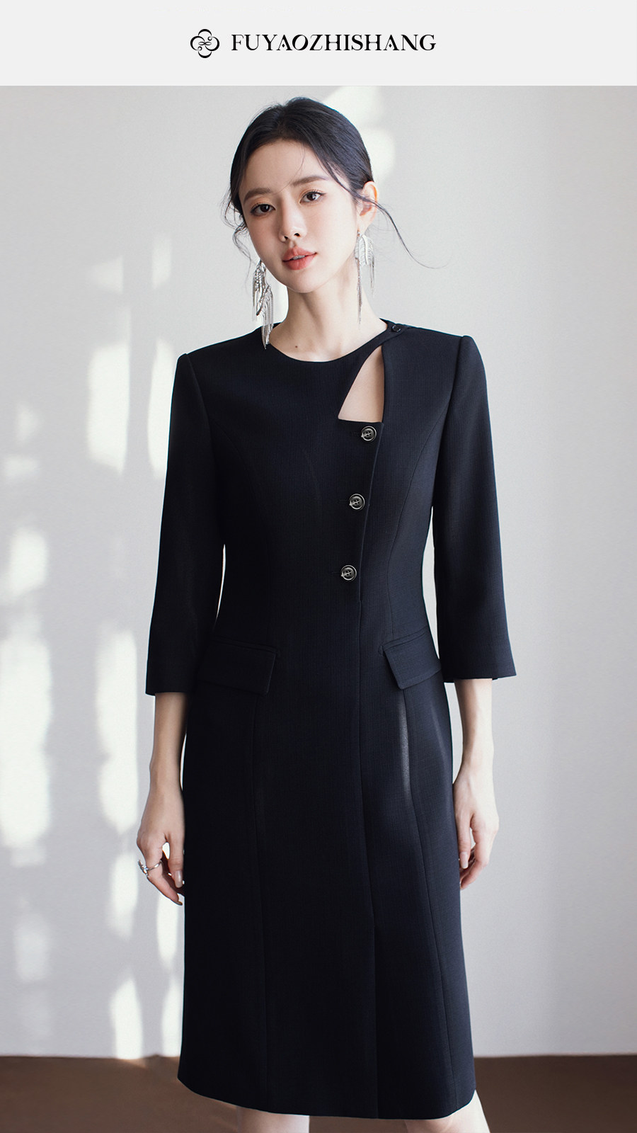 FUYAO扶摇直上 优雅国风连衣裙女新中式圆领裙子赫本风醋酸小黑裙