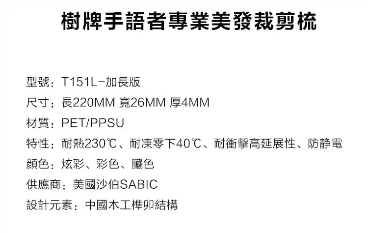 树牌梳子 TREE专业剪发梳子增强中长发梳T151L