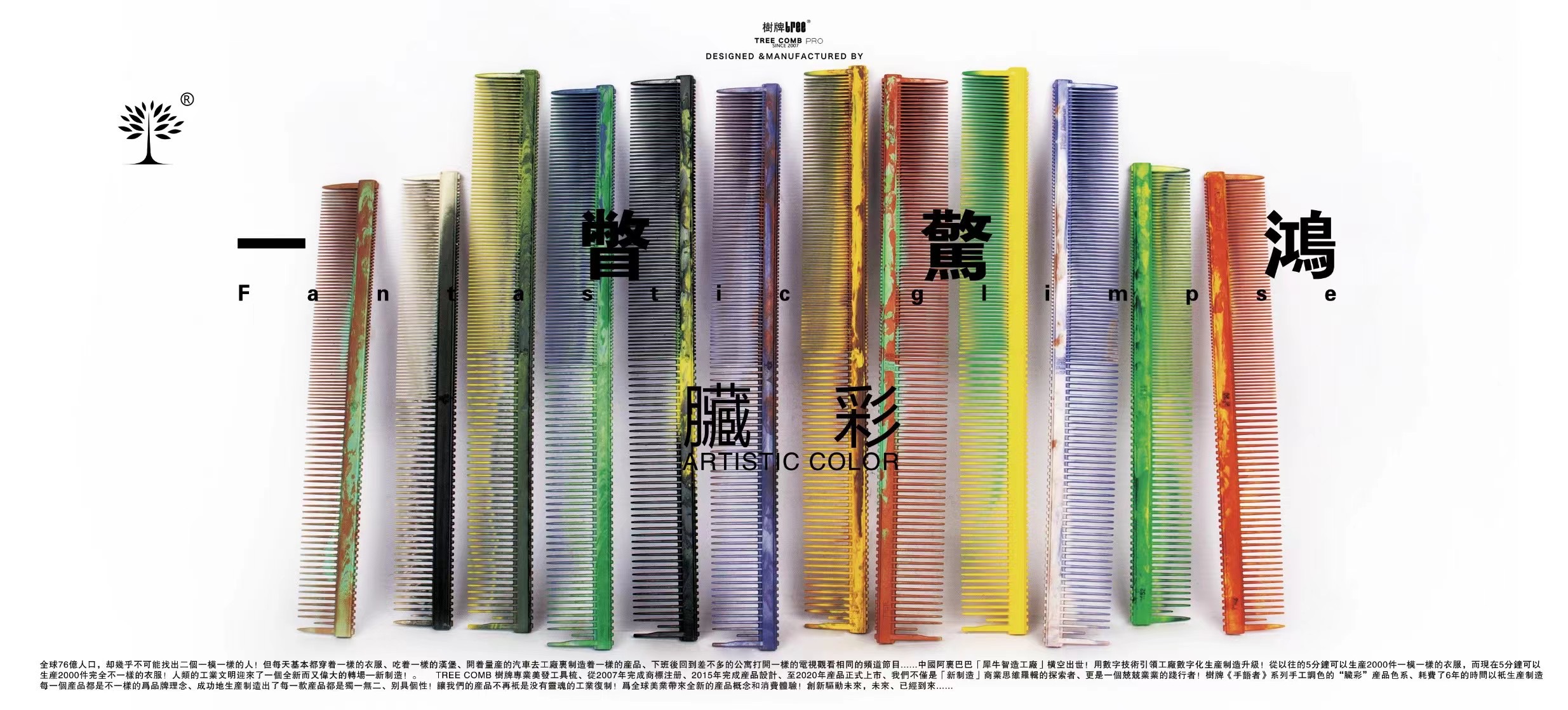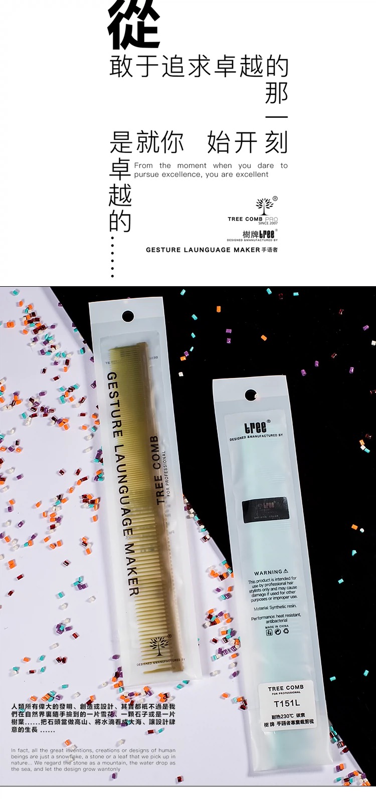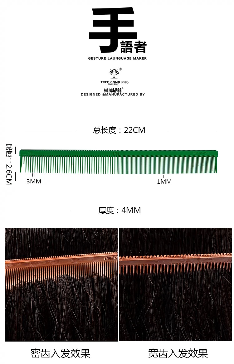 树牌梳子 TREE专业剪发梳子标准版短发梳系列T52常规色脏彩