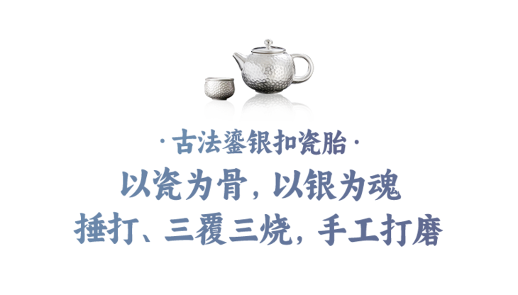 眼前的银壶虽然与手工捶打的传统银壶,并无二致,但却兼具银器与瓷器之美。