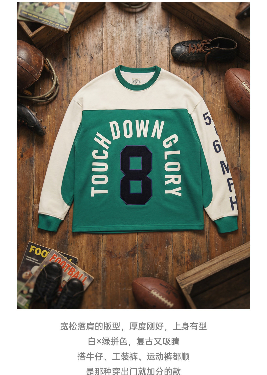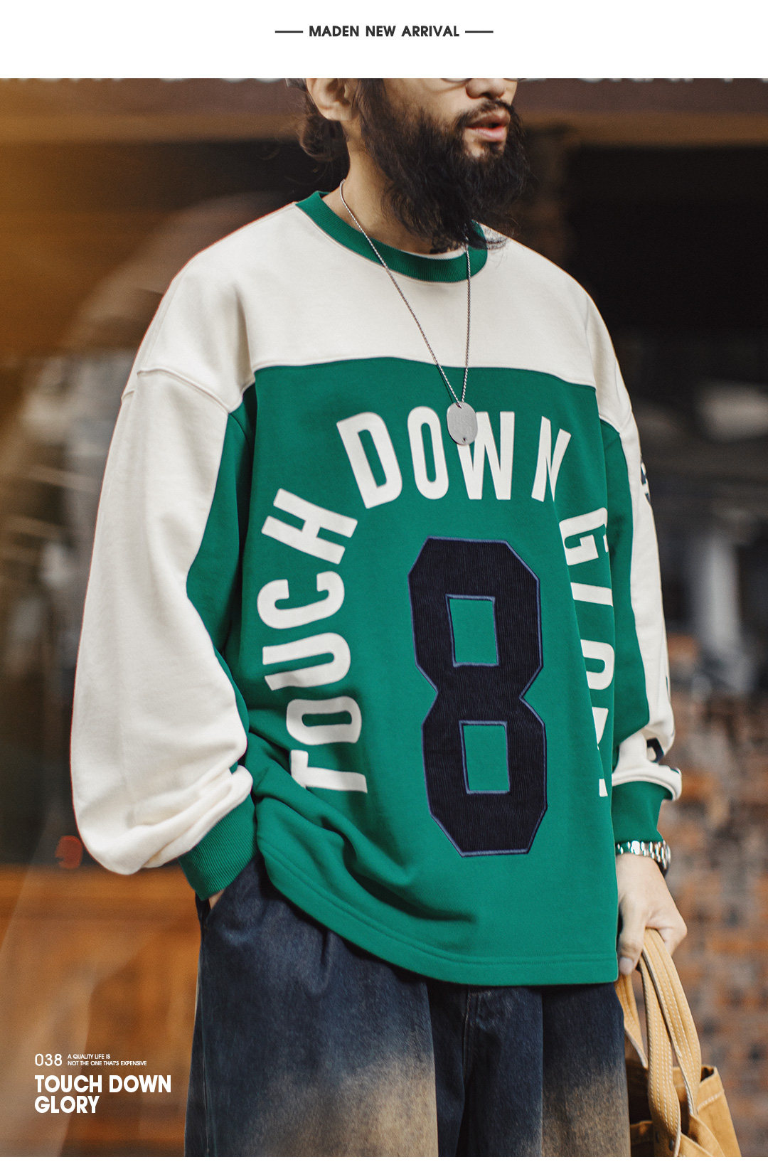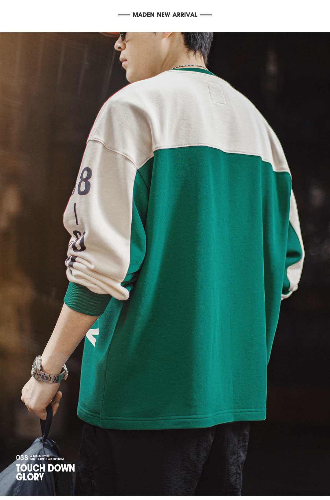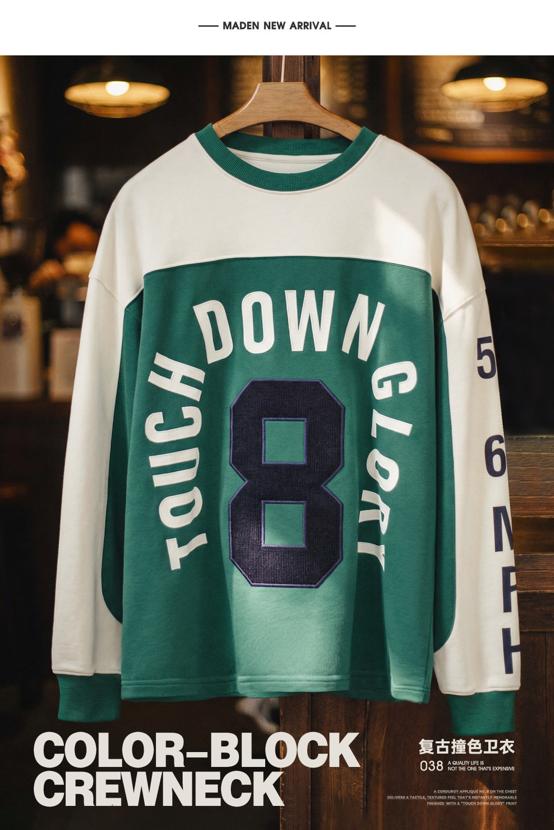 马登工装美式复古球衣风撞色长袖T恤数字圆领套头卫衣外套男款春