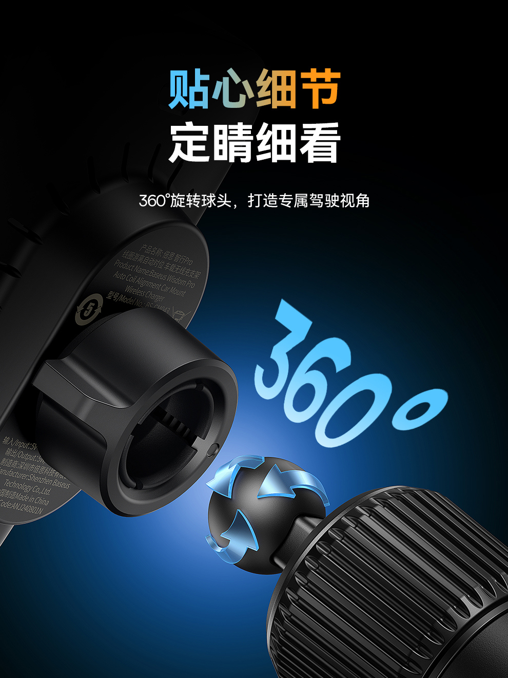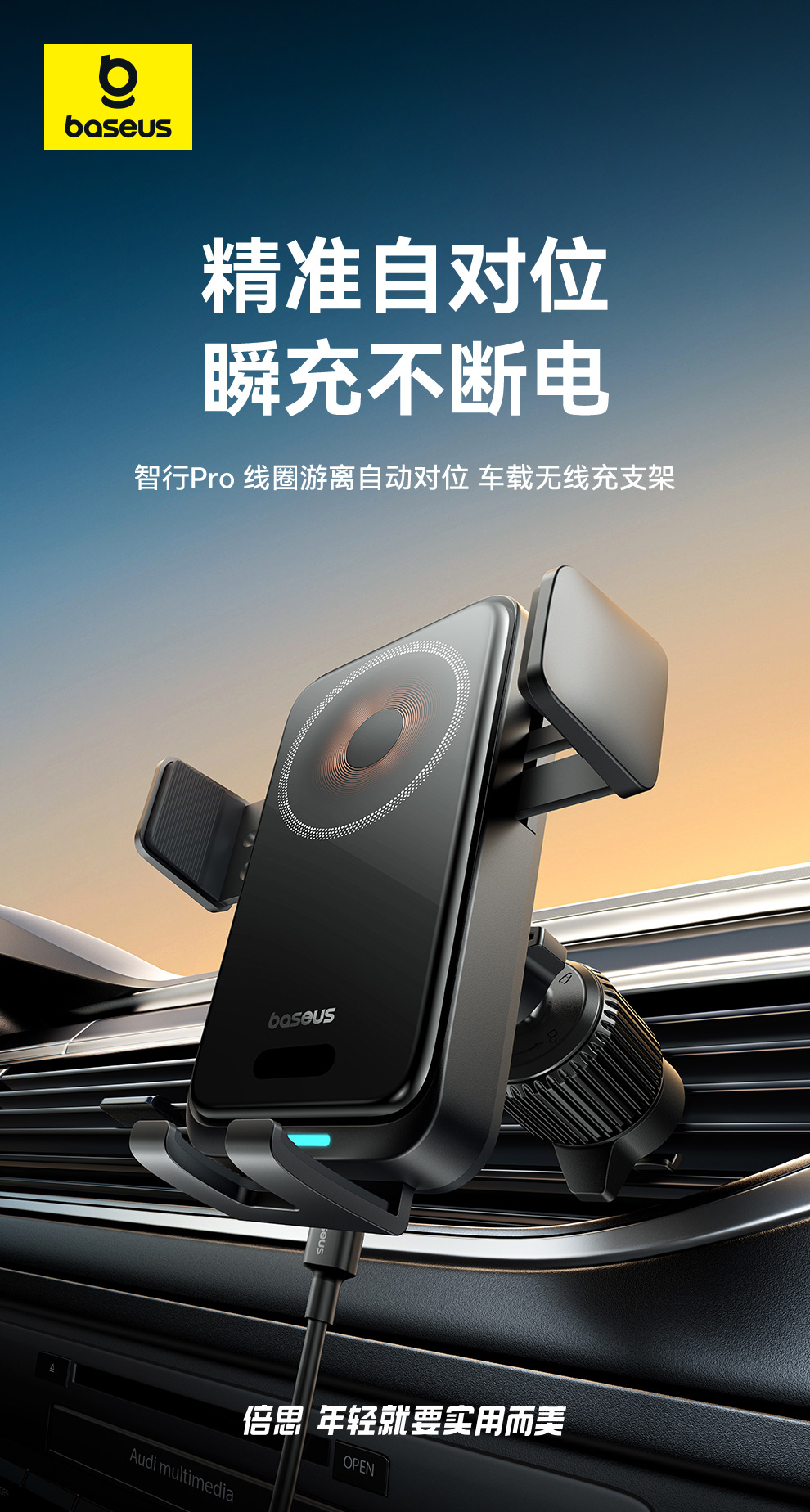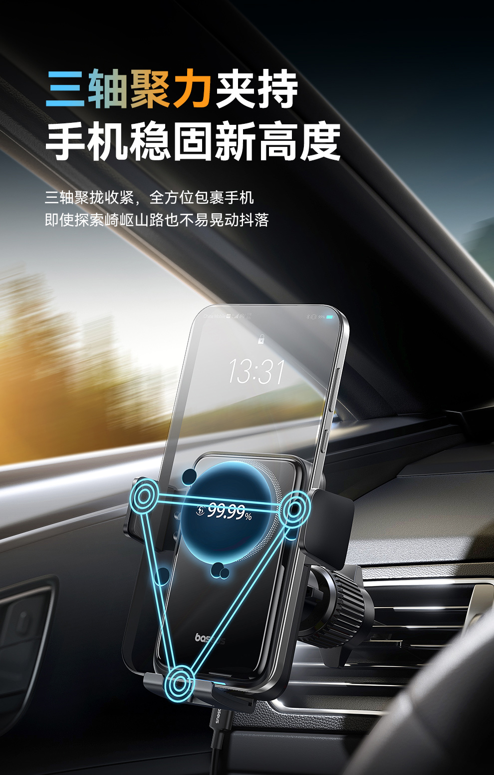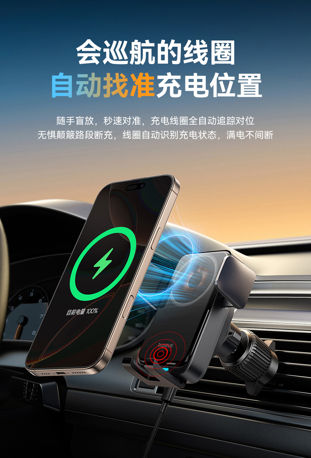 【十一专享】倍思 智行Pro 线圈游离自动对位 车载无线充支架 出风口版