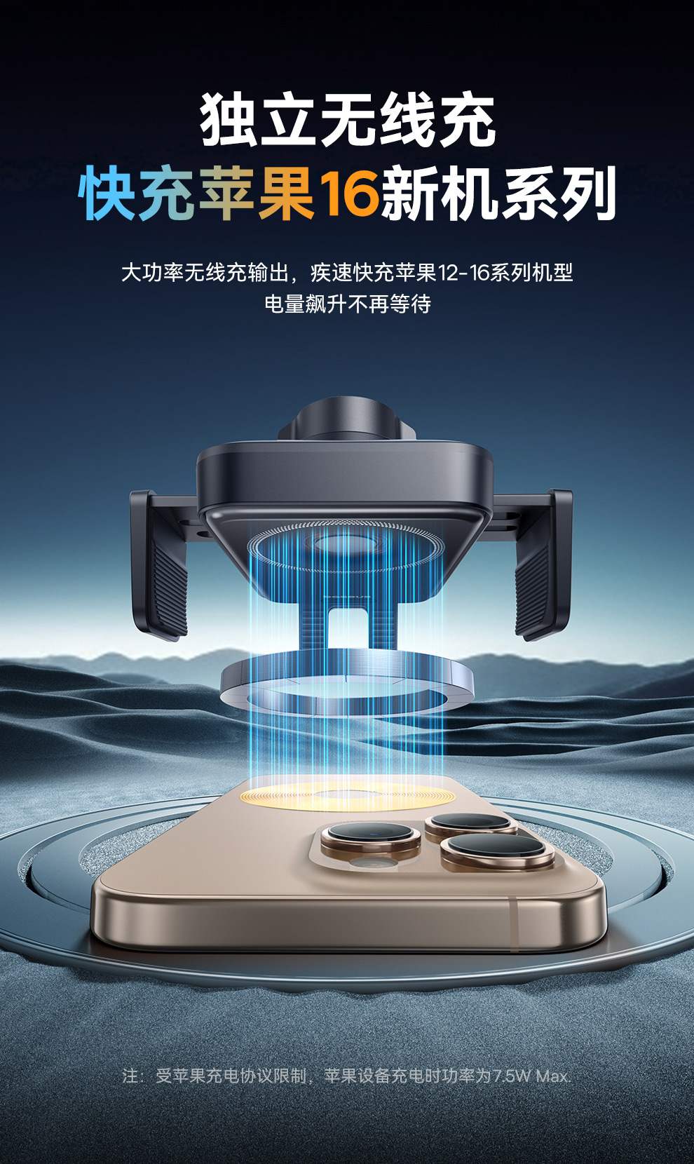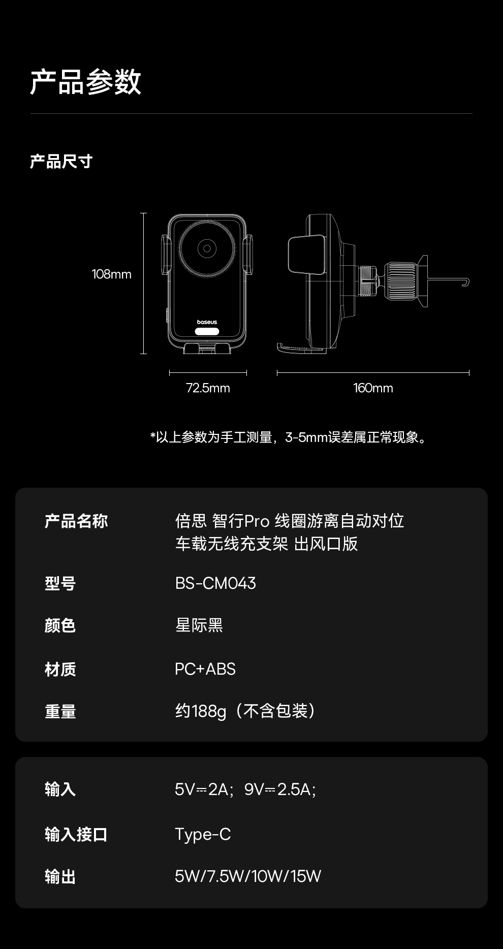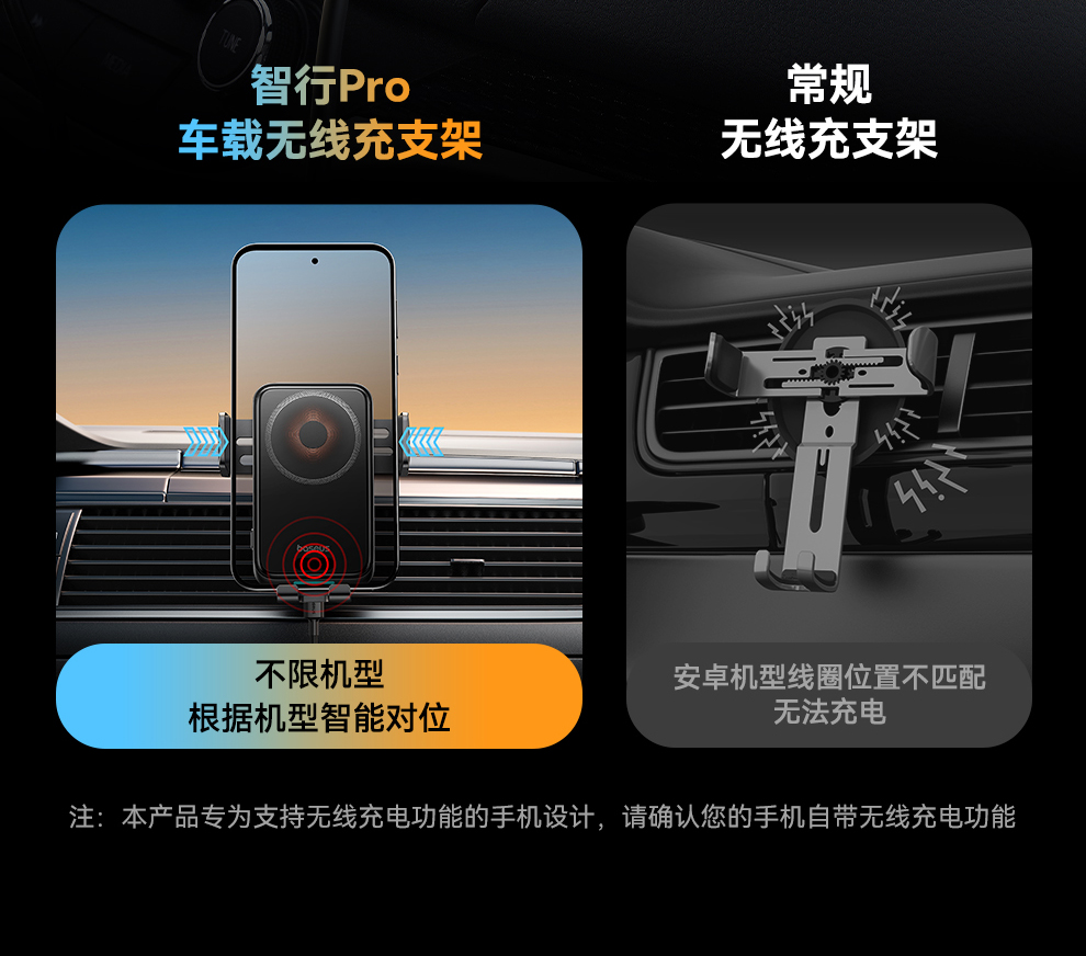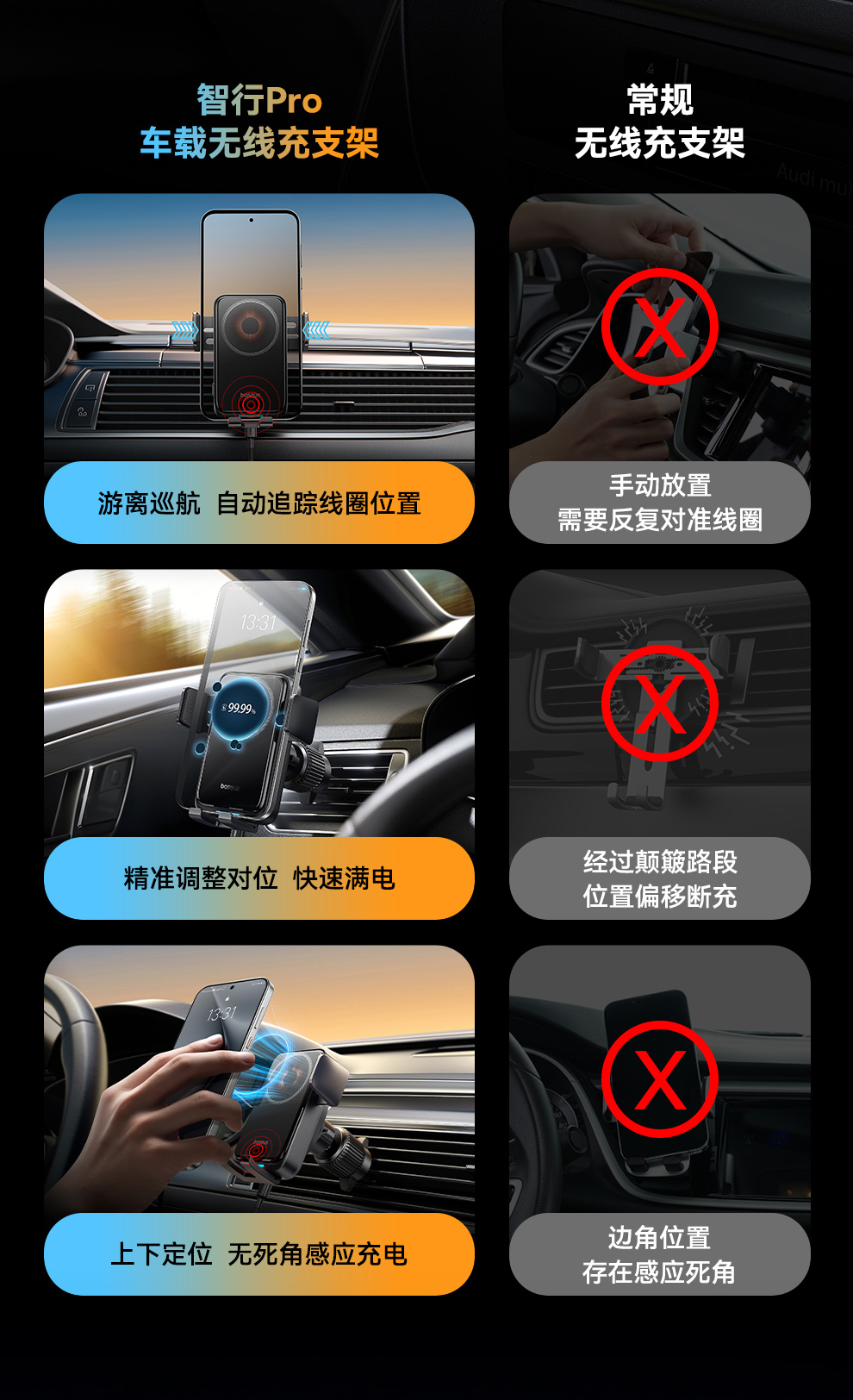 【十一专享】倍思 智行Pro 线圈游离自动对位 车载无线充支架 出风口版