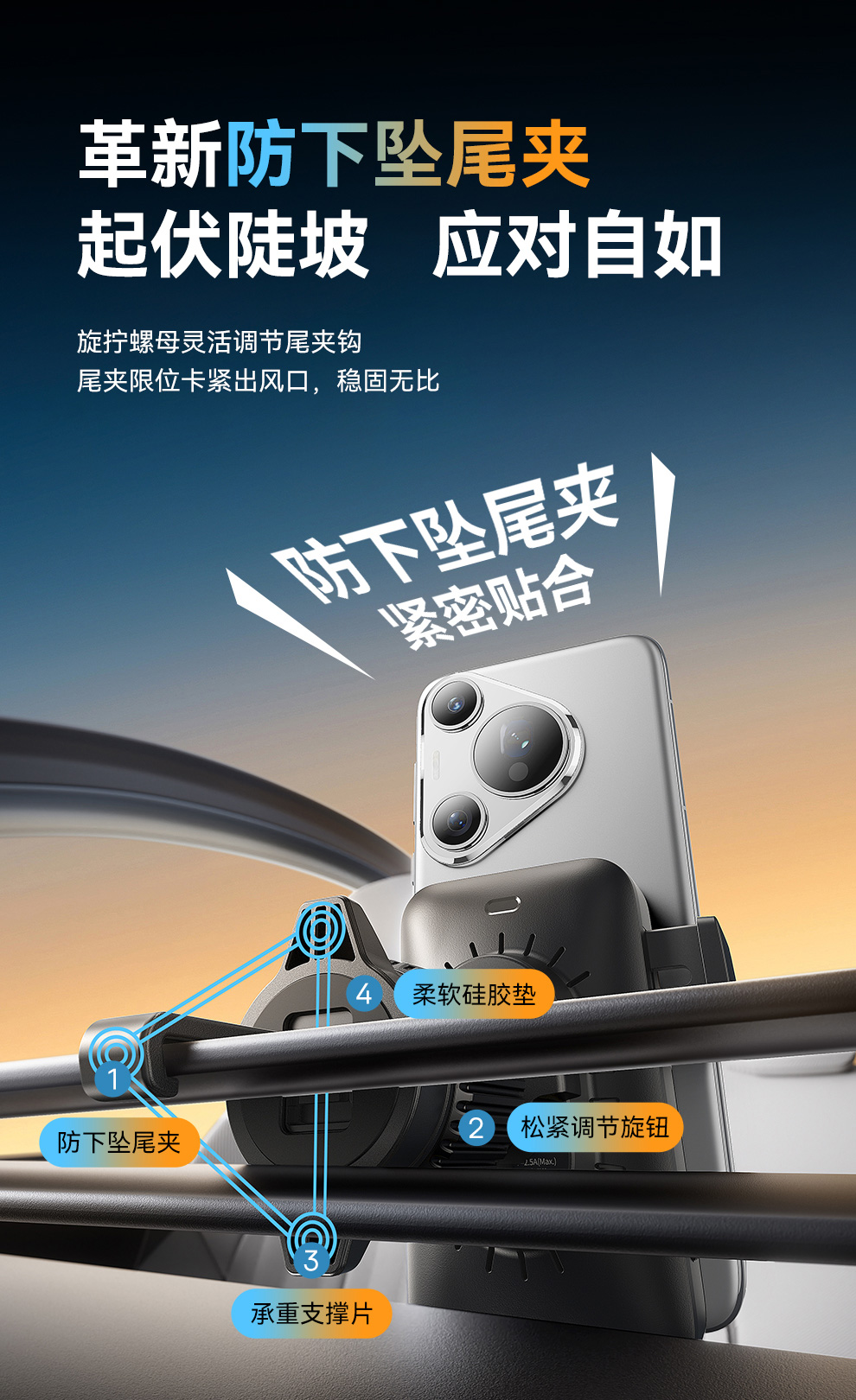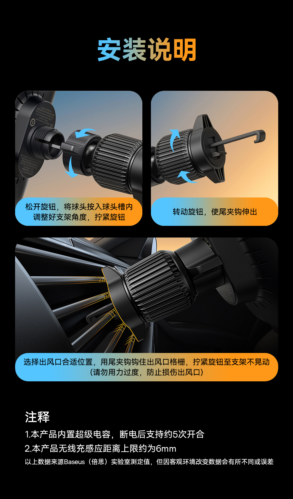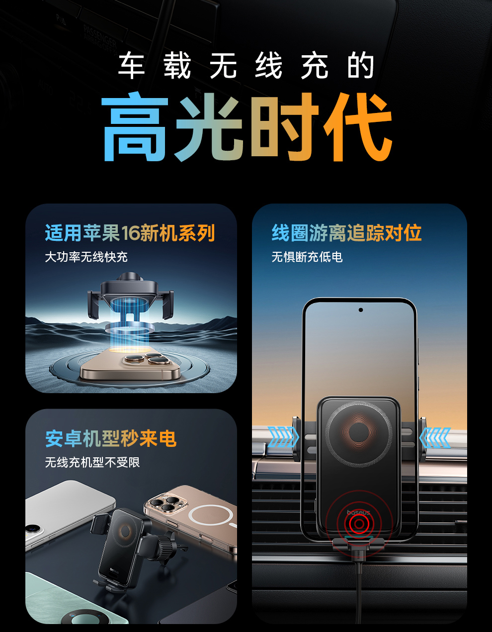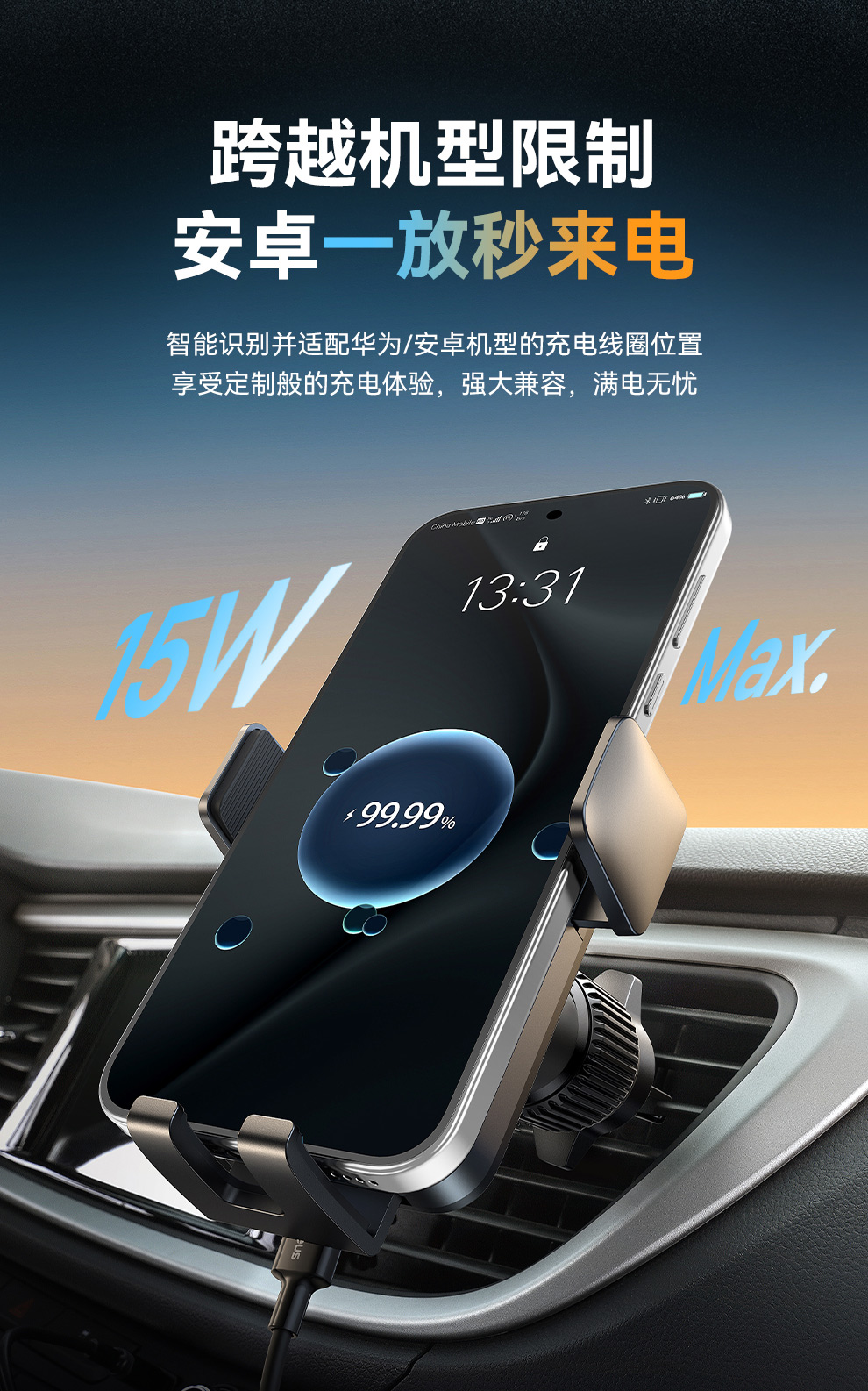 【十一专享】倍思 智行Pro 线圈游离自动对位 车载无线充支架 出风口版