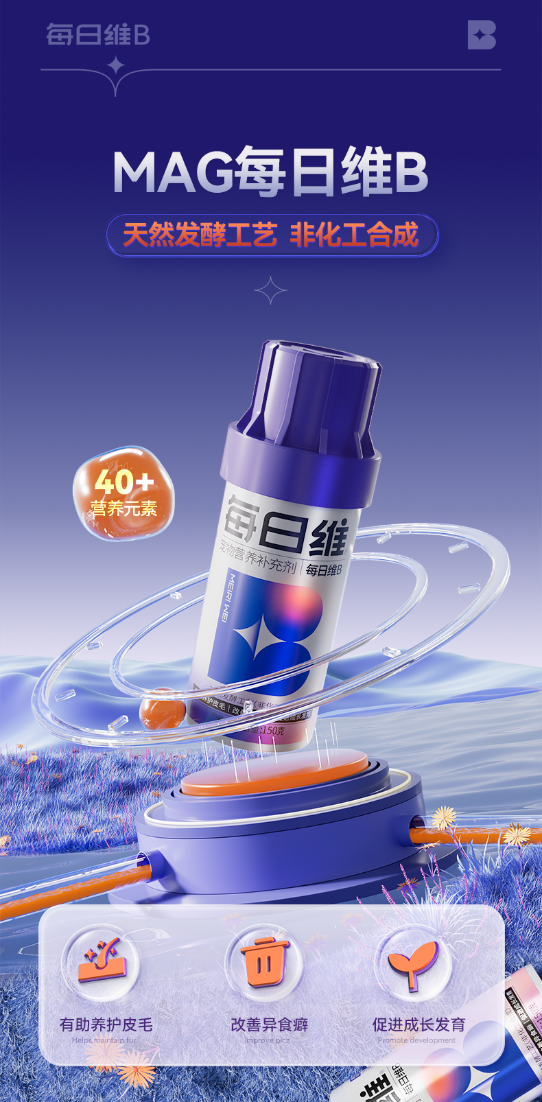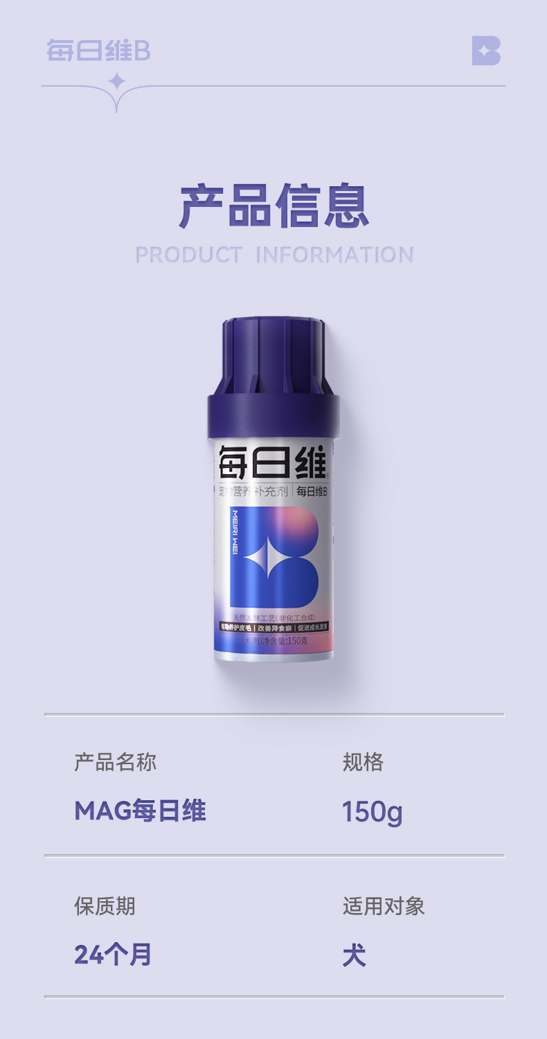 【U+系列】MAG每日维B 狗狗改善异食癖防吃草犬用天然维生素B 养护皮毛150片