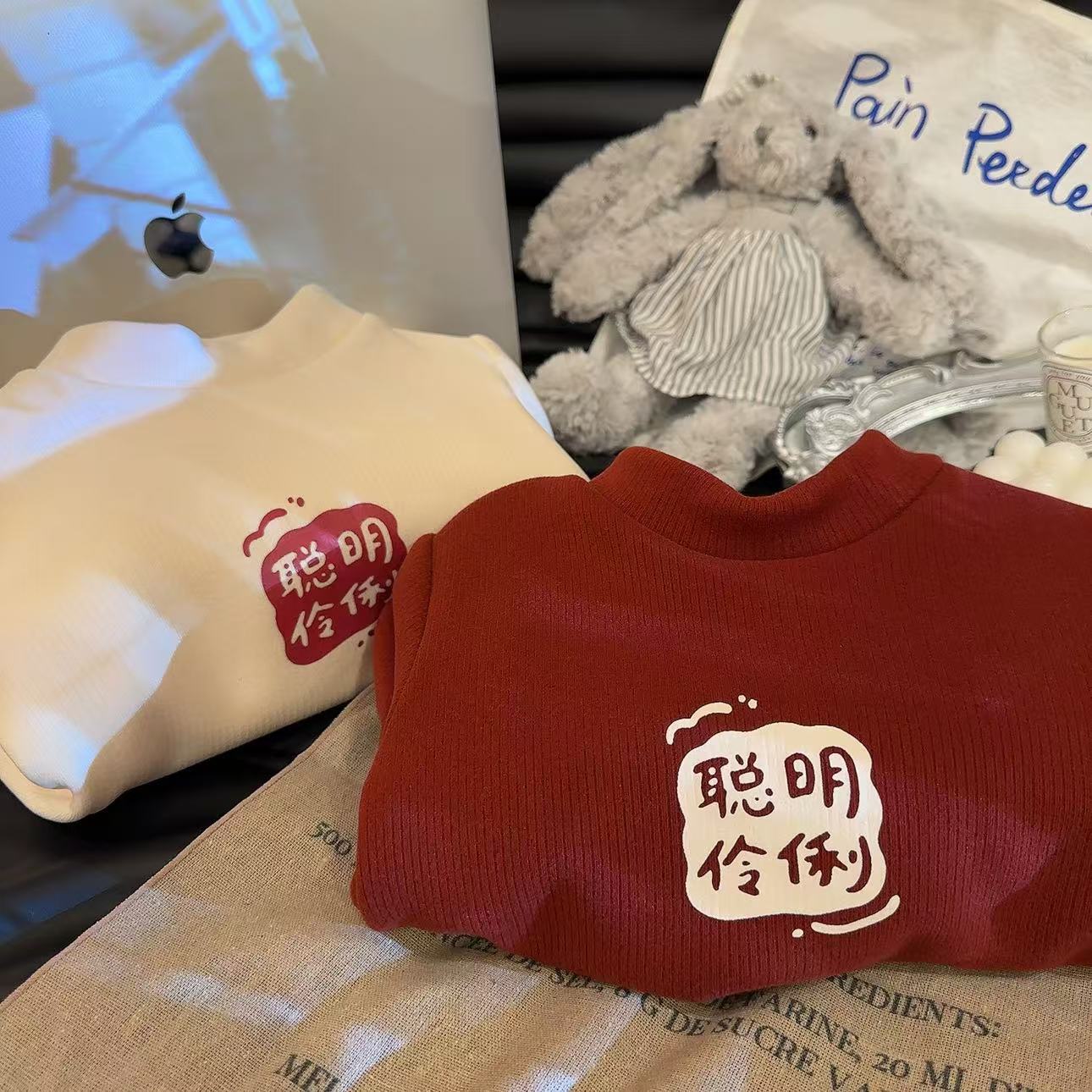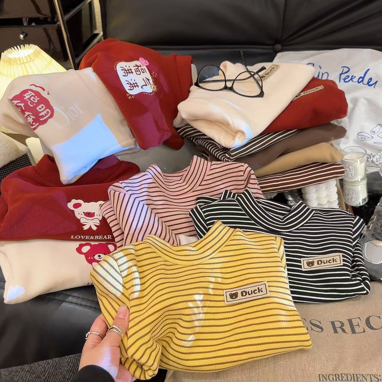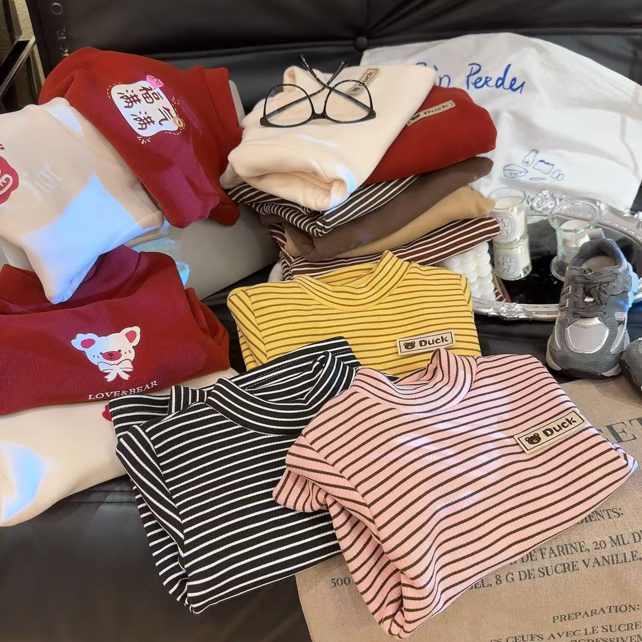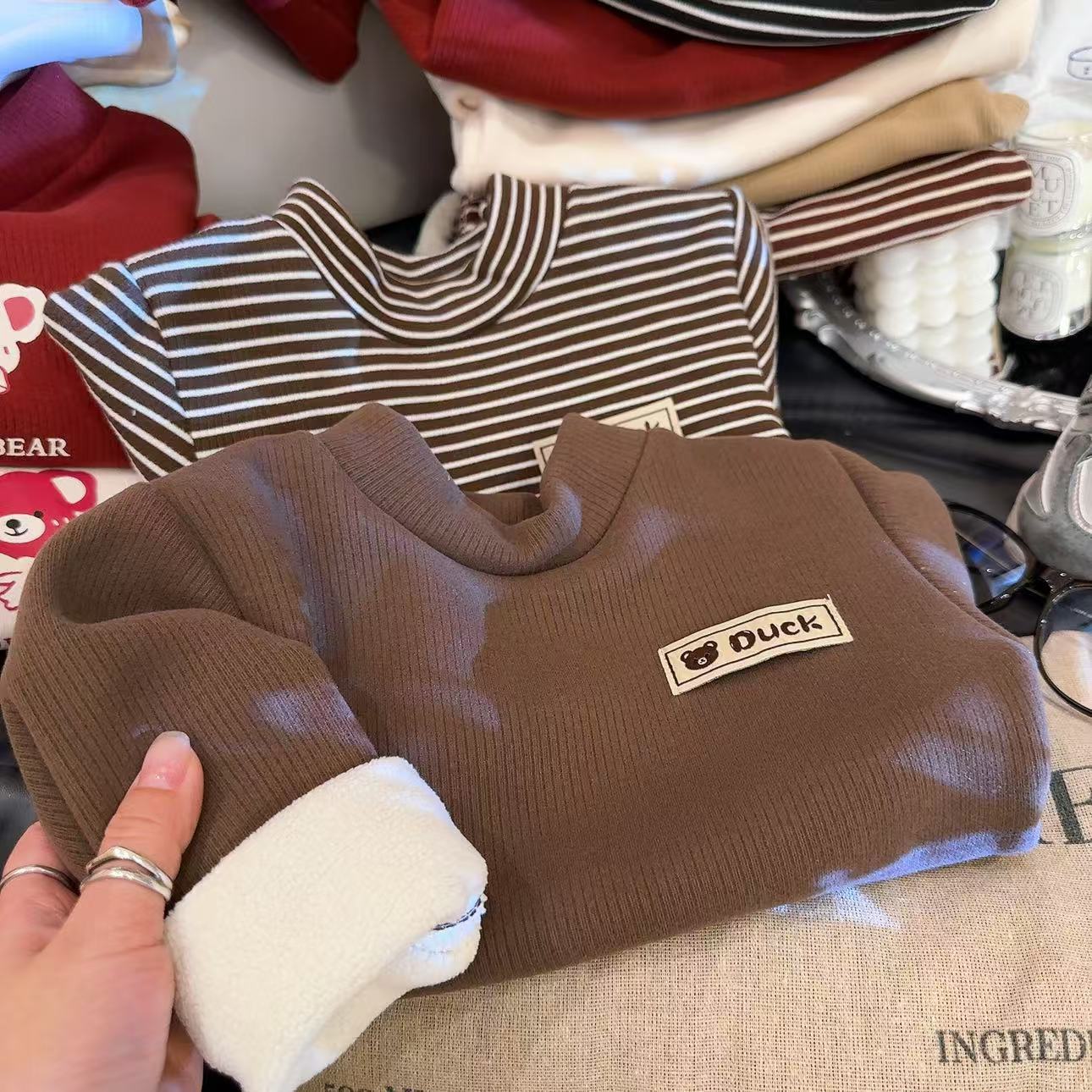 【新儿童拜年服】半高领男童打底衫加绒加厚长袖T恤中大童装上衣