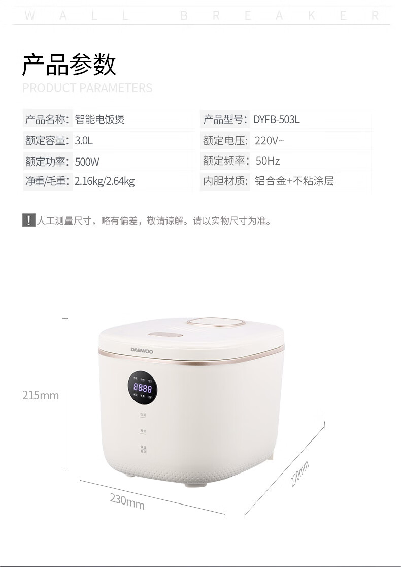 大宇 智能电饭煲DYFB-503L【JKYGH51 3.0】