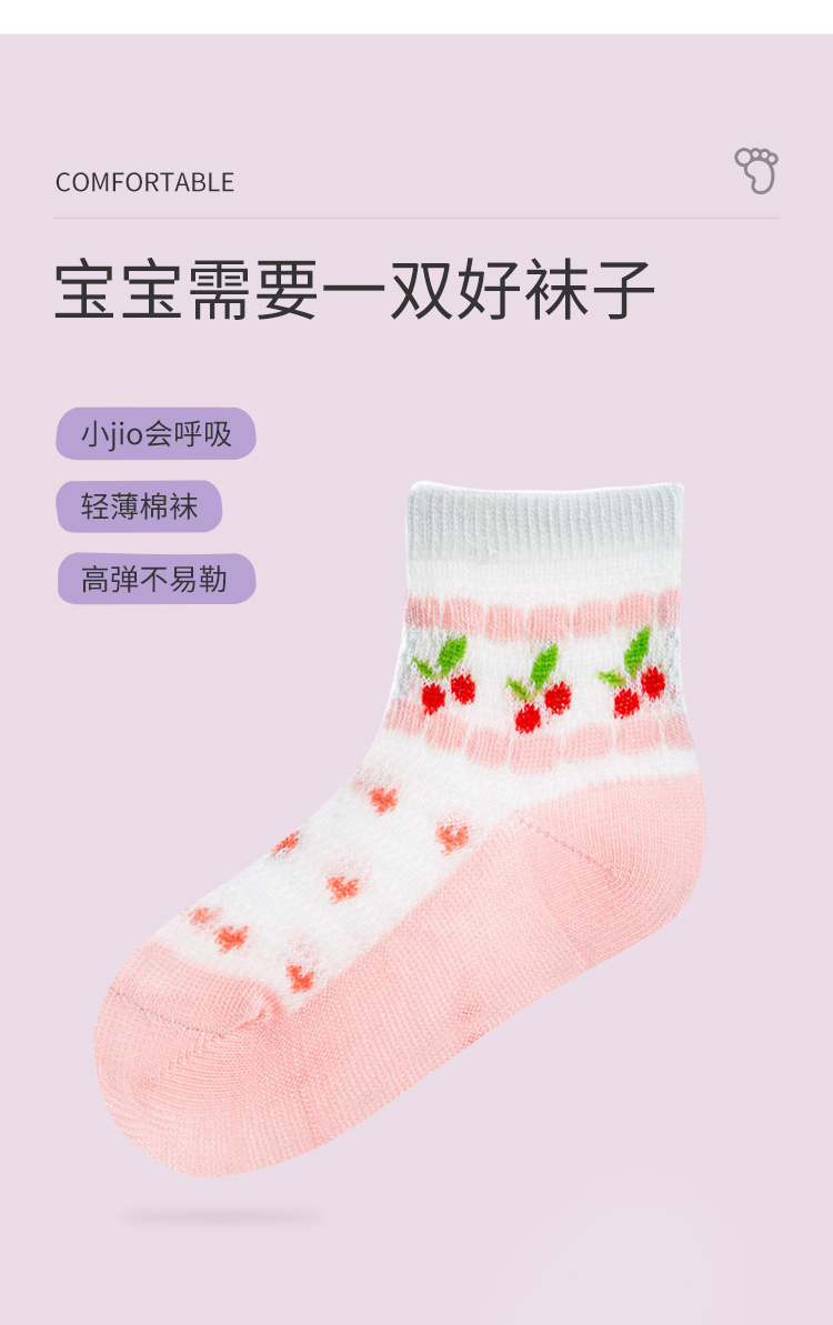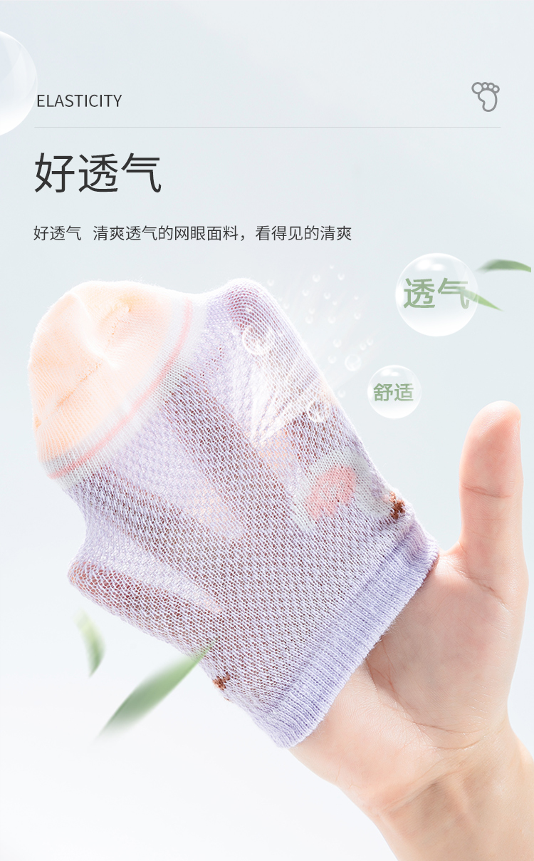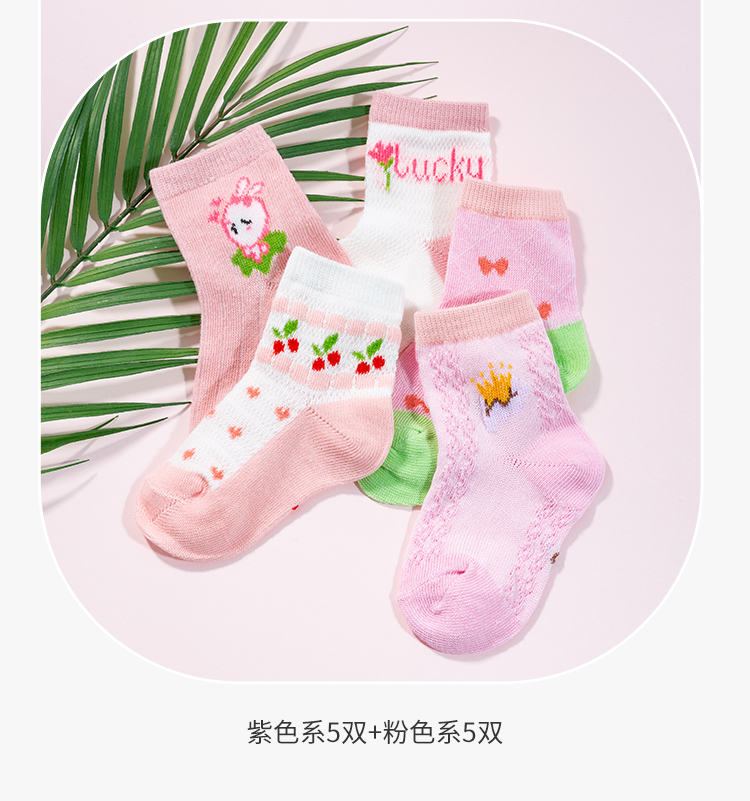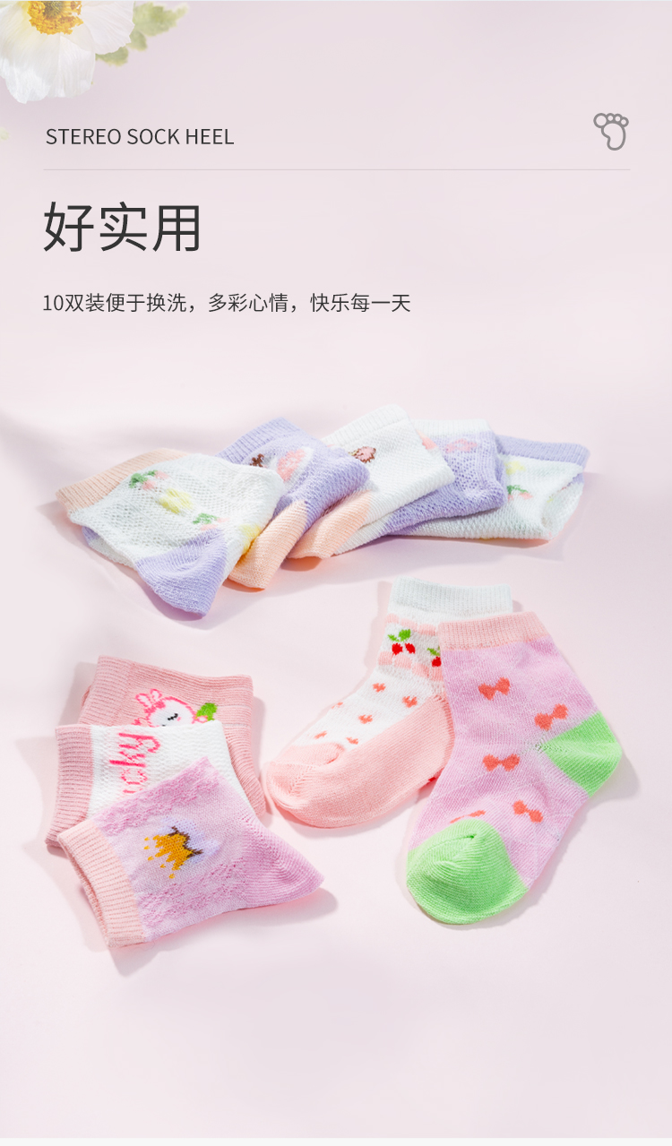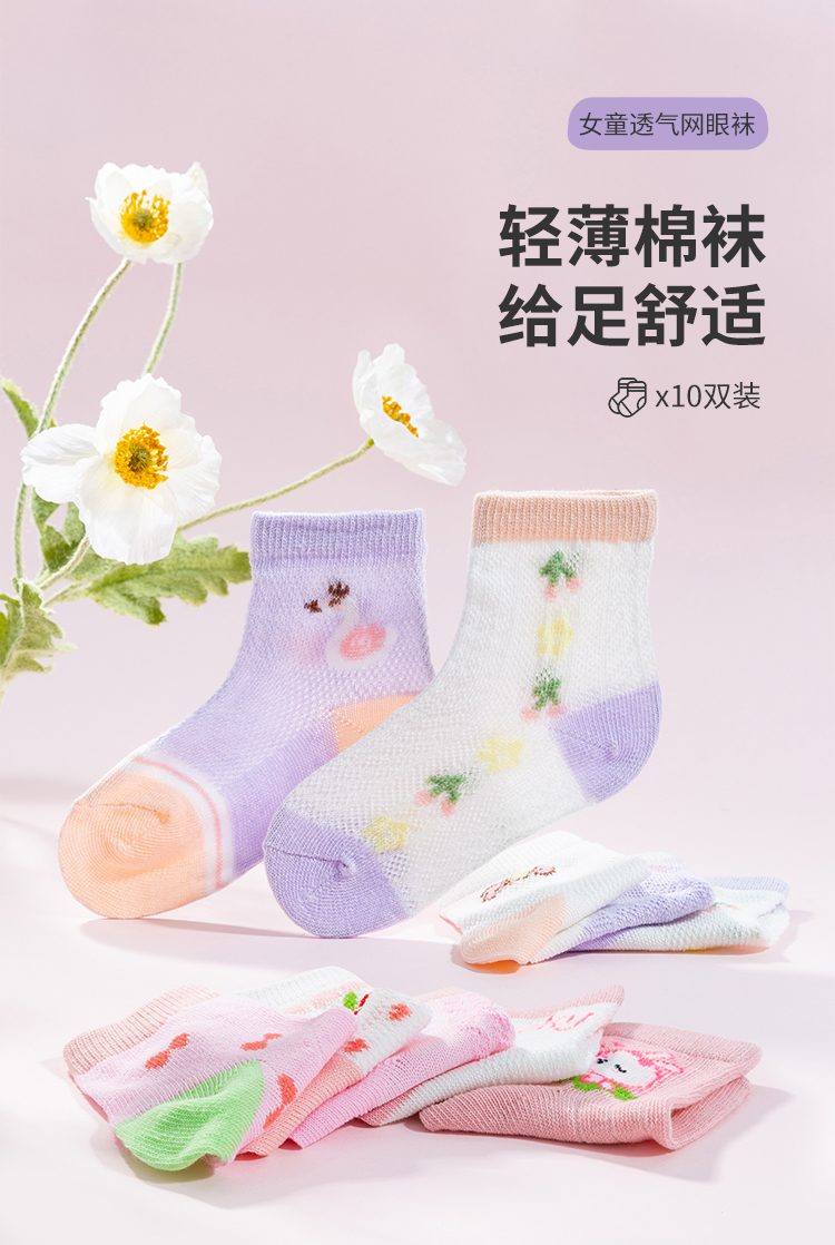 贝贝怡女童袜子夏季薄款儿童网眼袜透气排汗宝宝袜(10双装)