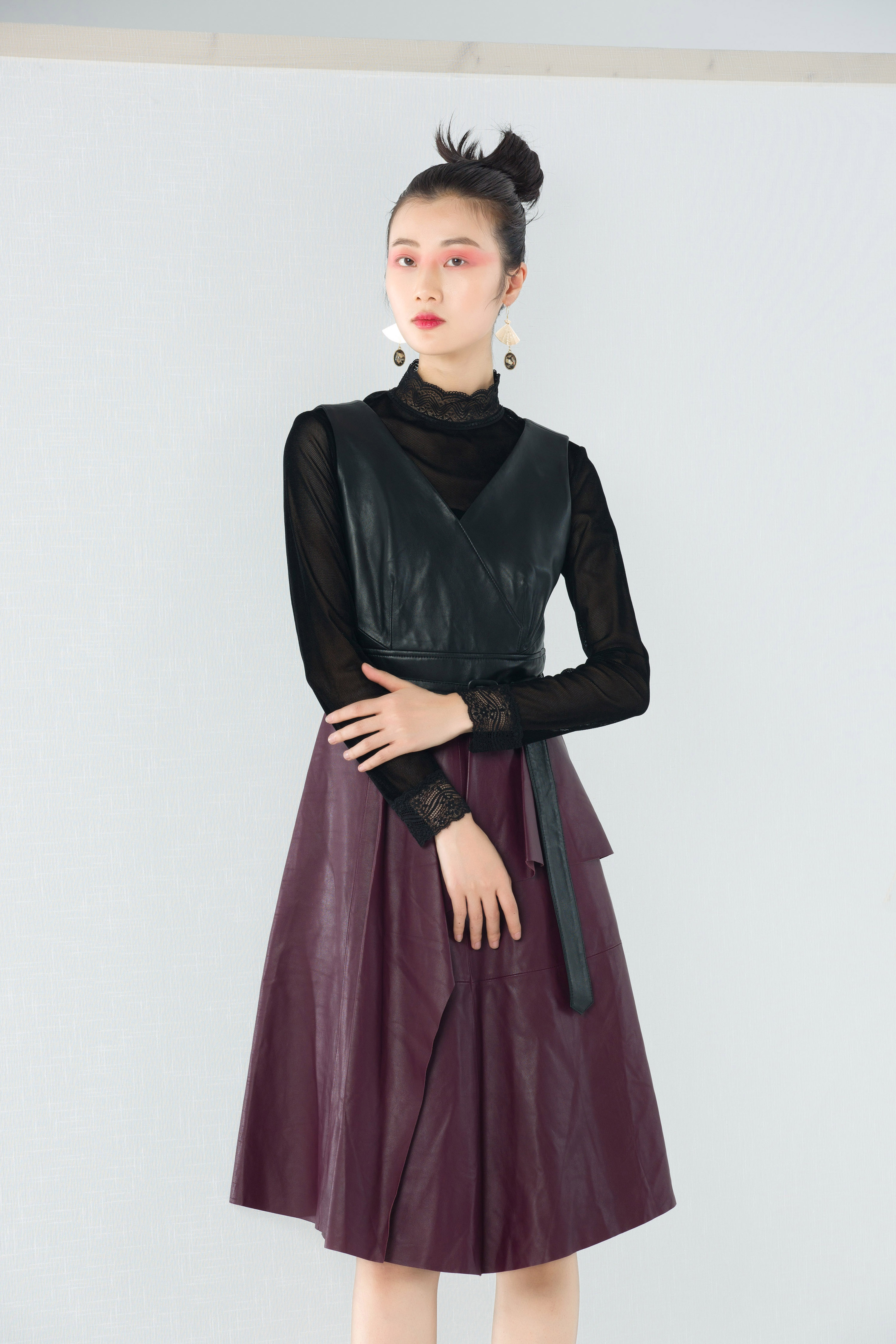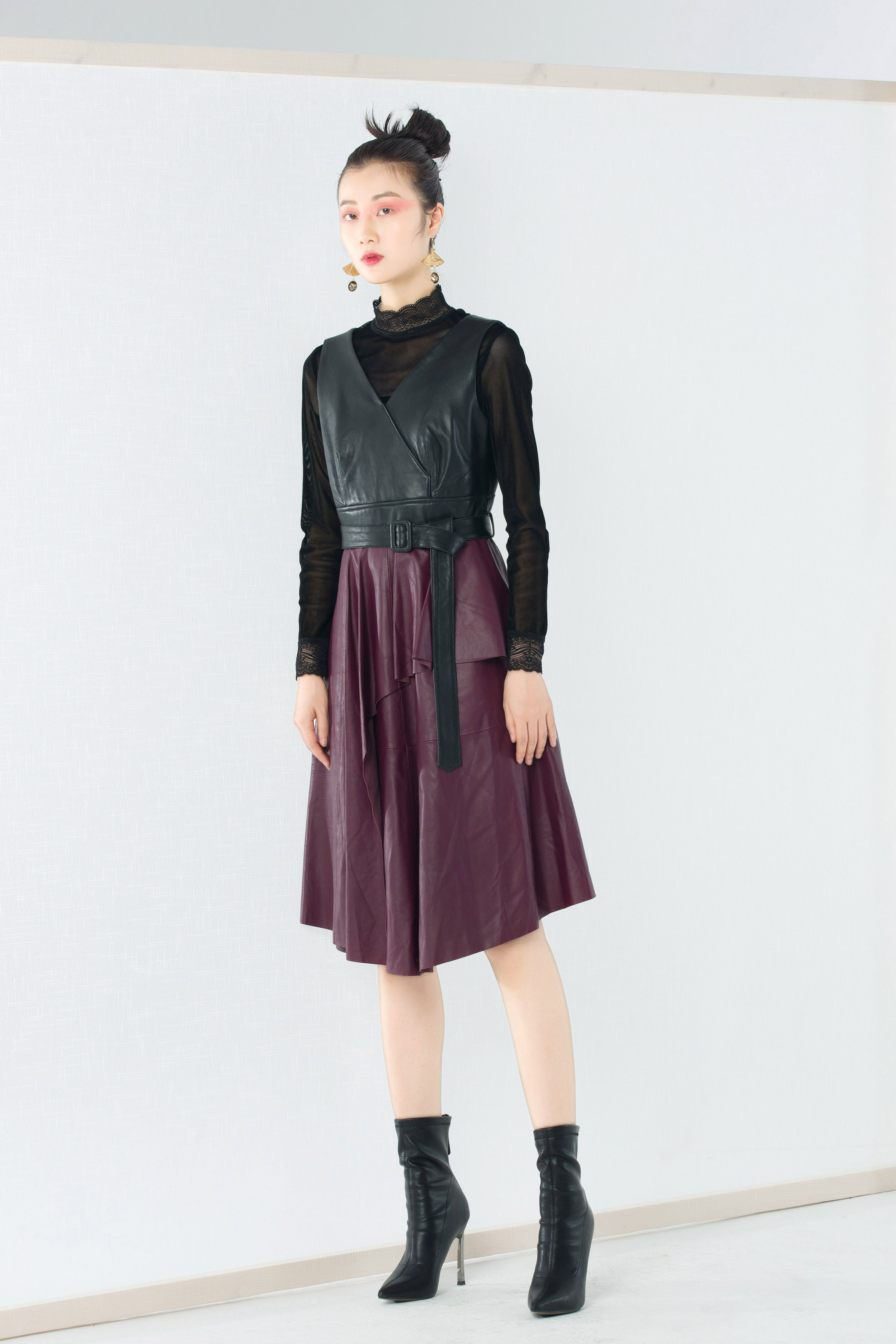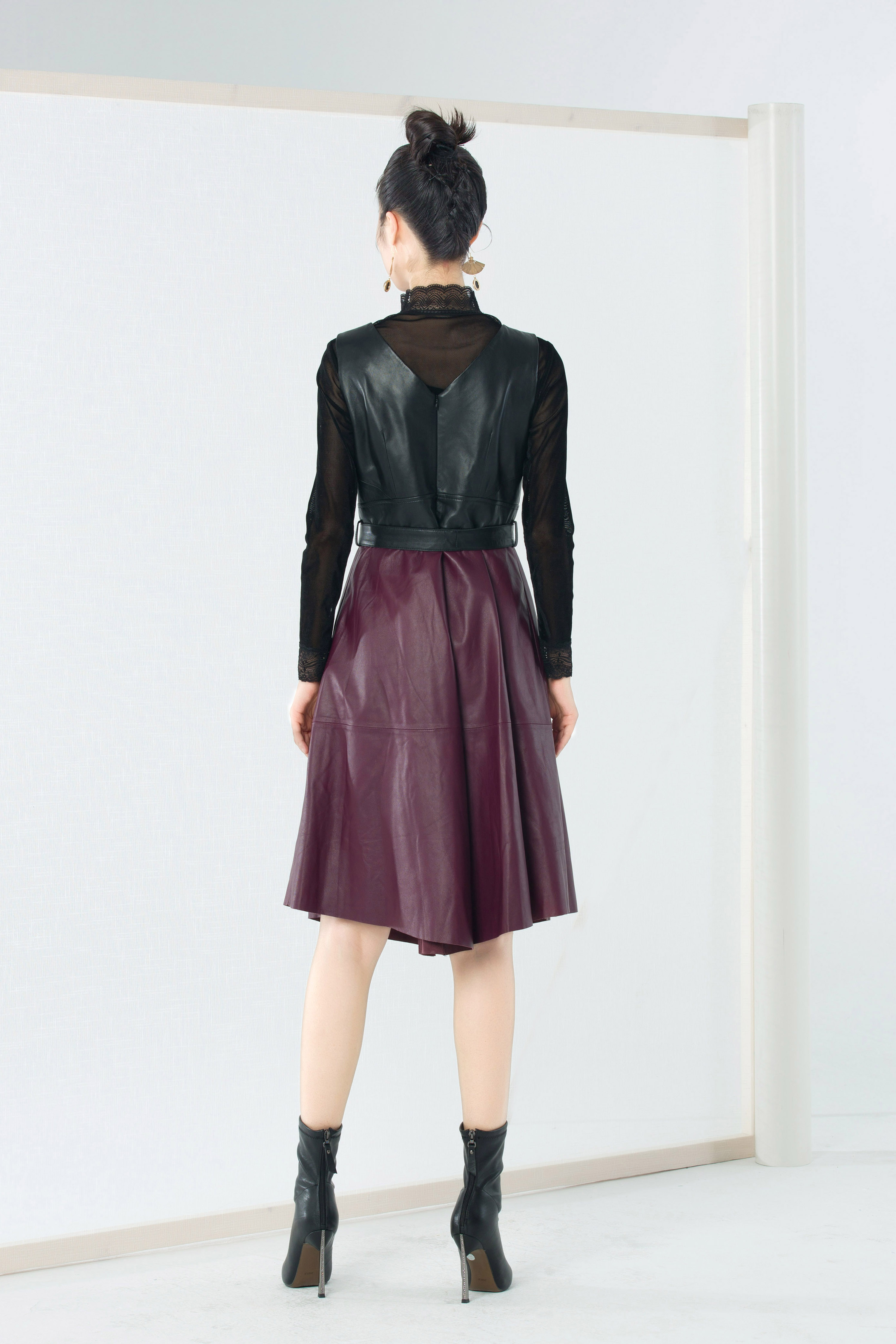 206PS106--紫色皮连衣裙--《冬季时尚系列》
