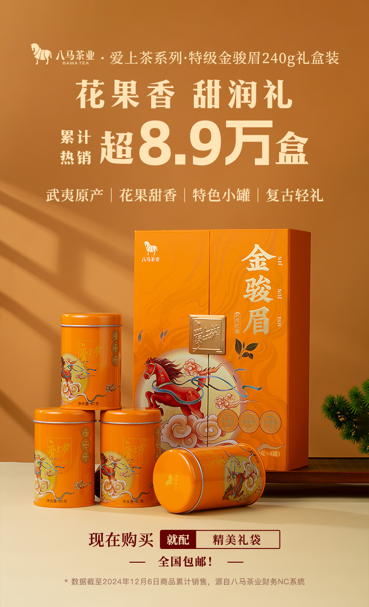 八马茶业 | 武夷特级金骏眉红茶爱上茶礼盒装送礼240g