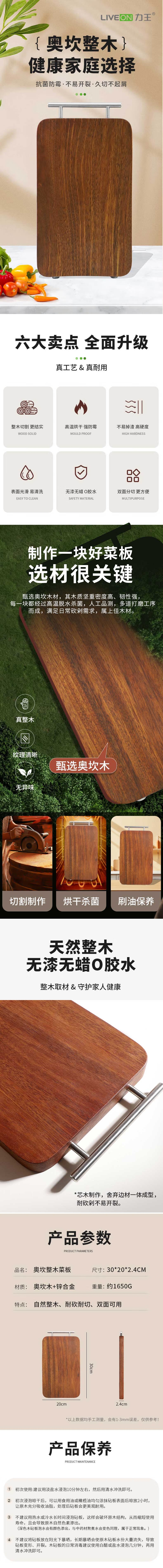 【快递包邮】力王奥坎整木小号菜板防霉实木砧板(30×20cm小号)