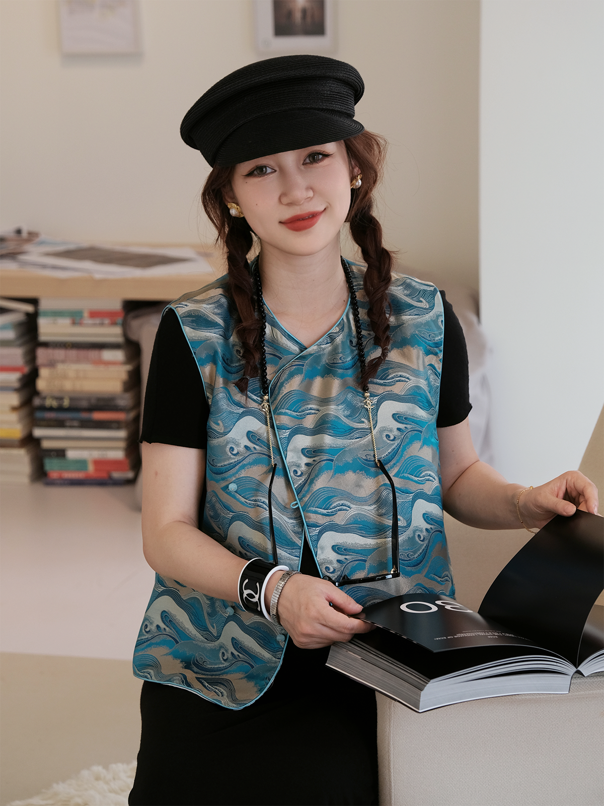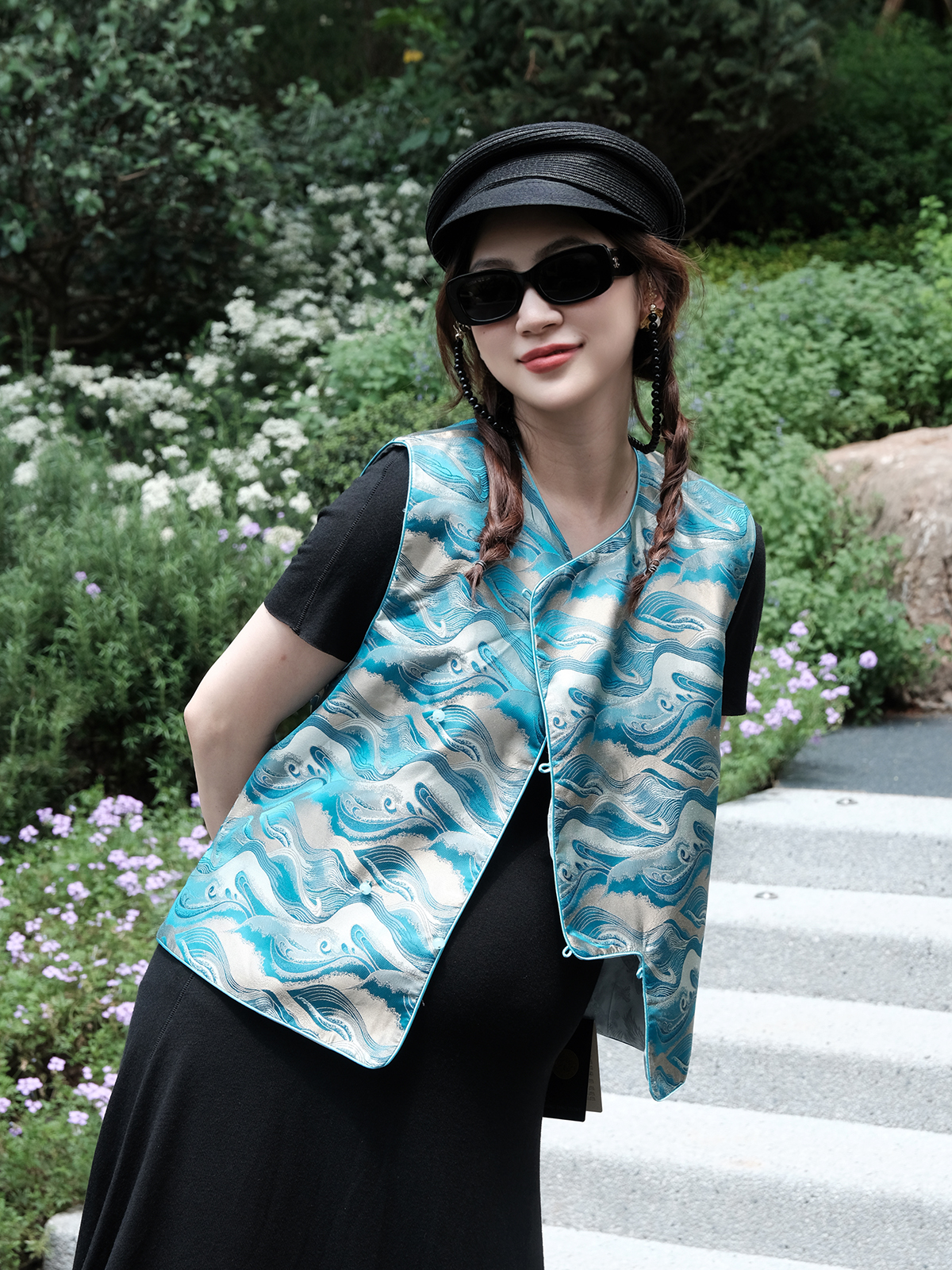 盛唐牡丹 |海浪纹重缎宋锦偏襟马甲