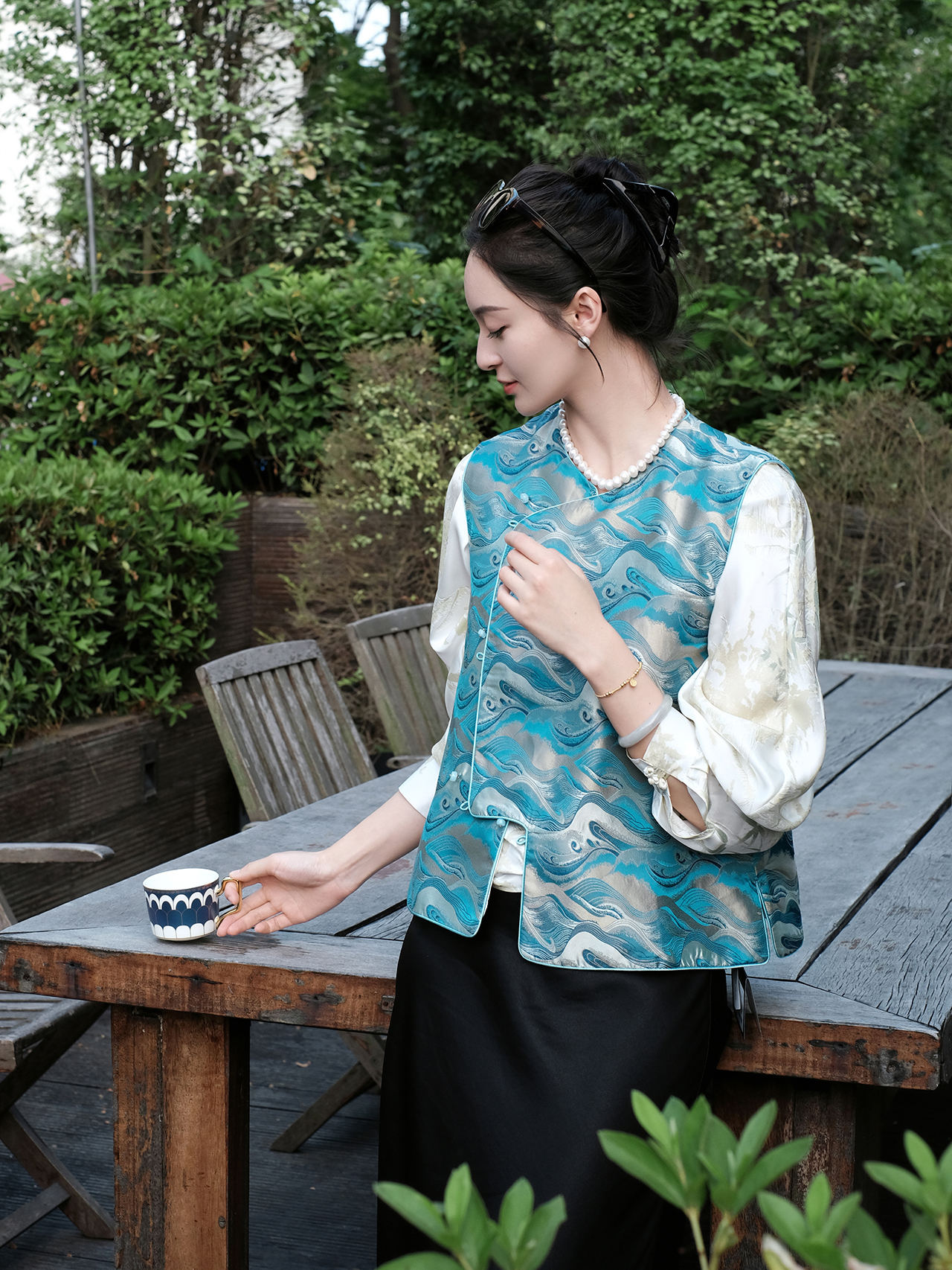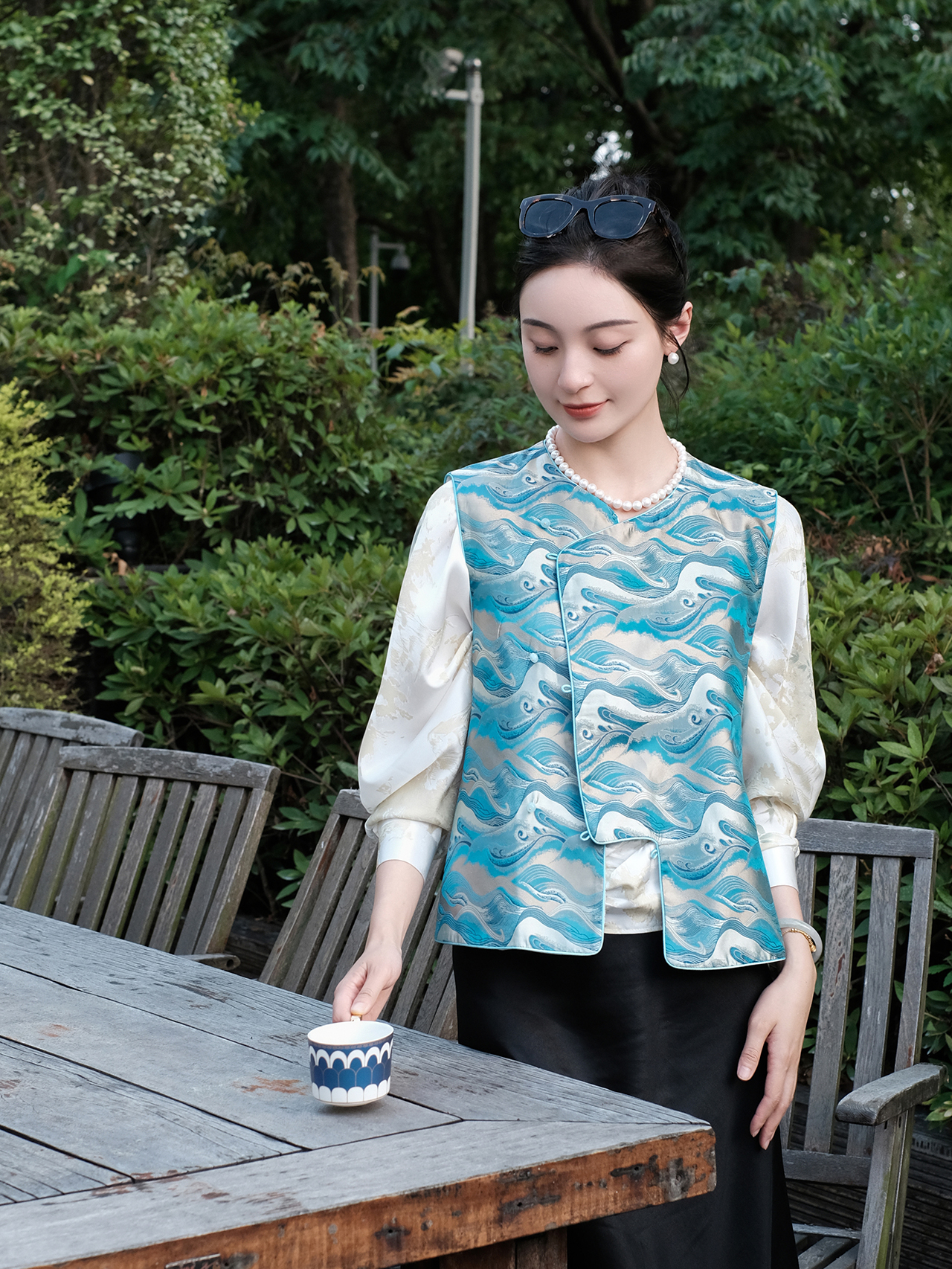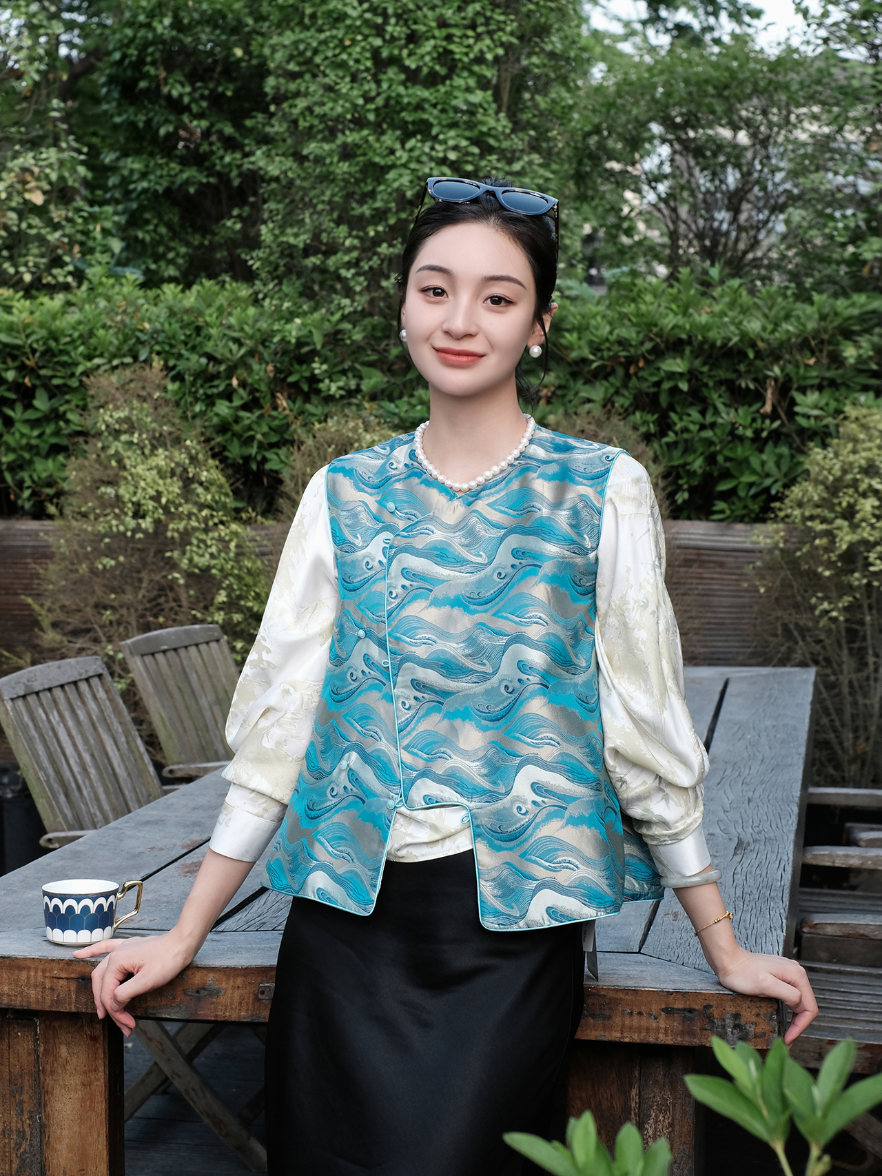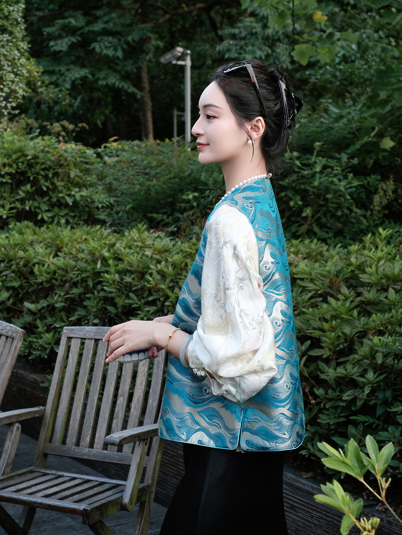 盛唐牡丹| 珍珠白真丝竹子纹偏襟上衣