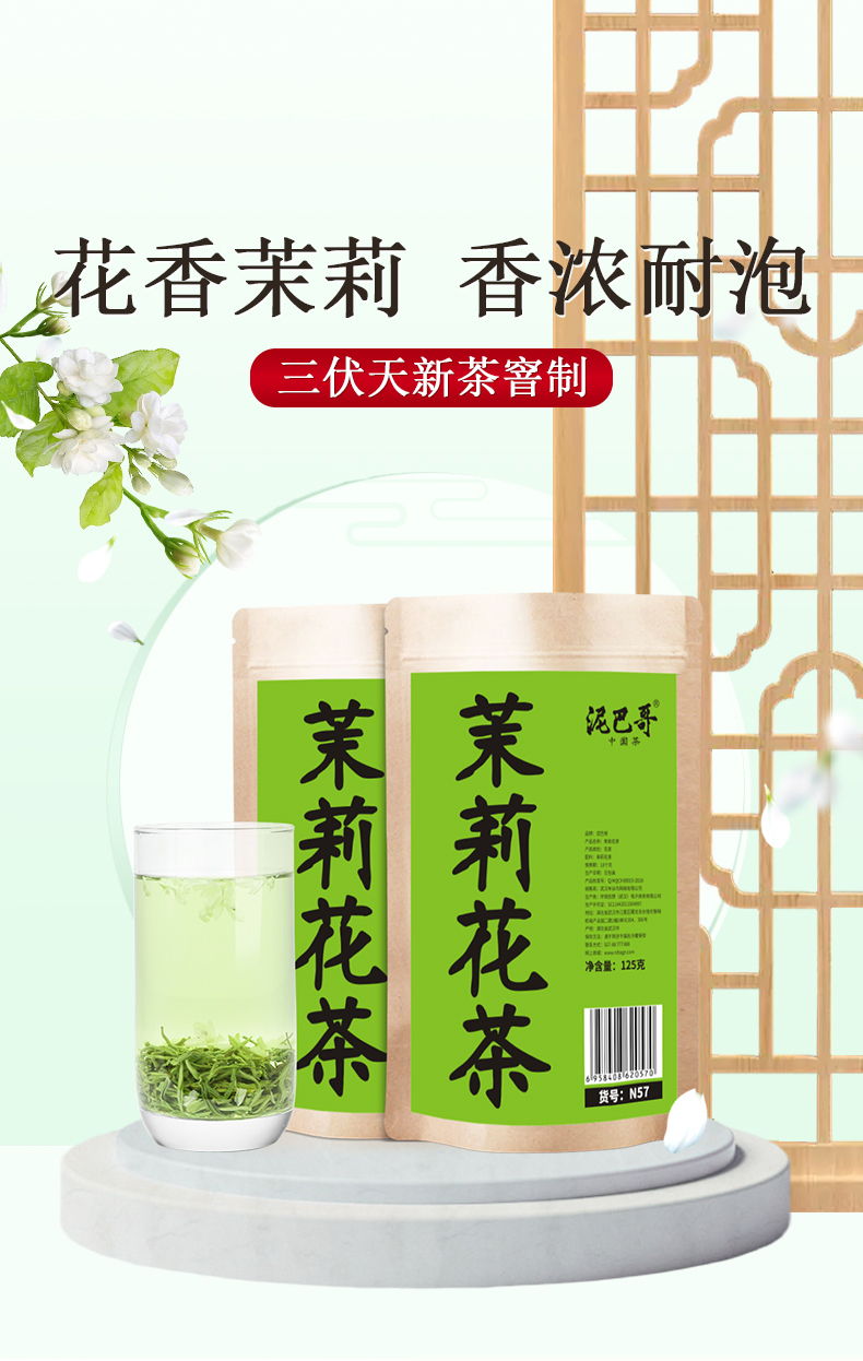 2025新茶茉莉花茶250g浓花香超耐泡5星口粮茶泥巴哥