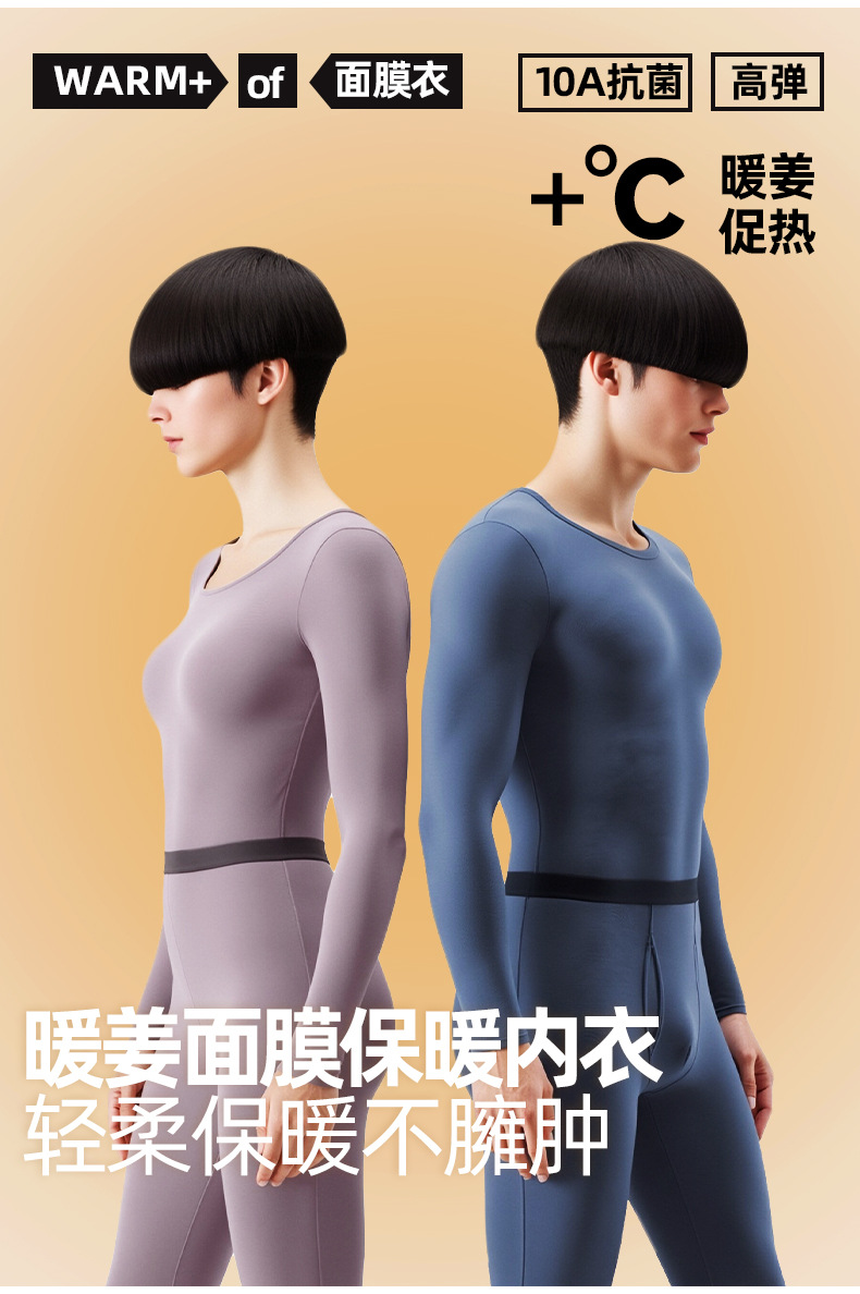 【10A抗jun❗️暖姜面膜衣】暖姜面膜保暖内衣「轻柔保暖不矐肿」生姜发热女士面膜保暖内衣,套装男高弹力薄款内穿睡衣家居服L