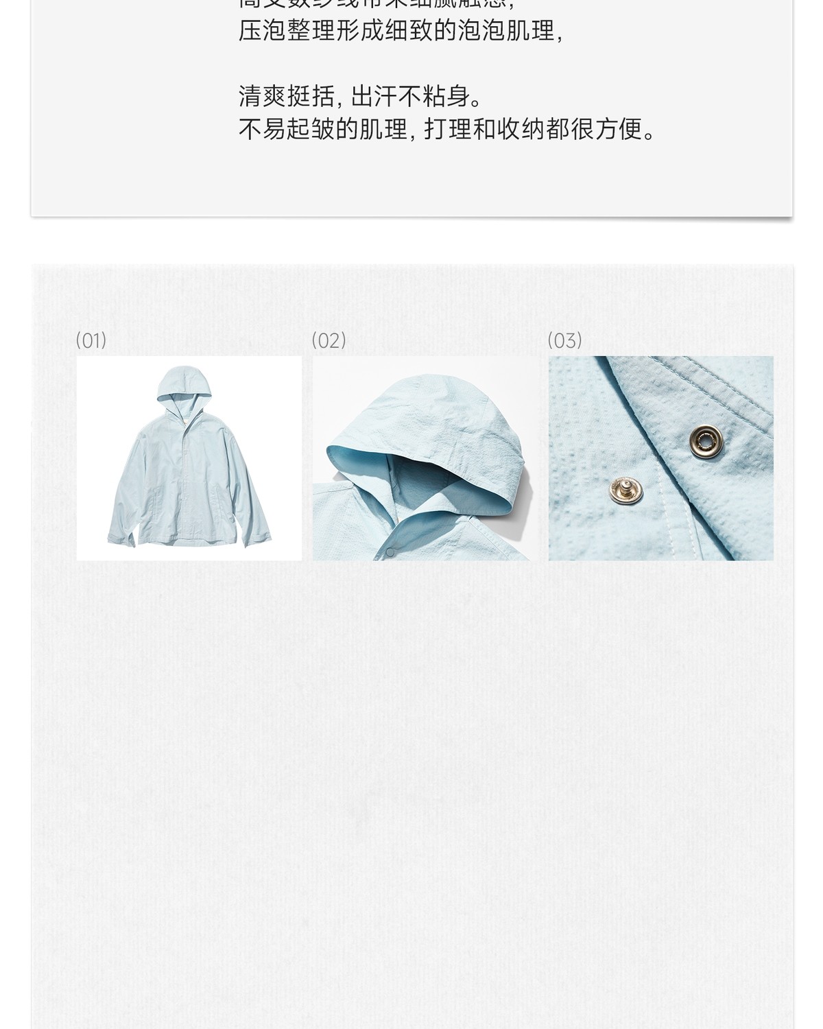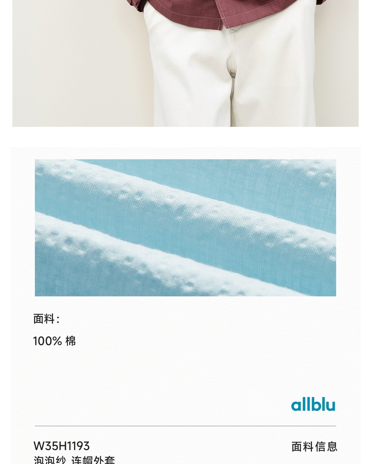 【春Vol.3】allblu女装“轻盈不粘身”26春新款【泡泡纱】连帽外套丨透气干爽ZY