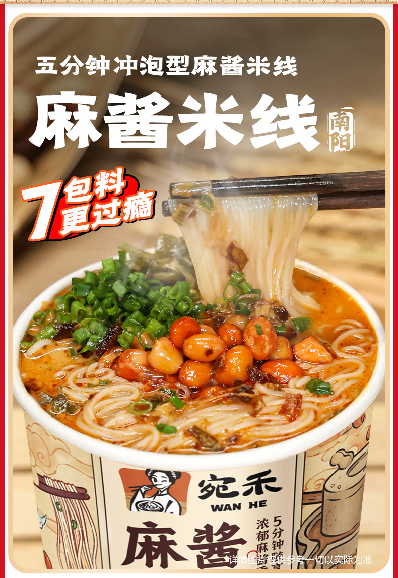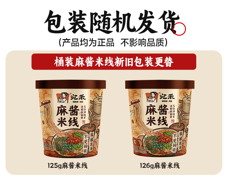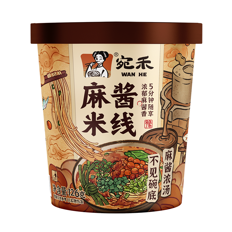 【冲泡型米线】宛禾麻酱米线免煮美食早餐0.8mm细米线125g/桶