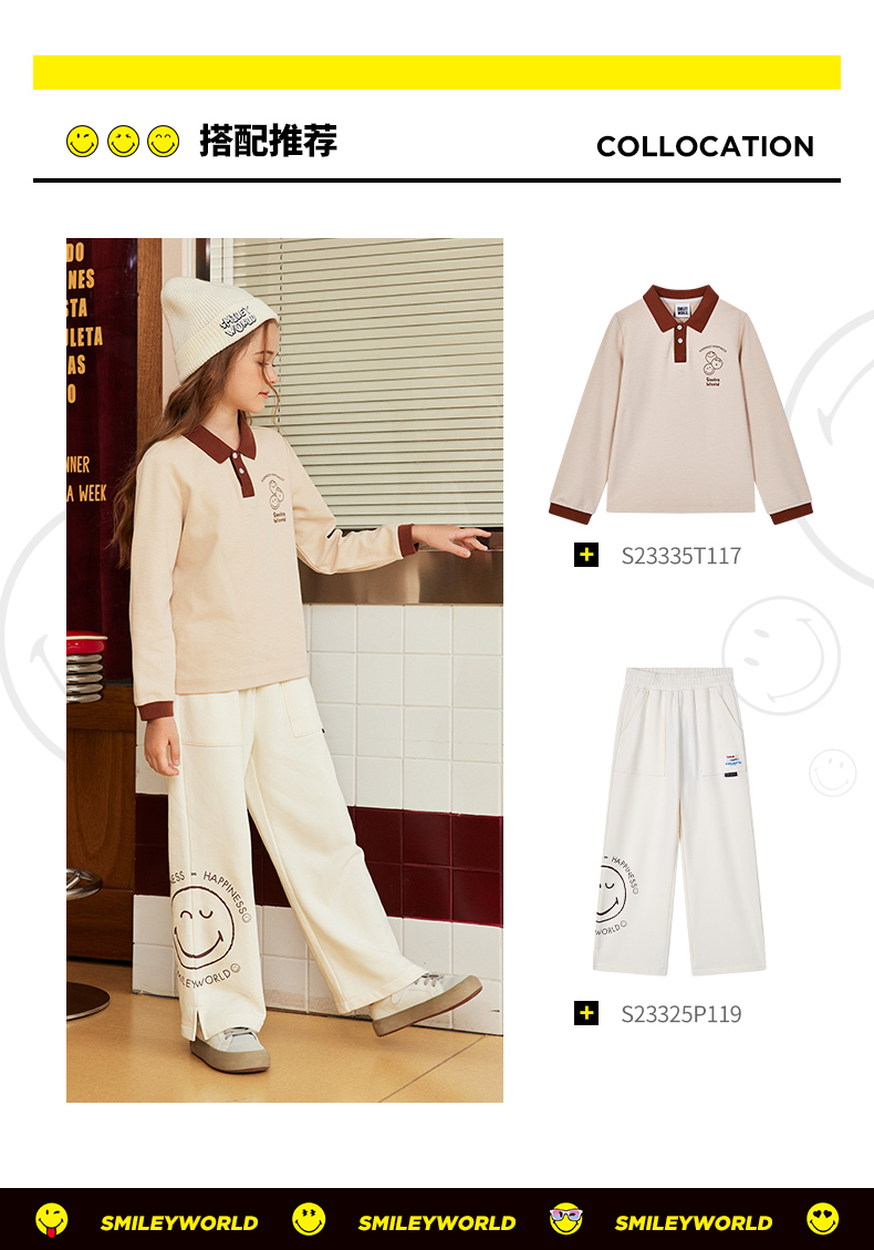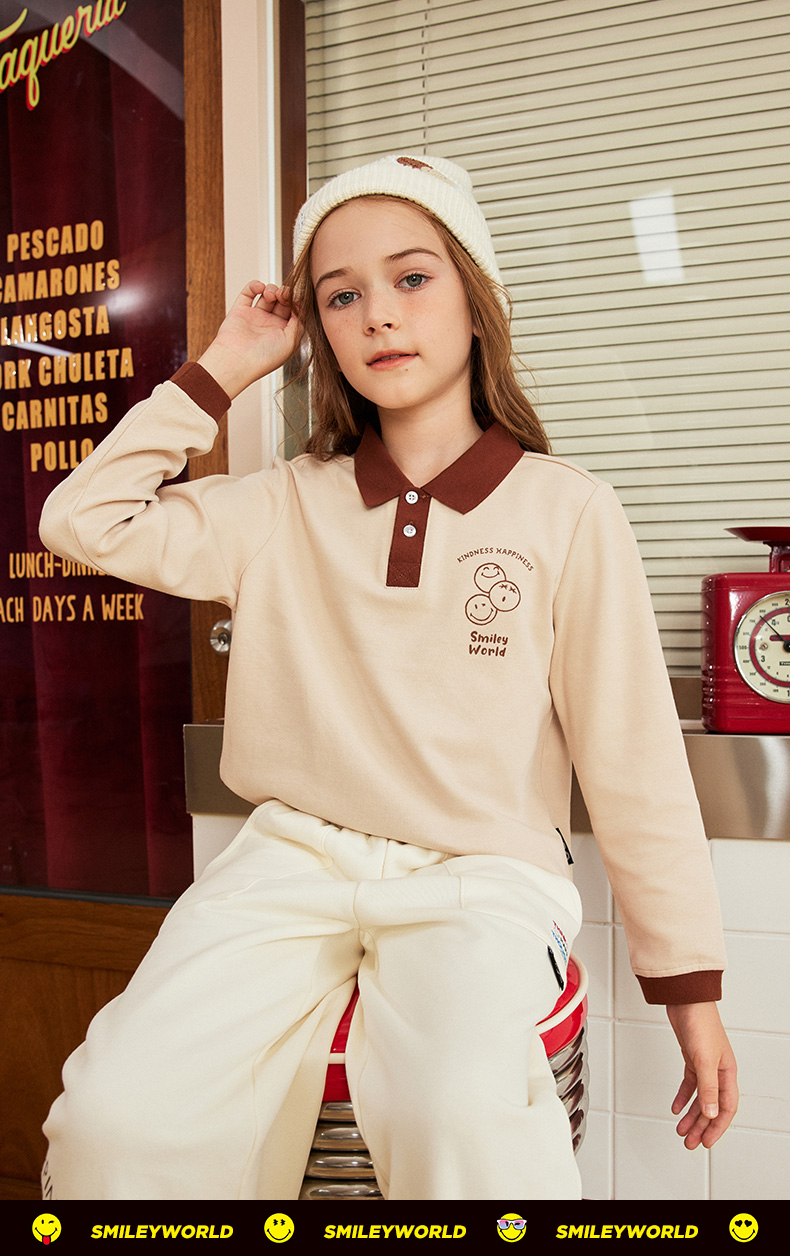 SMILEY WORLD儿童秋季打底上衣男女童百搭时尚polo衫S23335T117 商品图0