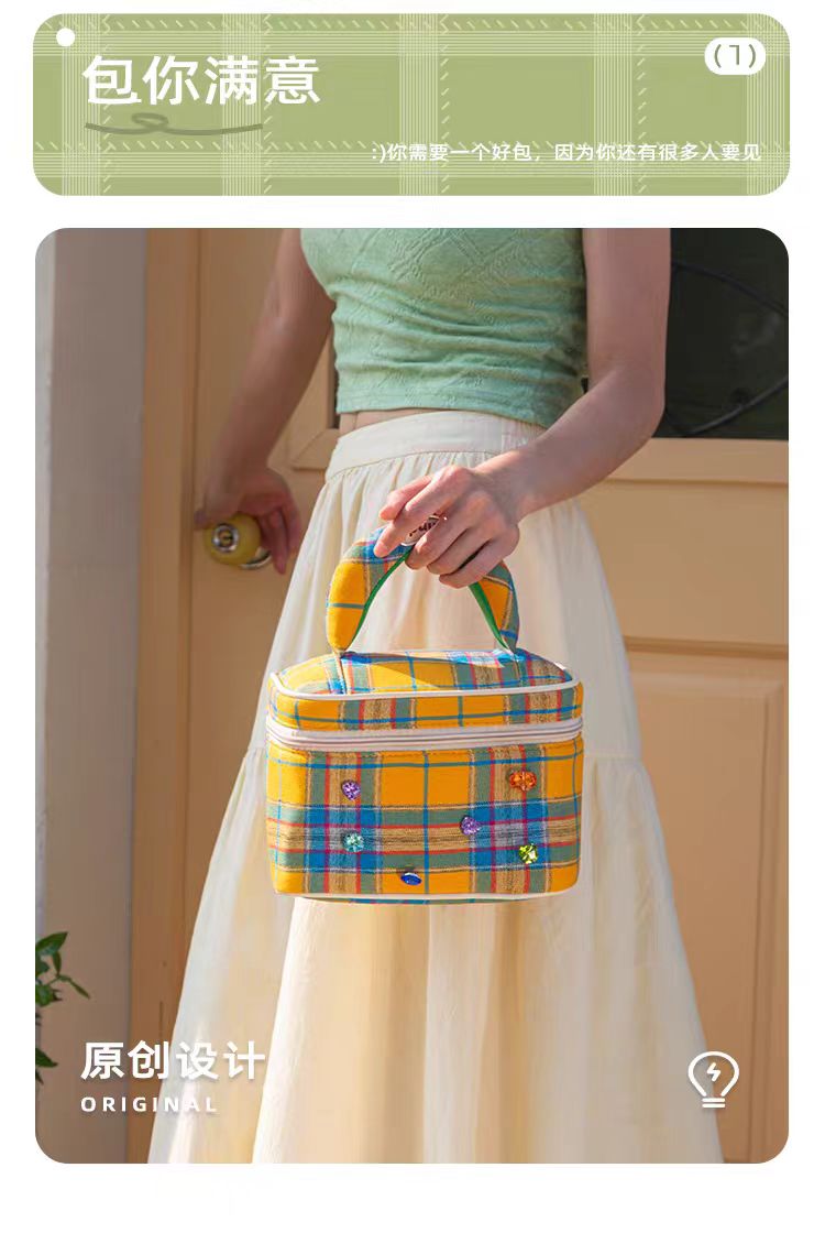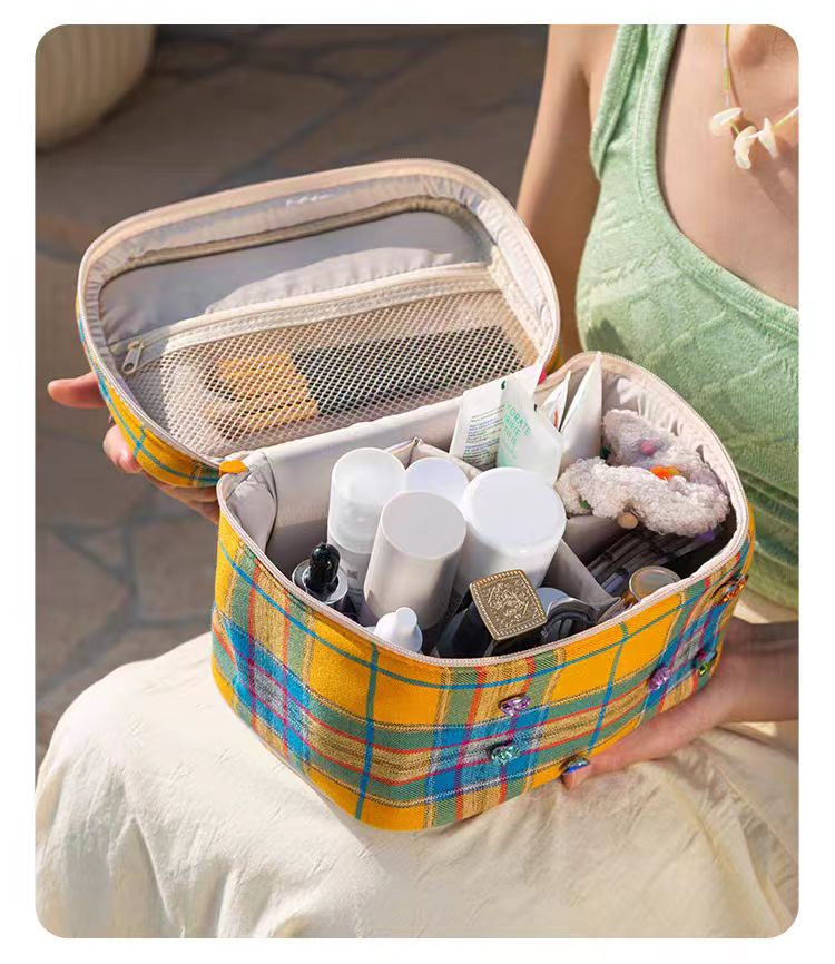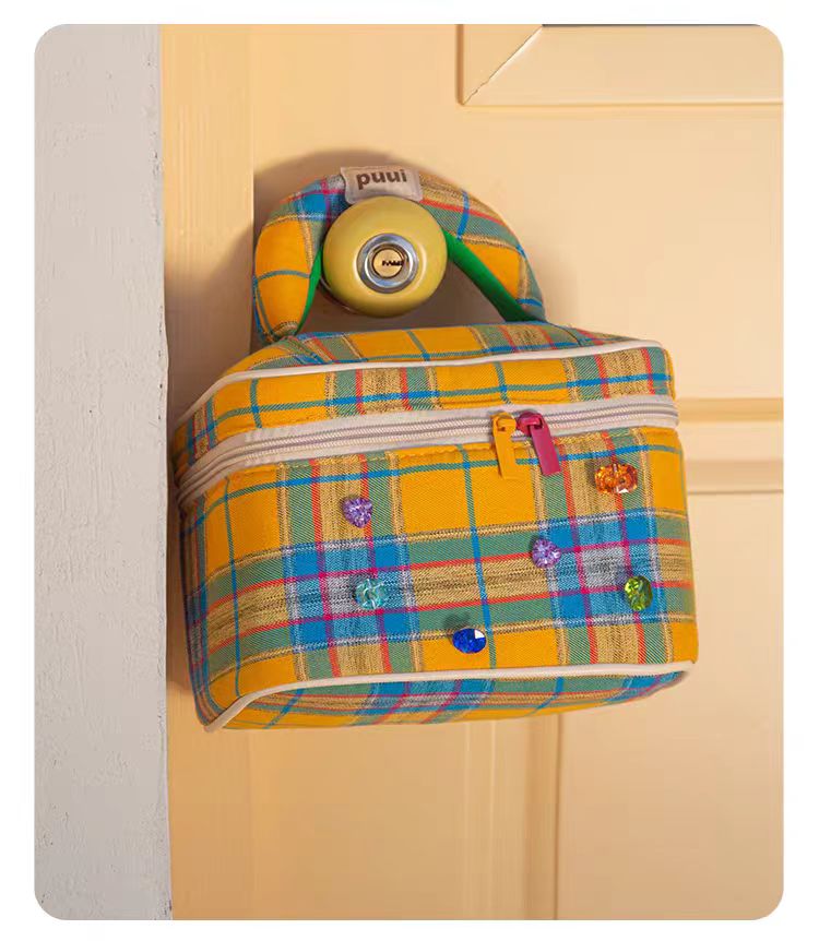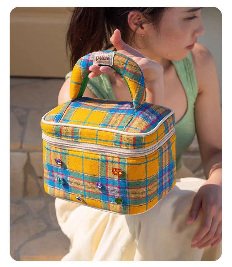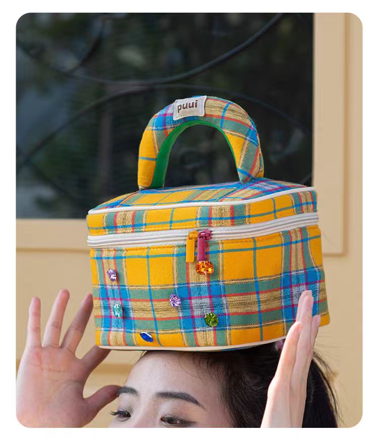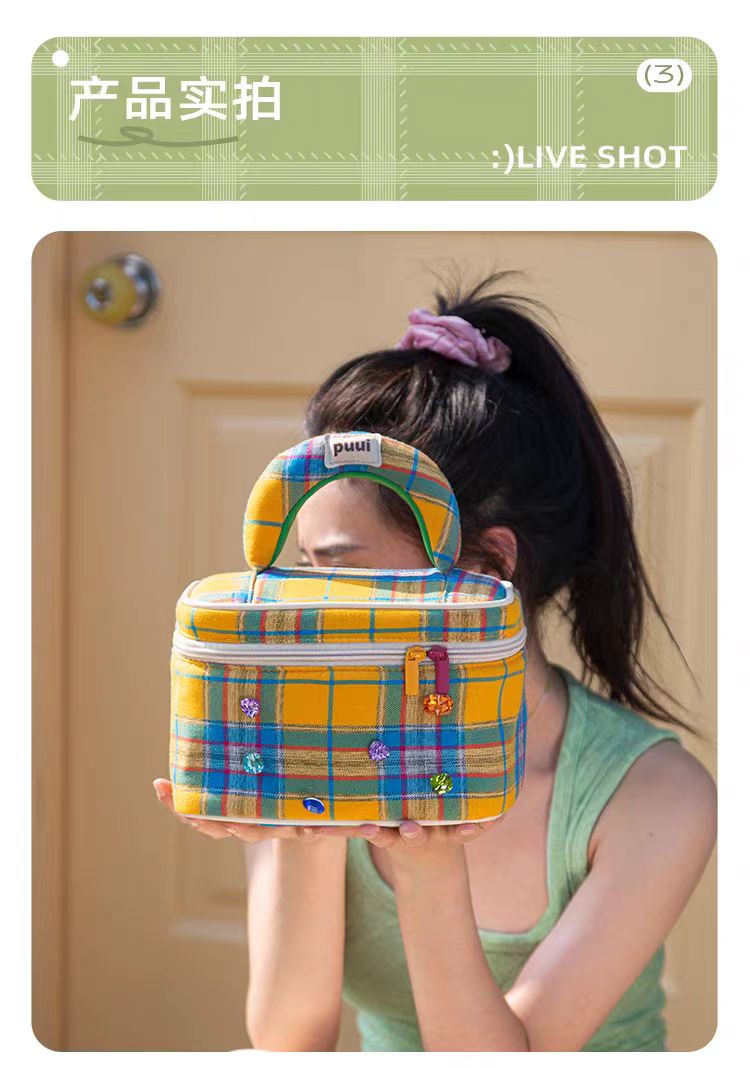4楼Eubelle欧蓓 puui原创化妆包便携式大容量 宝石格纹收纳包 高级感旅行洗漱包 活动价:199元