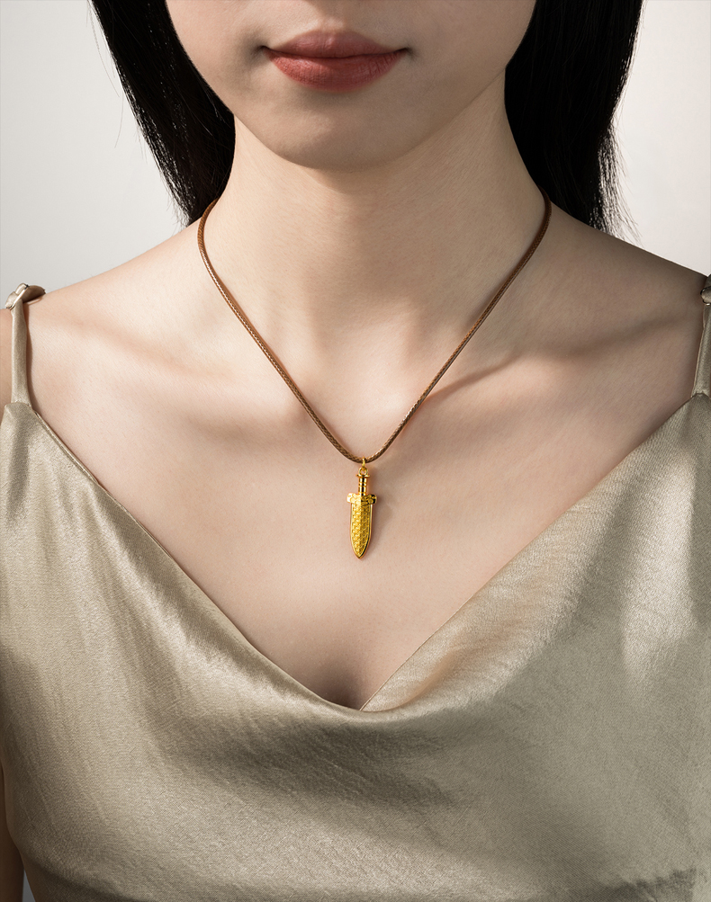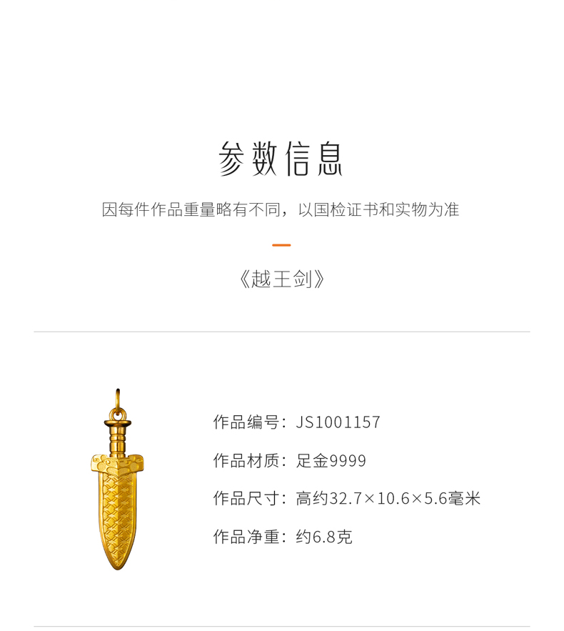 玺匠金铺《越王剑》足金9999 黄金吊坠项链生日礼物
