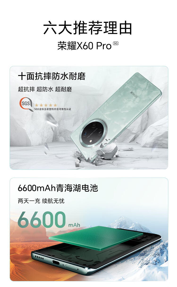 荣耀X60 Pro 十面抗摔防水耐磨 6600mAh青海湖电池 荣耀绿洲护眼屏 8+256 燃橙色 5G AI 新品手机