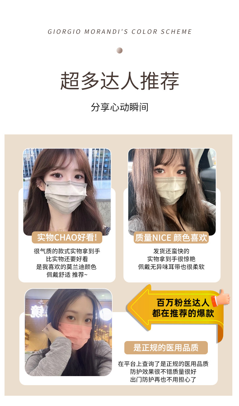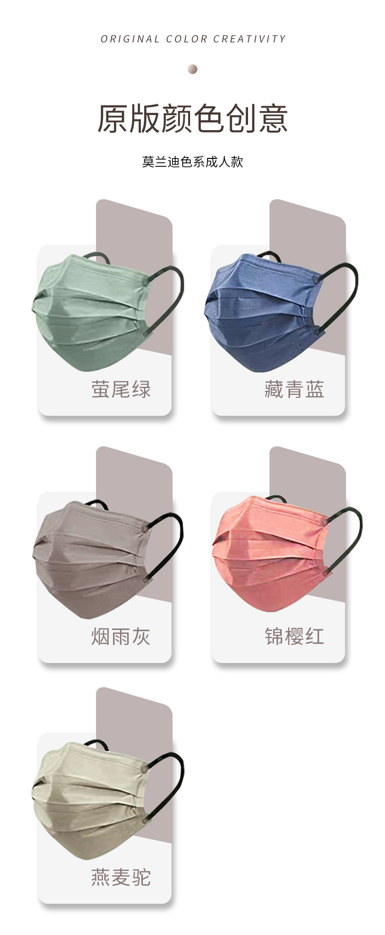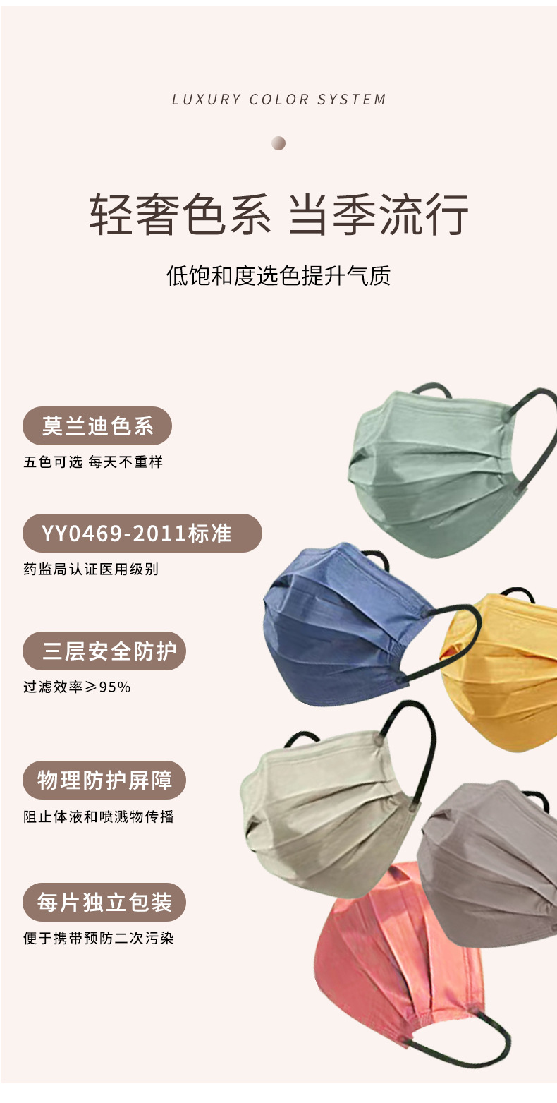 莫兰迪色【混色50只】医用外科口罩一次性成人女高颜值秋冬独立装