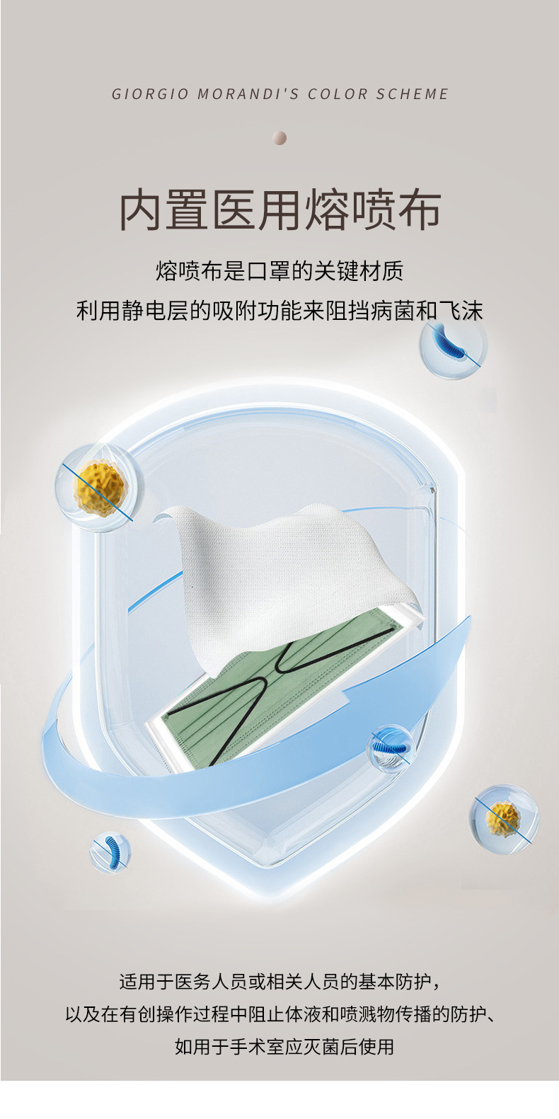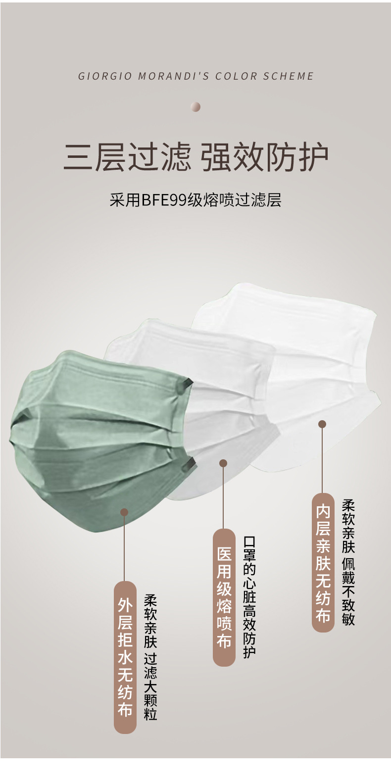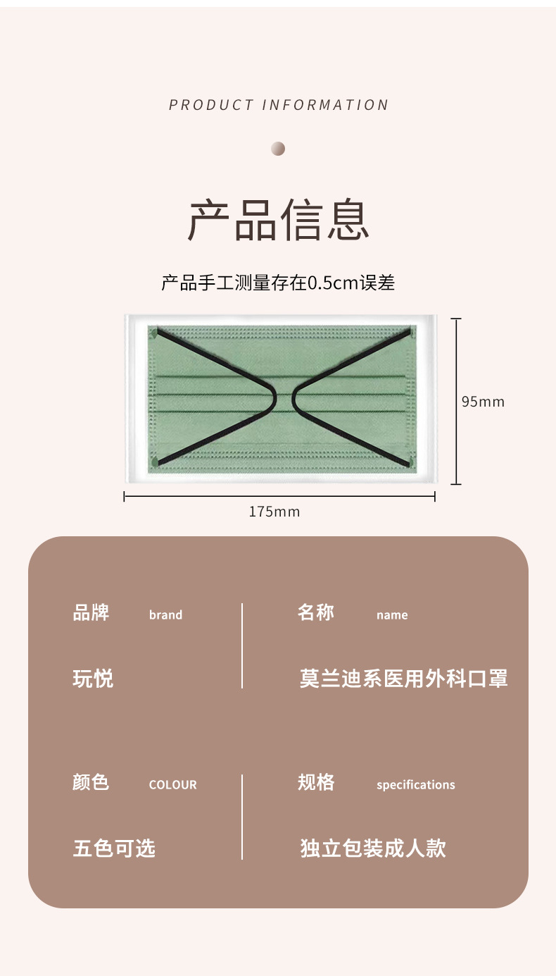 莫兰迪色【混色50只】医用外科口罩一次性成人女高颜值秋冬独立装