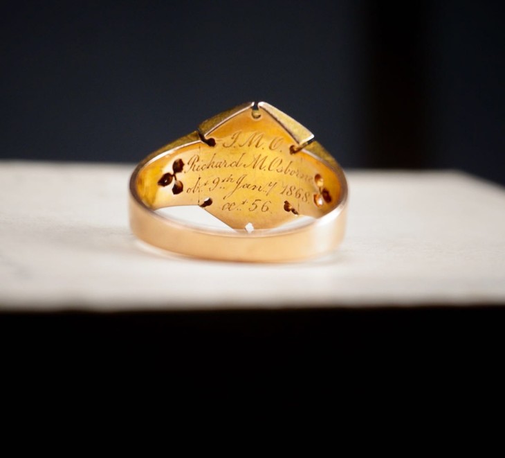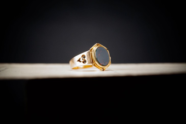 英国古董18K金1868年刻字血玉髓戒面戒指o frantiques英国古董