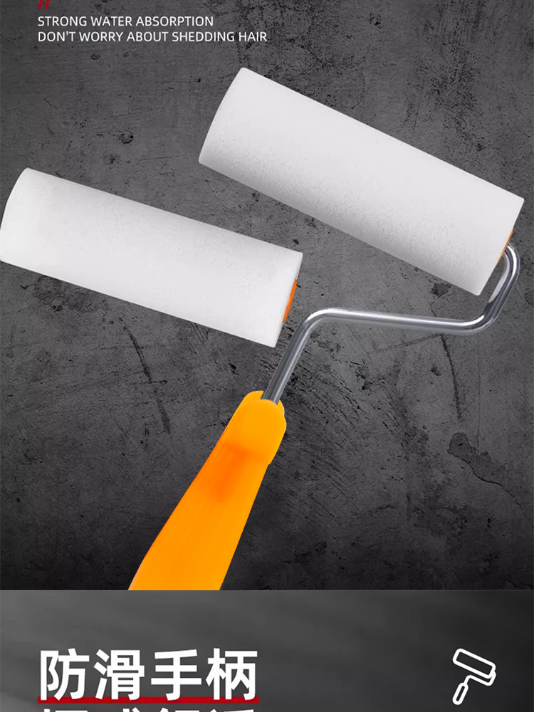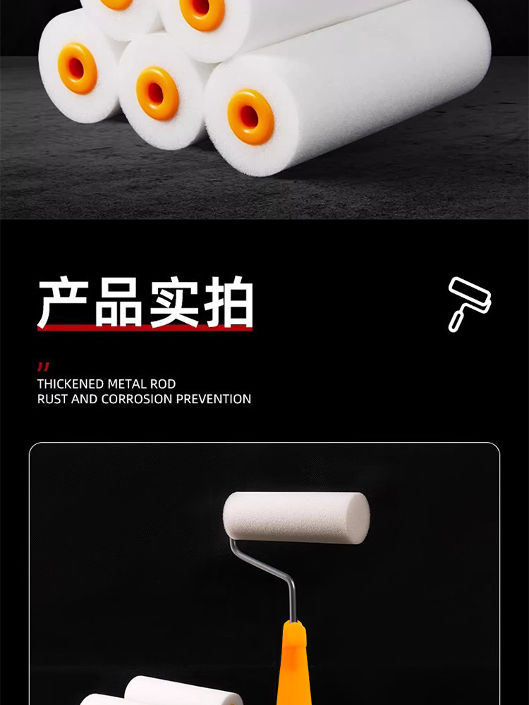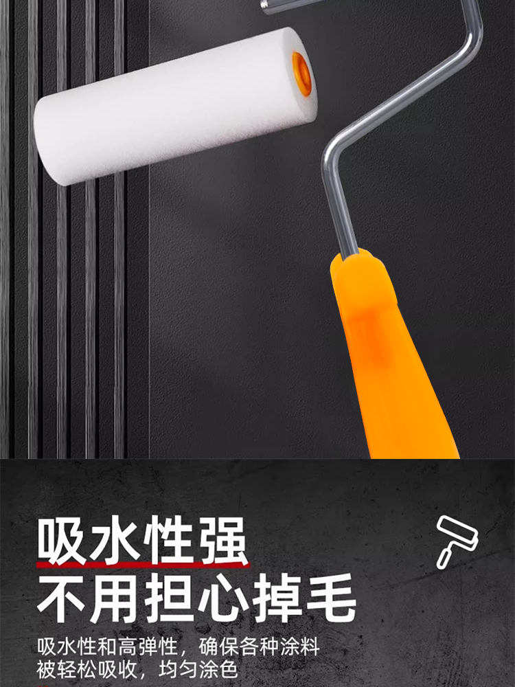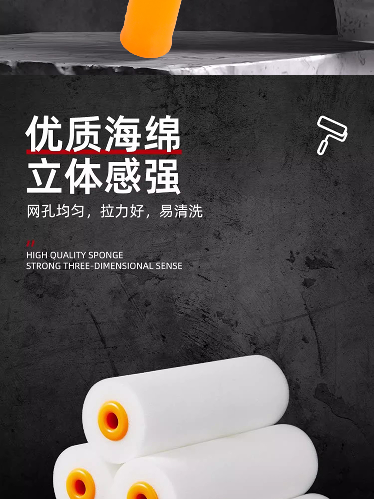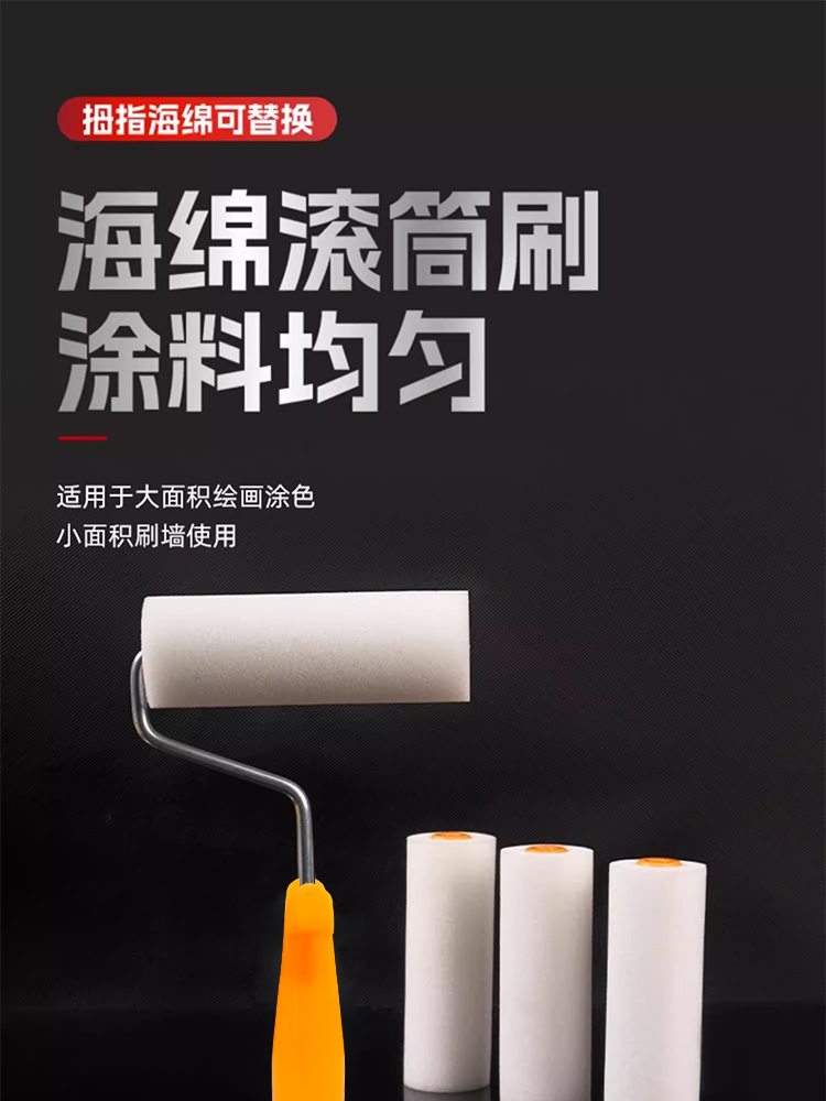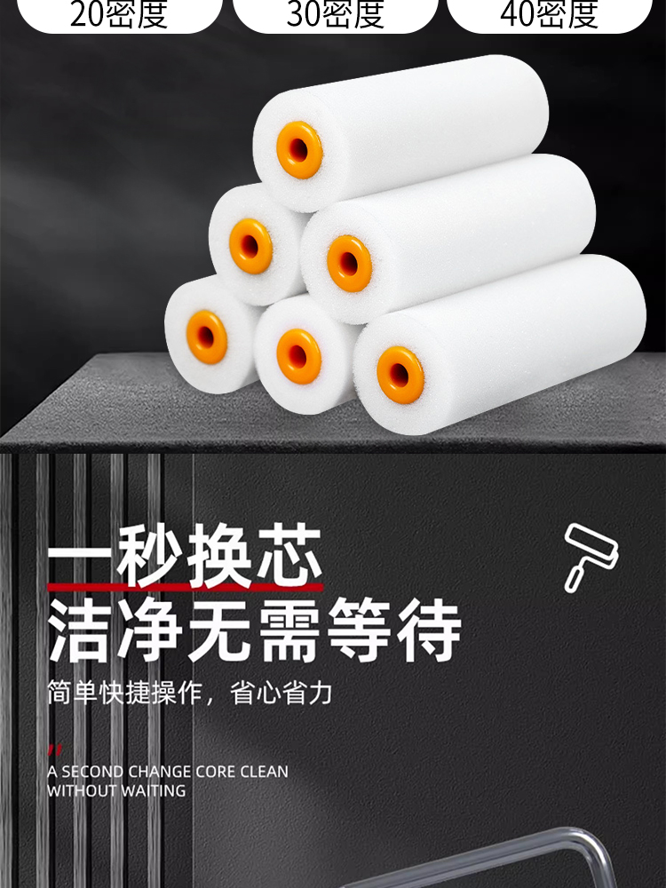 海绵滚筒刷高密度涂刷工具乳胶漆油漆涂料绘画艺术刷墙小拇指4寸