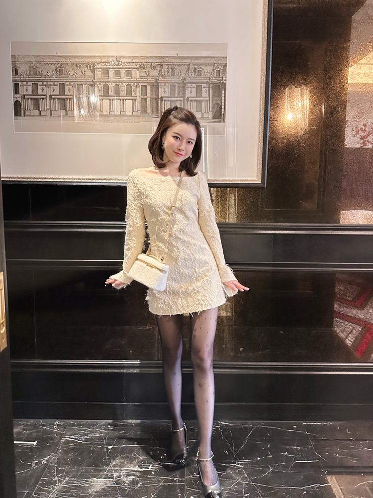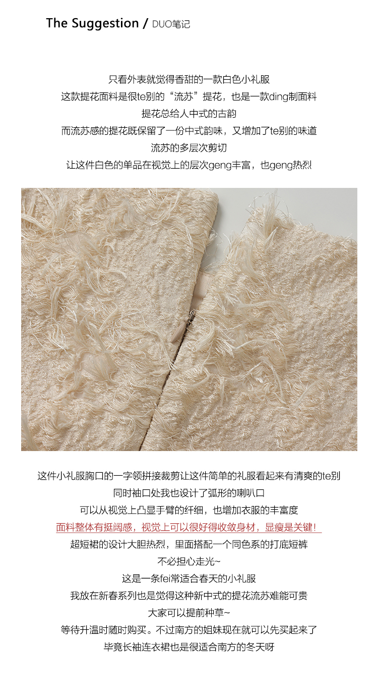 DUO智仙生黑标 禅庭 白色梦幻曲定制提花流苏新中式鸡尾酒小礼服
