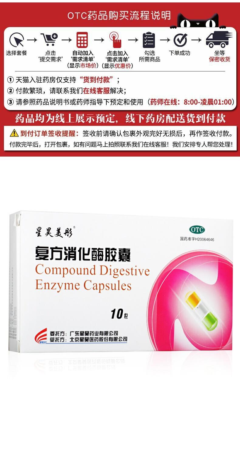 星昊美彤复方消化酶胶囊10粒/盒用于食物缺乏肠胃消化不良厌食