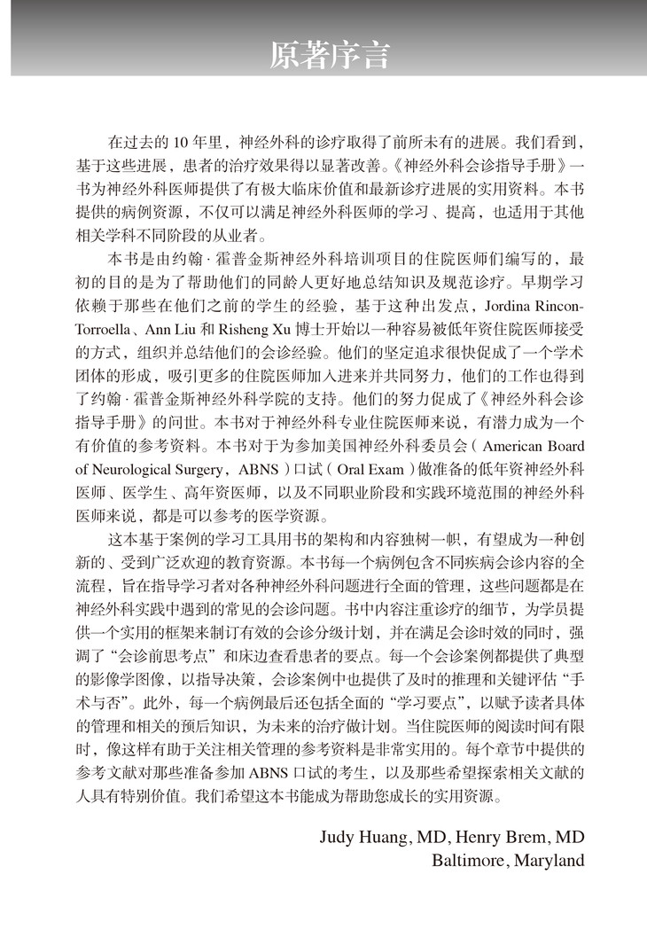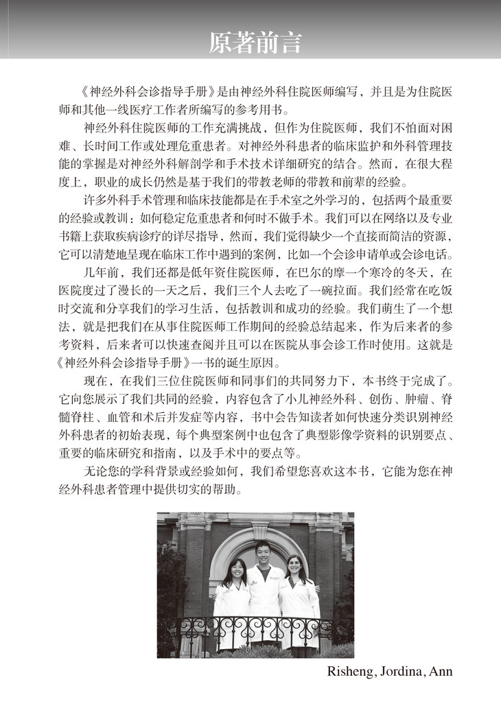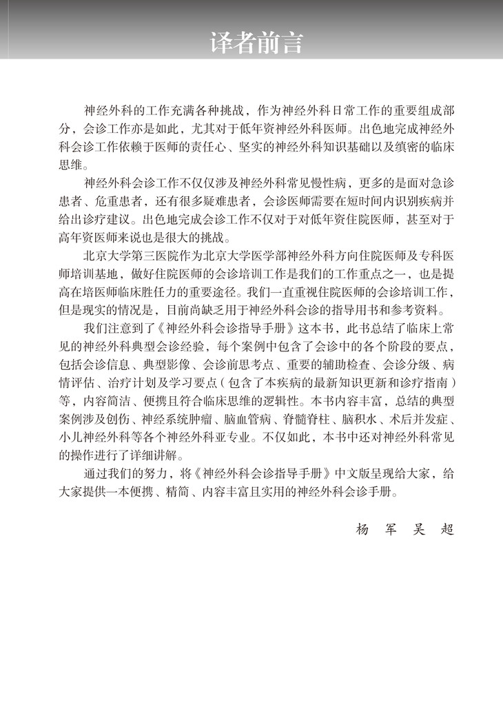 神经外科会诊工作不仅仅涉及神经外科常见慢性病,更多的是面对急诊患者、危重患者,还有很多疑难患者,会诊医生需要在短时间内识别疾病并给出诊疗建议。出色地完成会诊工作不仅对于对低年资住院医师、对于高年资医师来说也是很大的挑战。《神经外科会诊指导手册》总结了临床上常见的神经外科典型会诊经验,每个案例中包含了会诊中的各个阶段的要点,包括会诊信息、典型影像、会诊前思考、重要的辅助检查、会诊分级、病情评估、诊疗计划要点及学习要点(包含了本疾病的最新知识更新和诊疗指南)等,内容简洁、便携且符合临床思维的逻辑性。本书内容丰富,总结的典型案例涉及创伤、神经系统肿瘤、脊柱脊髓、脑积水、术后并发症、小儿神外等各个神经外科亚专业。