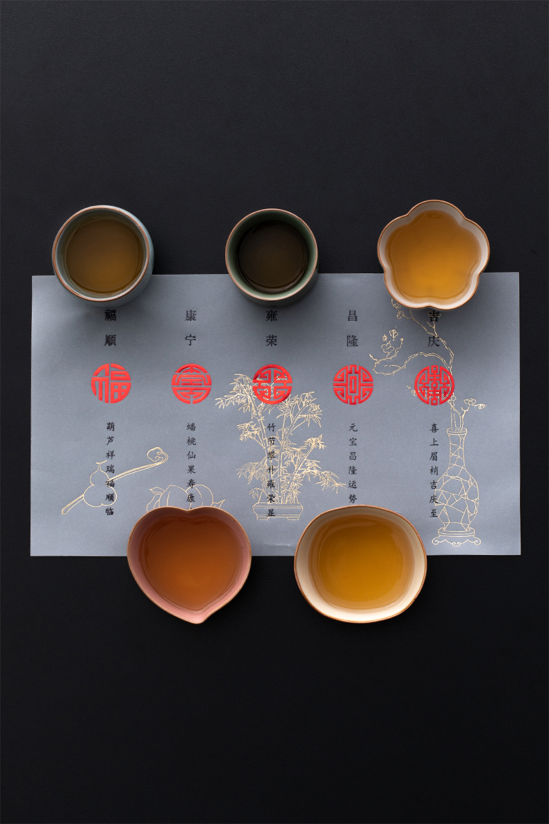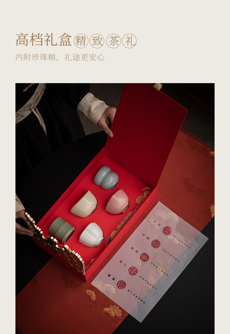 热卖!上新了故宫·汝窑五福杯 ,喝茶=接五帝福运!五种中国古典之美(5杯)红金礼盒装 赠手提礼袋