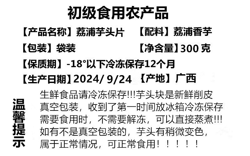 【关于售后】芋头片鲜切真空包装,运输中如遇轻微漏气,芋头片不坏,不在售后范围