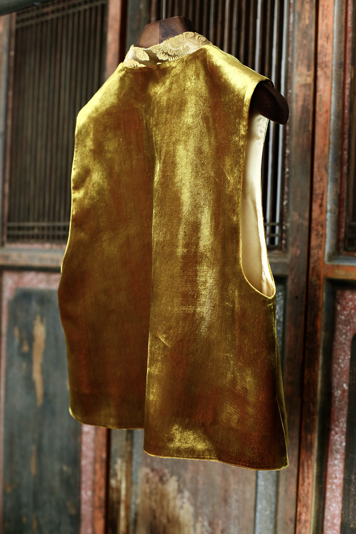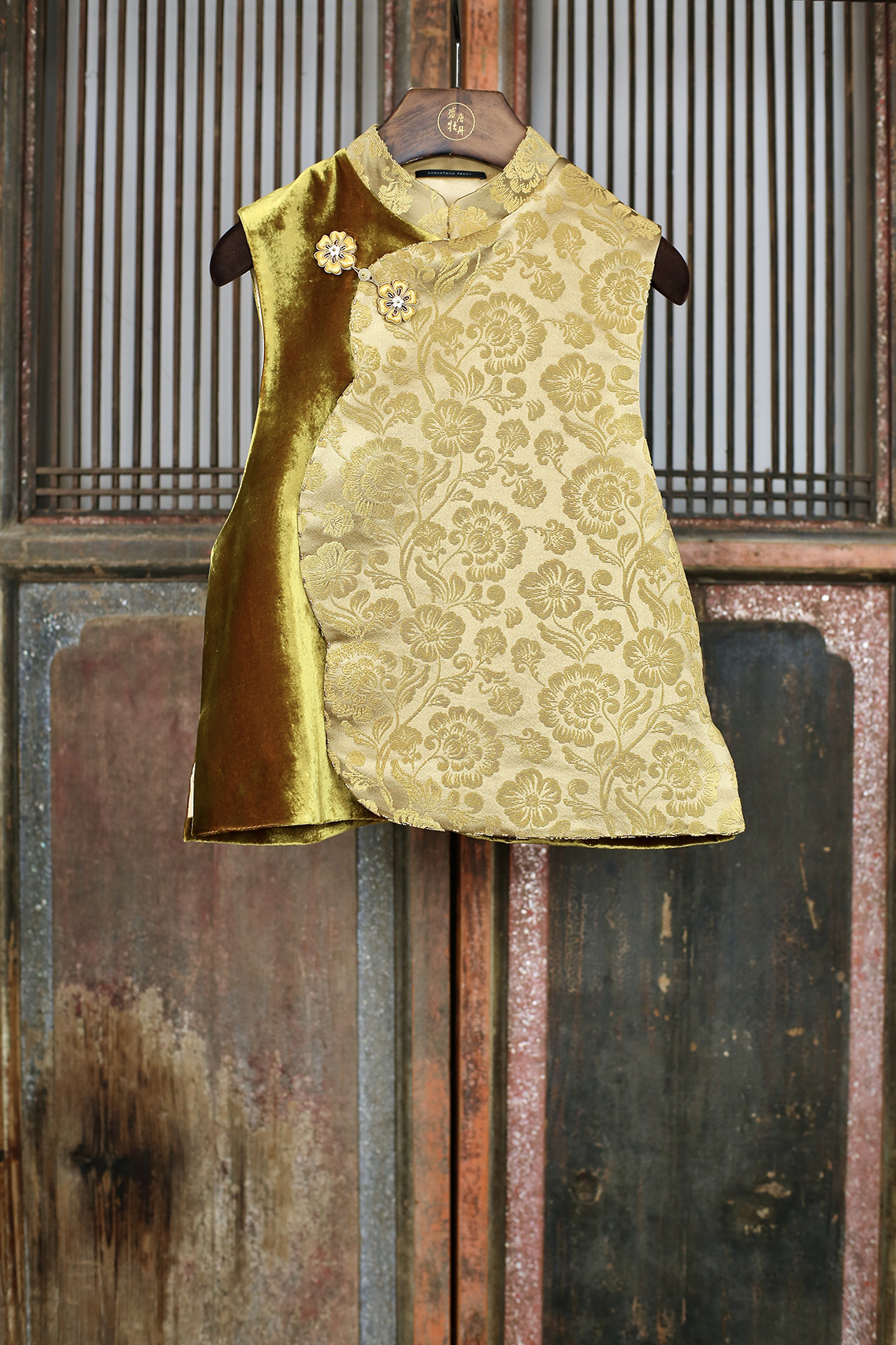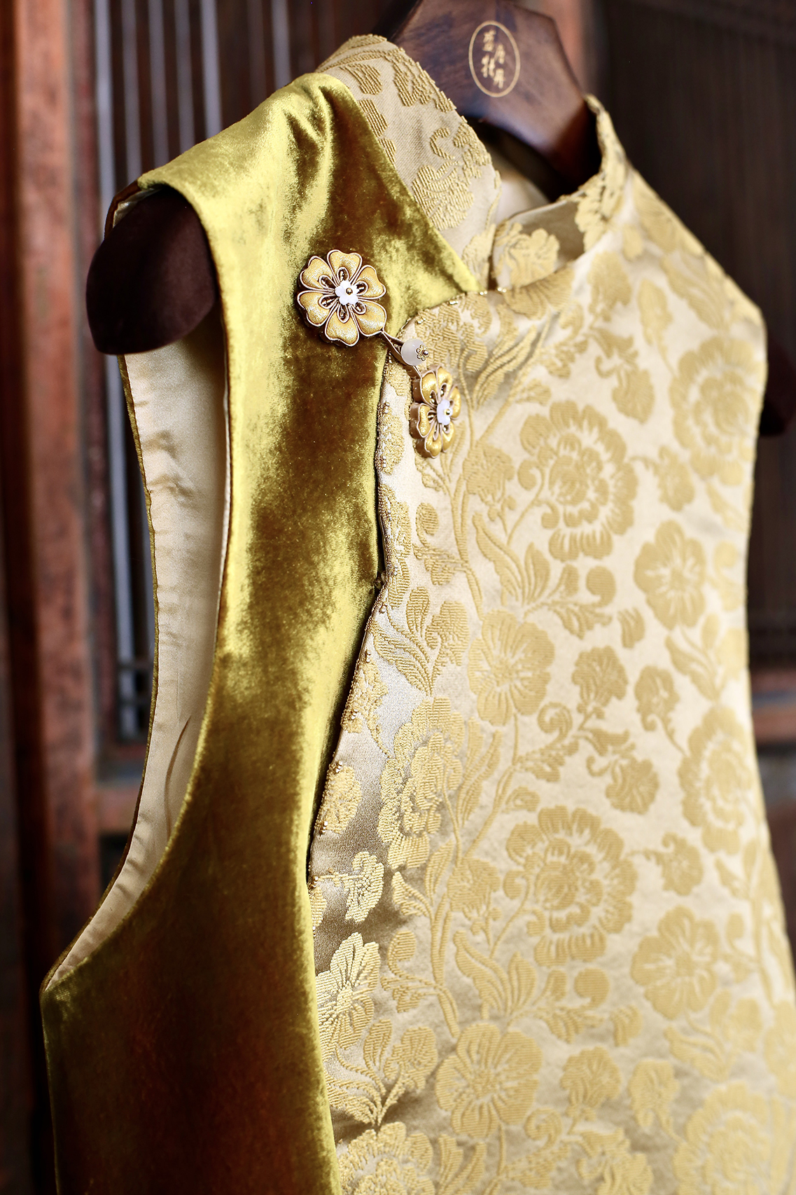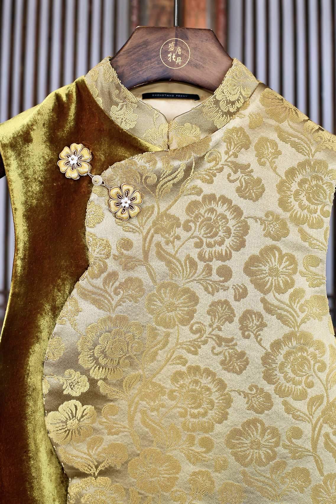 盛唐牡丹| 繁花纹真丝漳缎花瓣领马甲