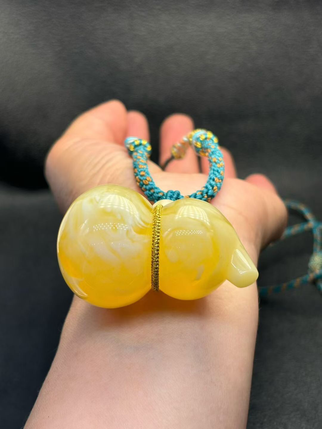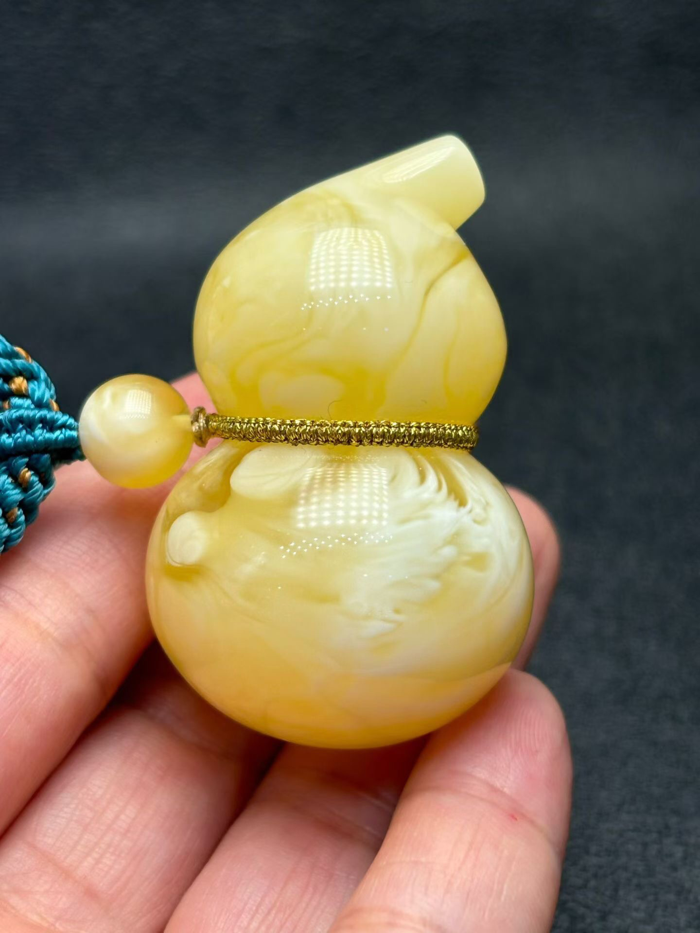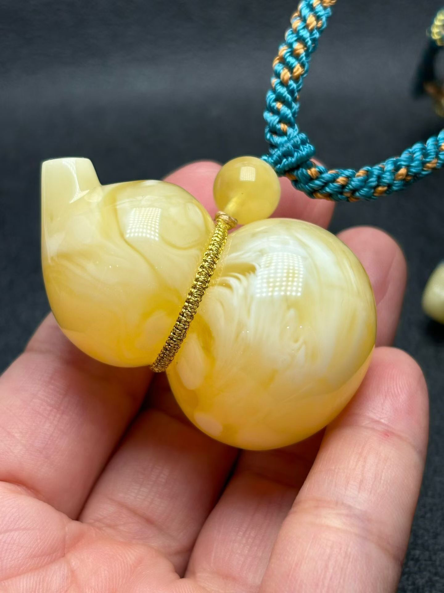 【青山特惠】精品原矿俄料白花蜜蜡葫芦吊坠 ,搭配纯手工编绳,27.68克 m326