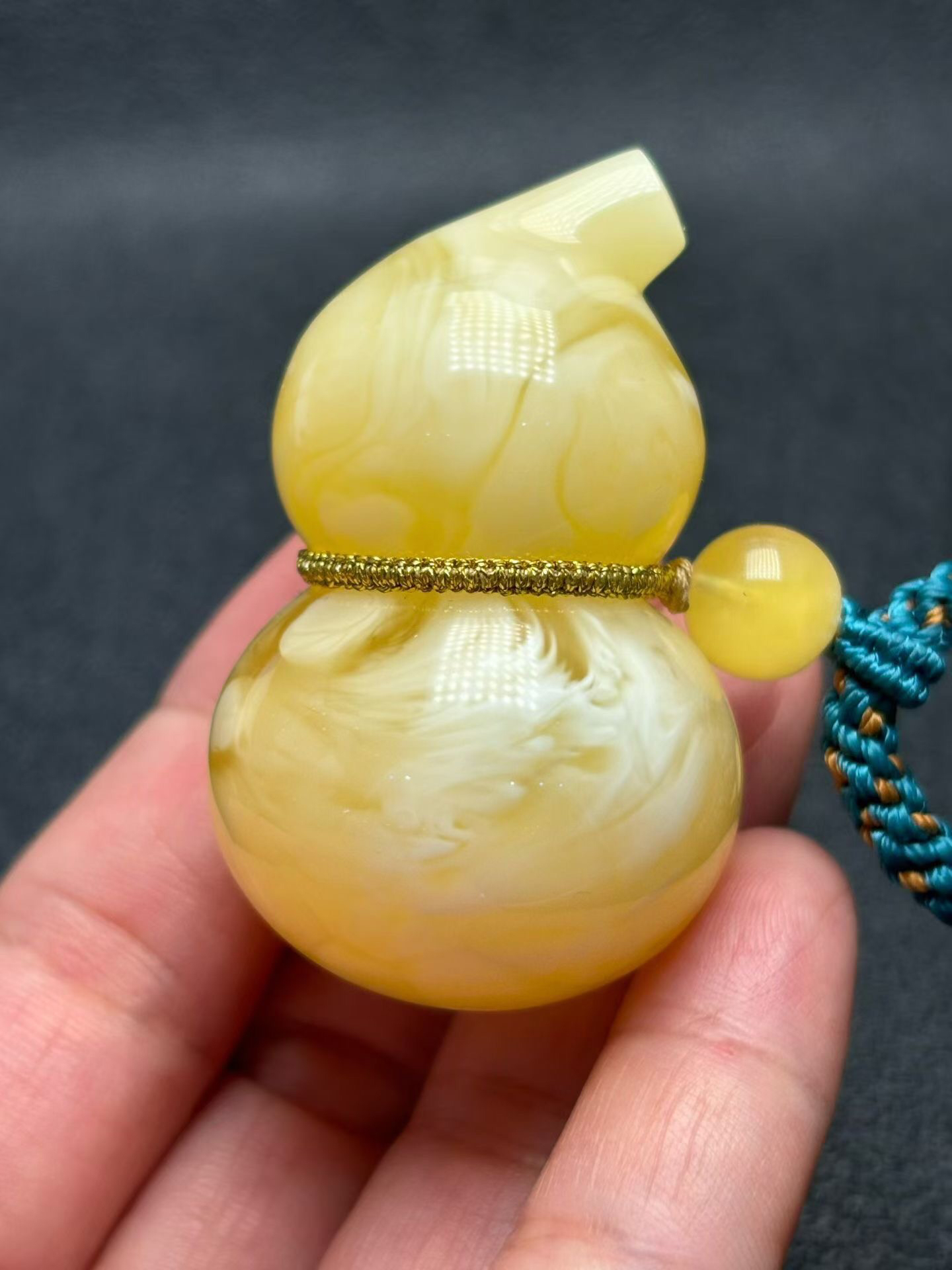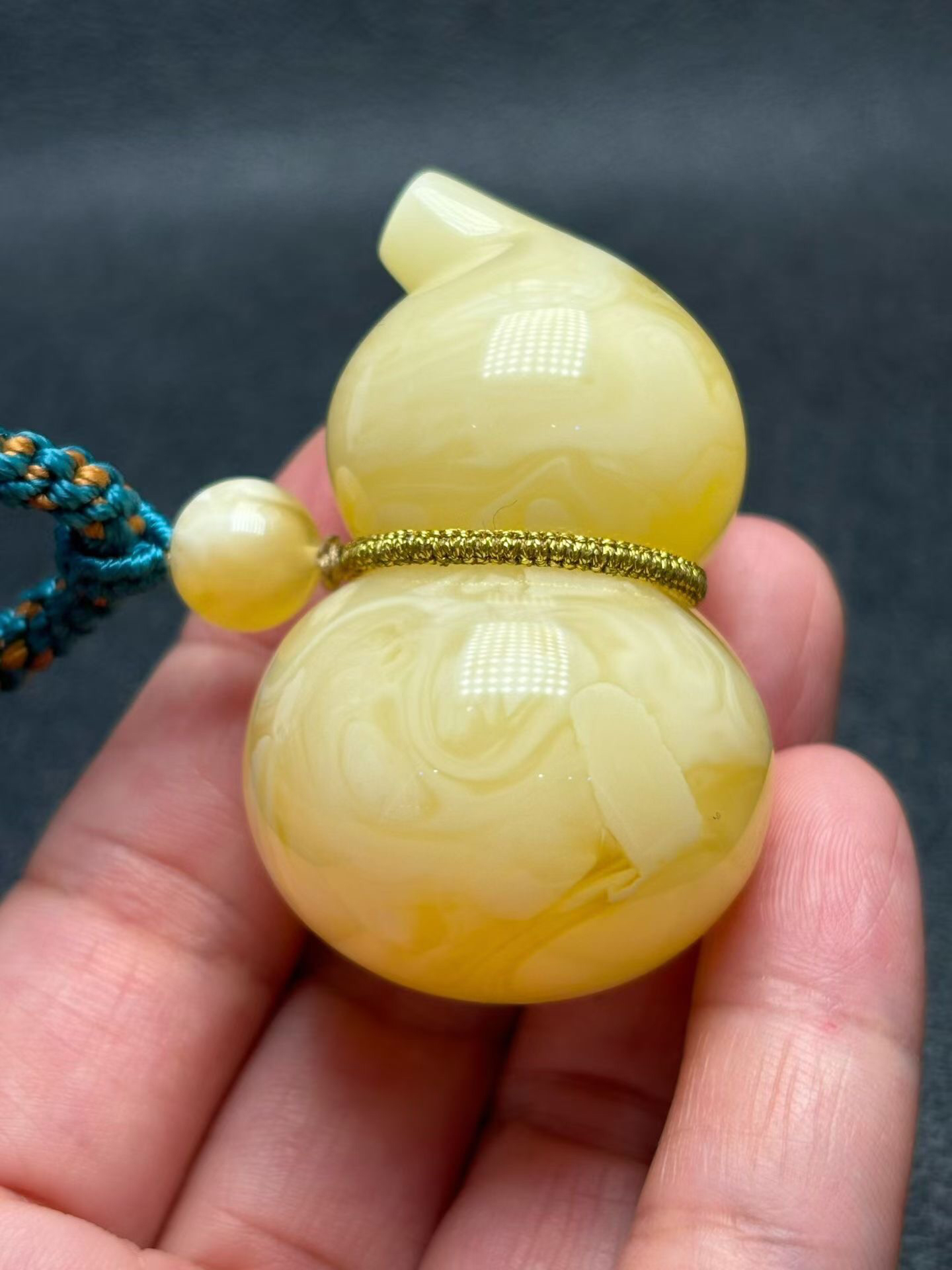 天然原矿白花蜜蜡葫芦吊坠,拉丝妖花纹理,蜡质浓郁,立体精工器型,完美无瑕品质,实物超靓!搭配纯手工蜜蜡绳,佩戴超大气上档次!