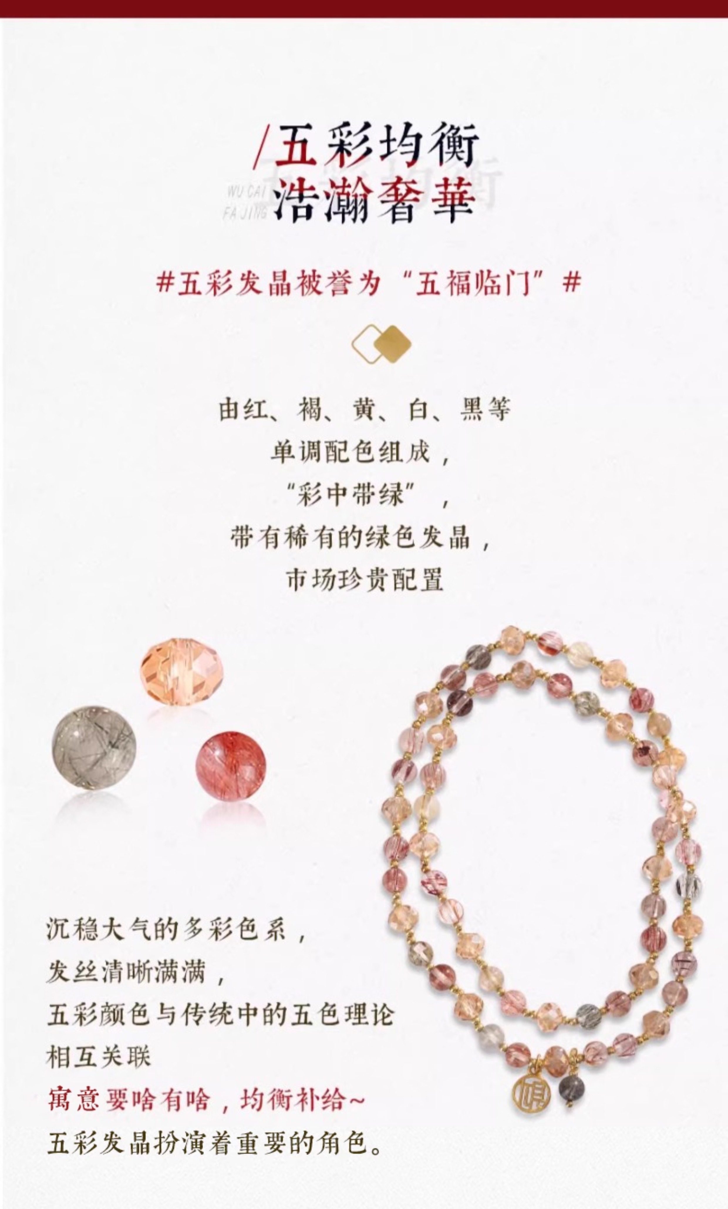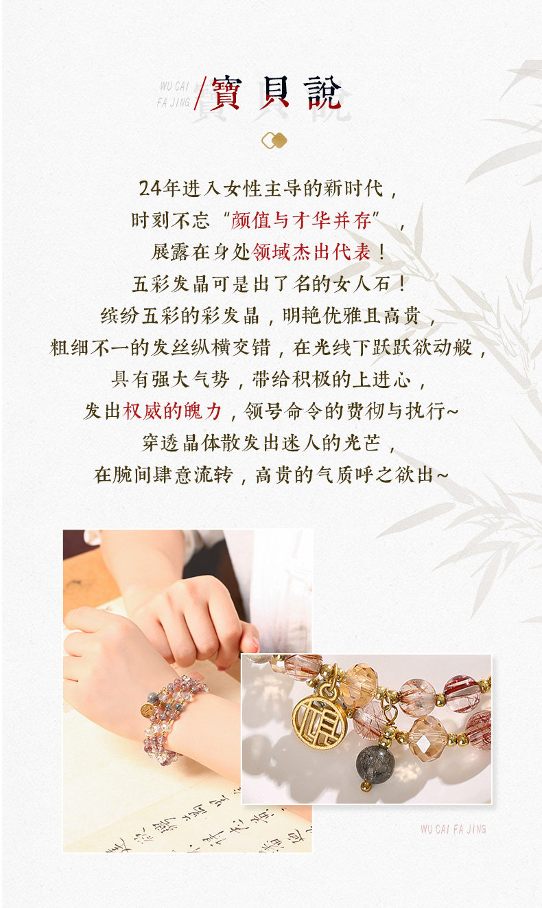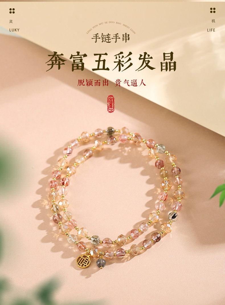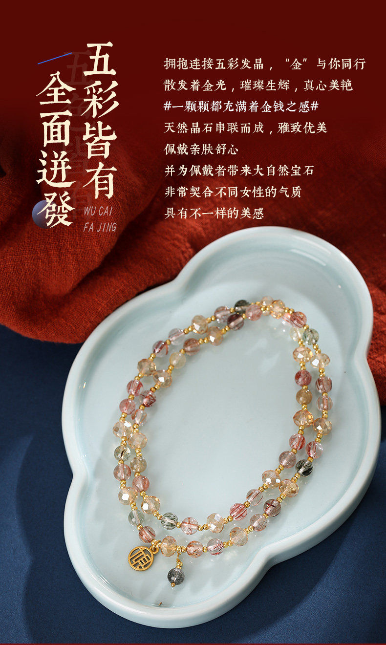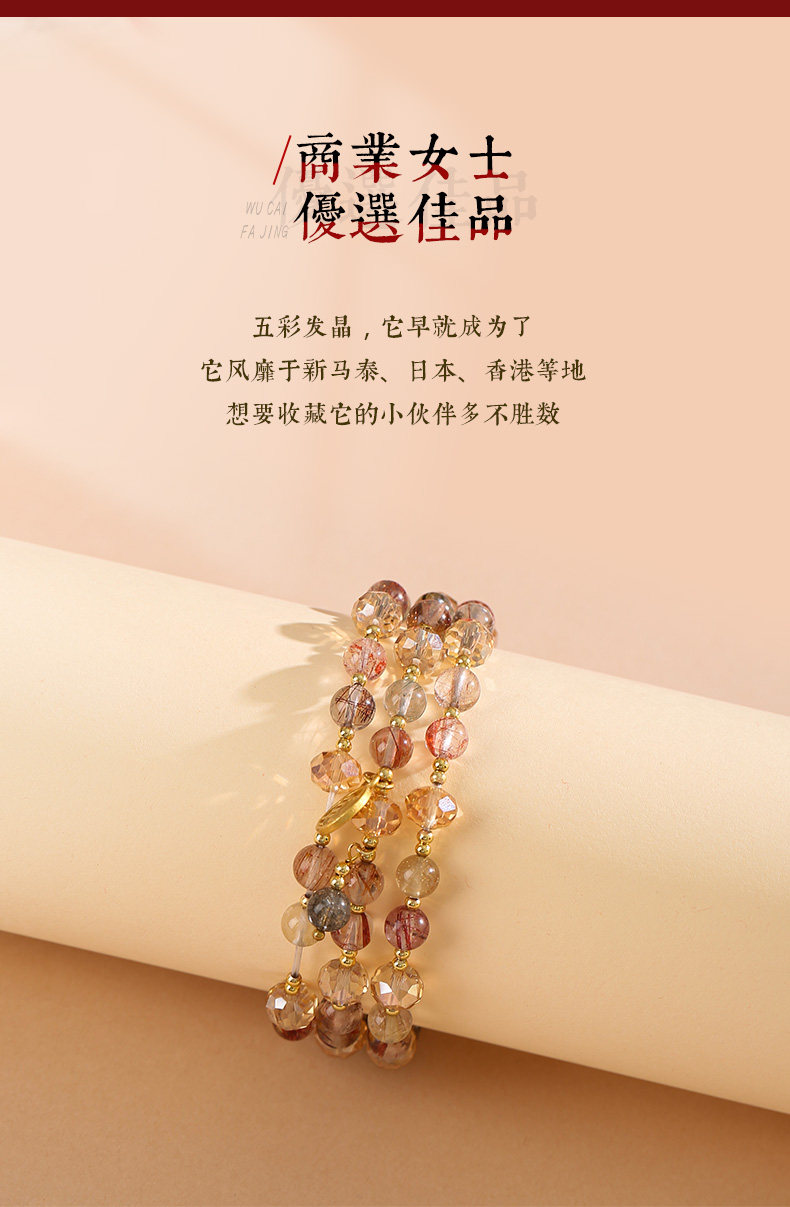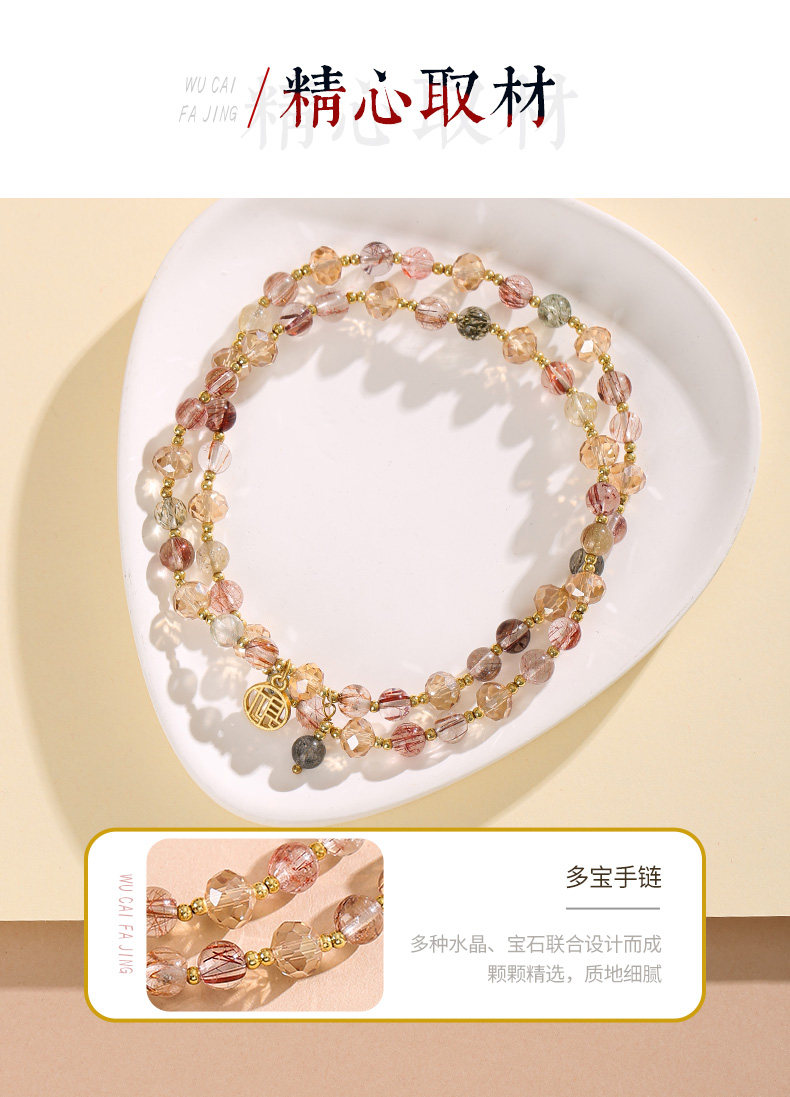 【祈愿吉品】彩虹发晶三圈手链多宝叠戴手链