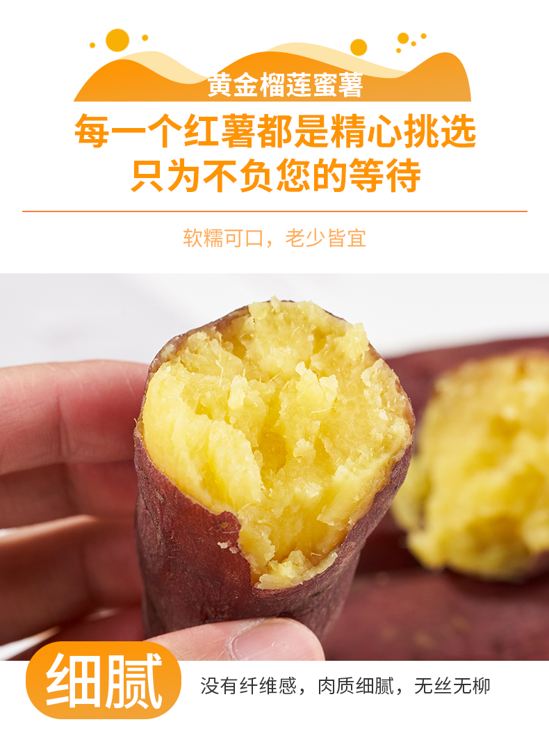 【特别提醒】榴莲蜜薯它的生长个头差异比较大,所以收到会觉得有大有小这个是正常的,大小不影响口感,介意个头慎拍~
