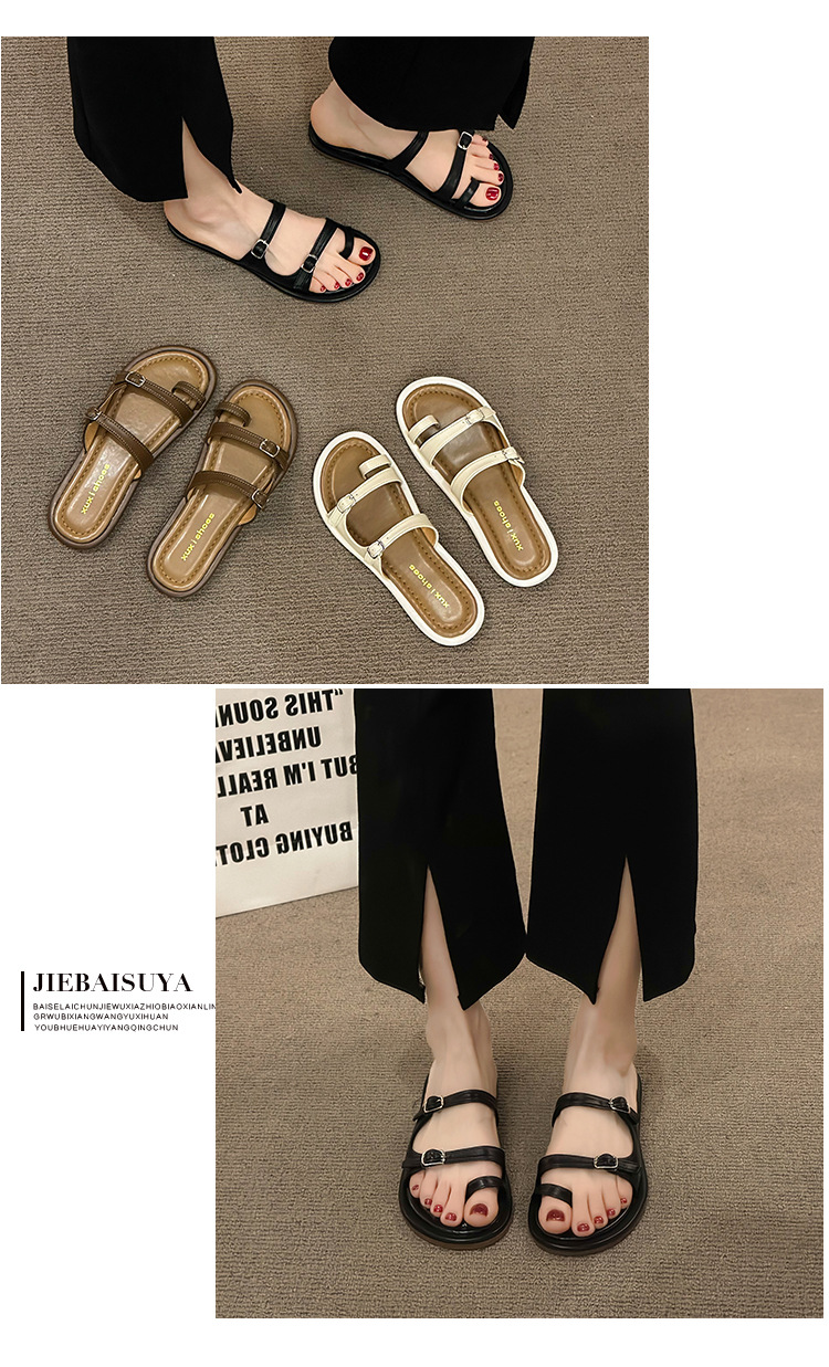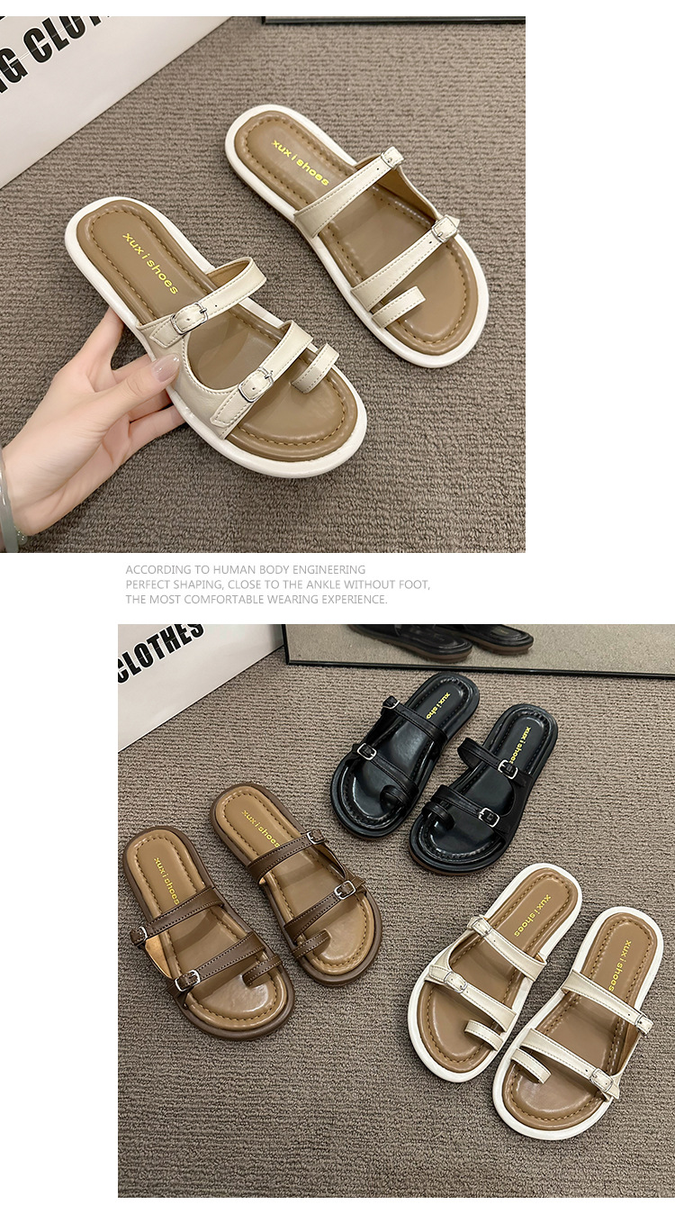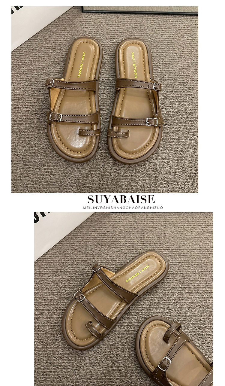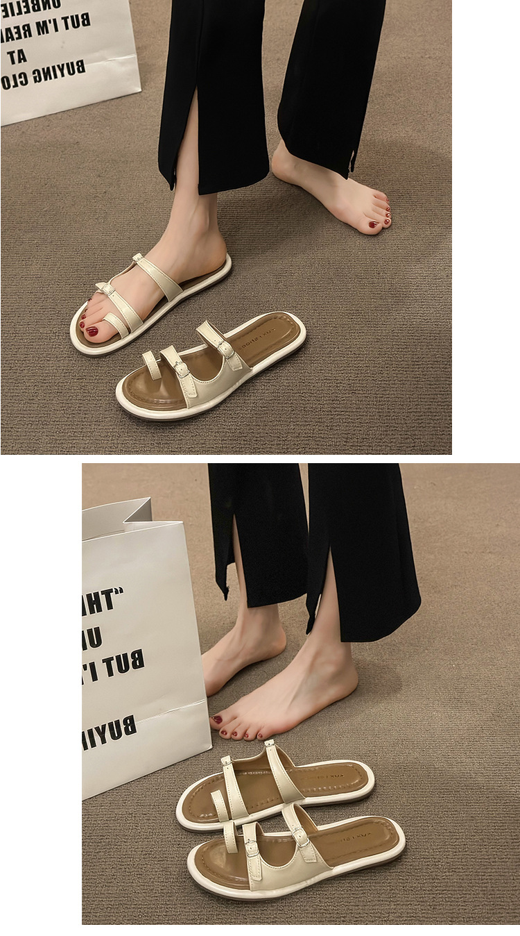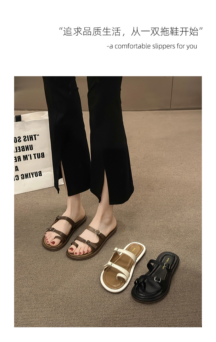 法式套趾凉拖鞋女 外穿春夏新款 韩版仙女风复古一脚蹬凉拖 脚宽胖拍大一码