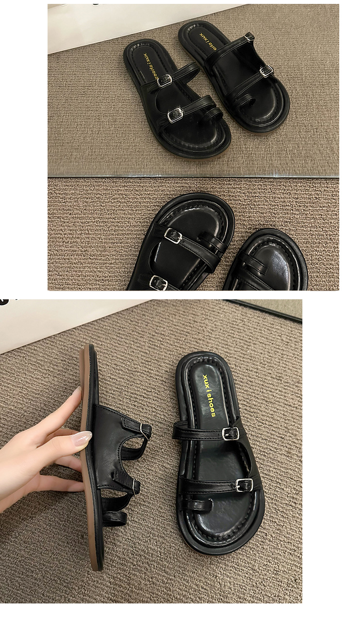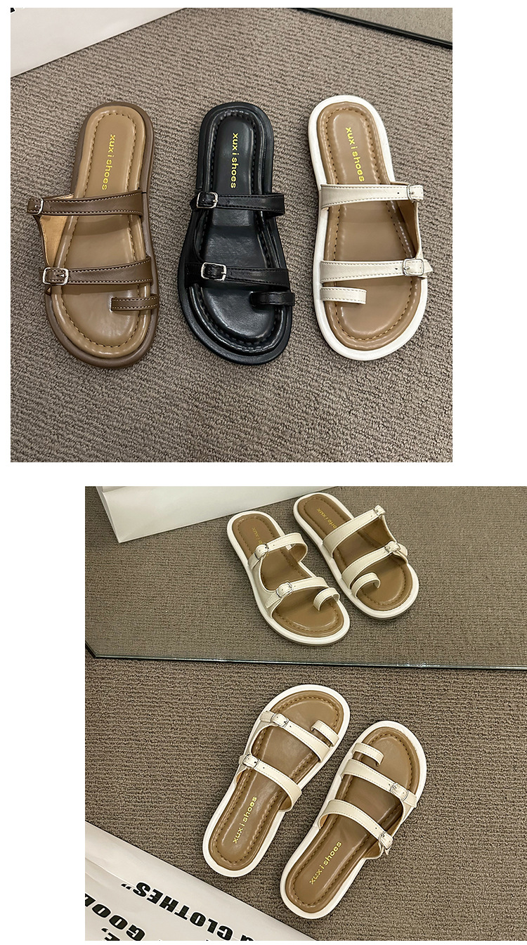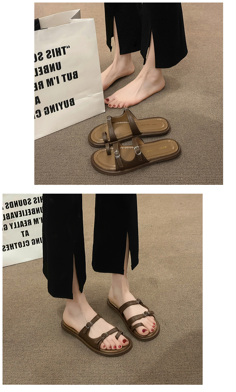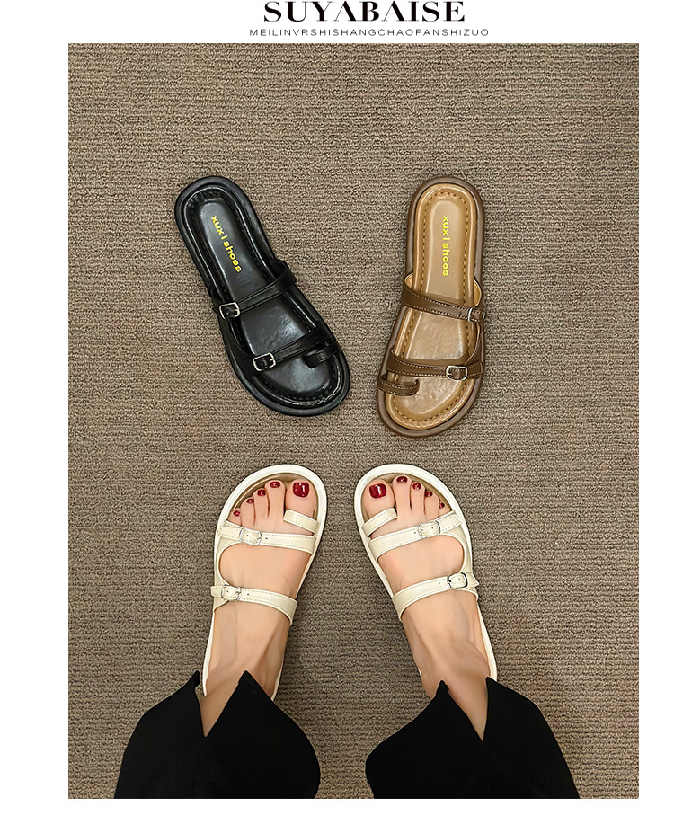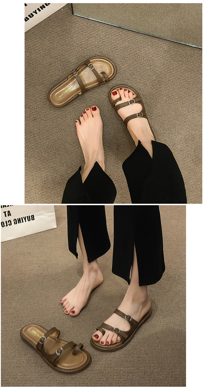 法式套趾凉拖鞋女 外穿春夏新款 韩版仙女风复古一脚蹬凉拖 脚宽胖拍大一码