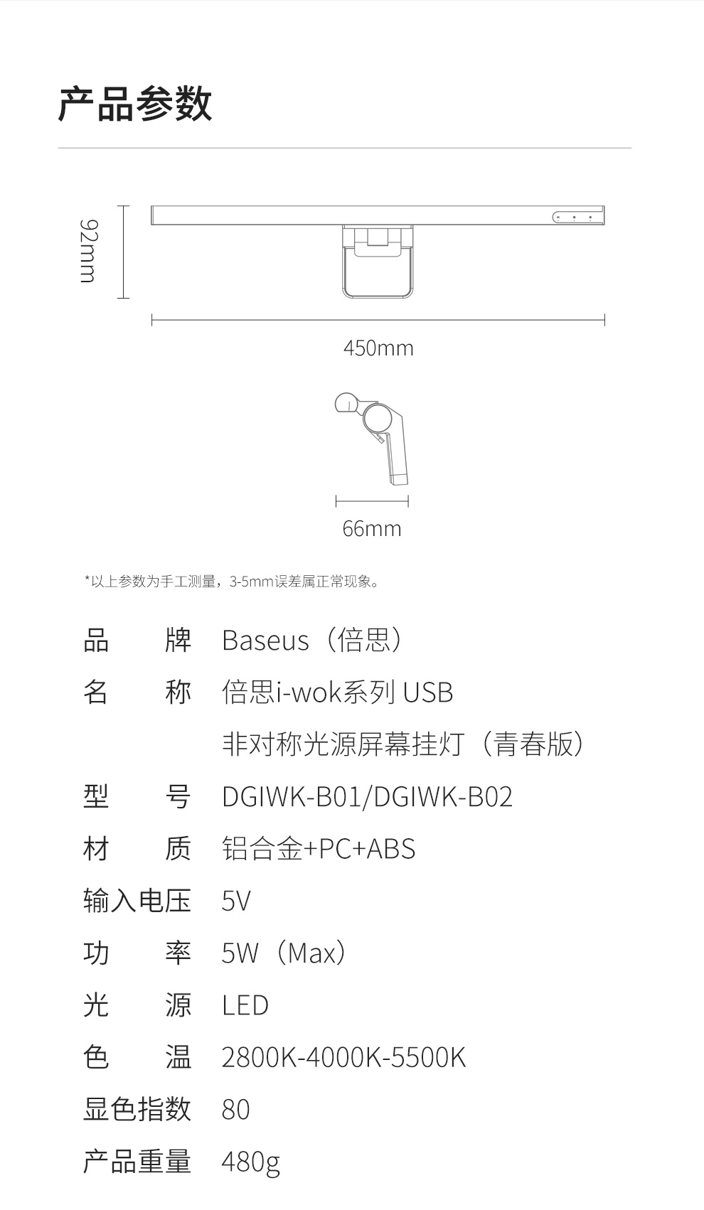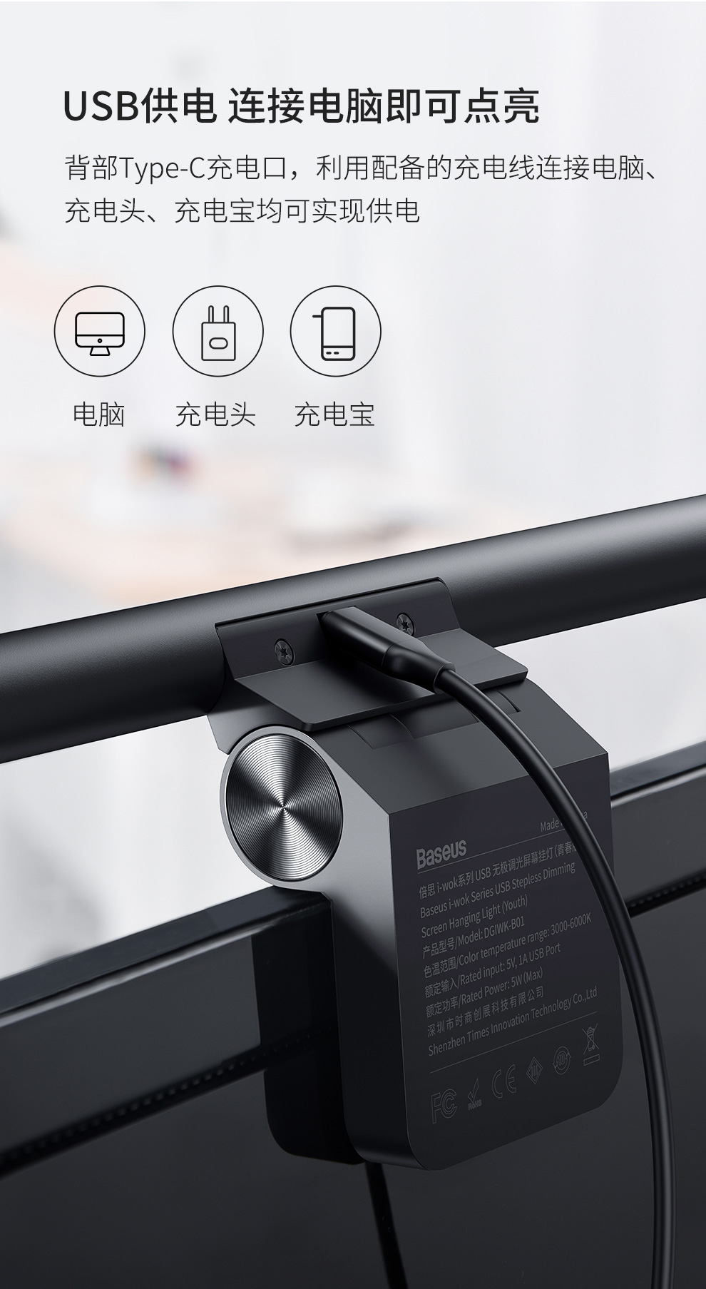 【十一专享】倍思 i-wok系列 USB 非对称光源屏幕挂灯(青春版)