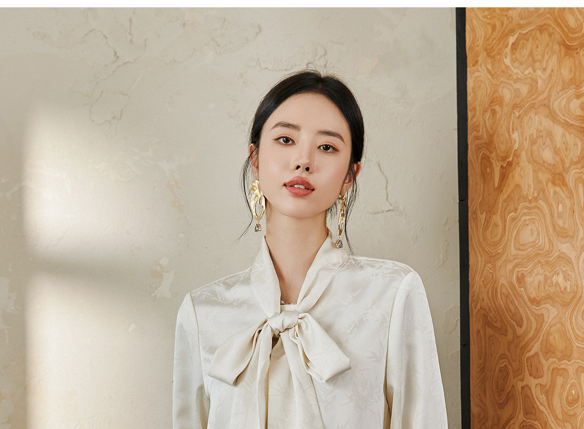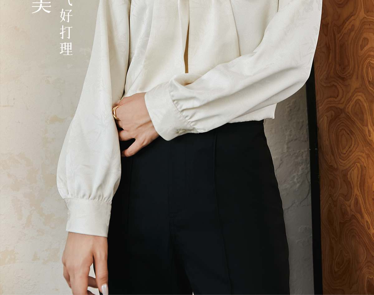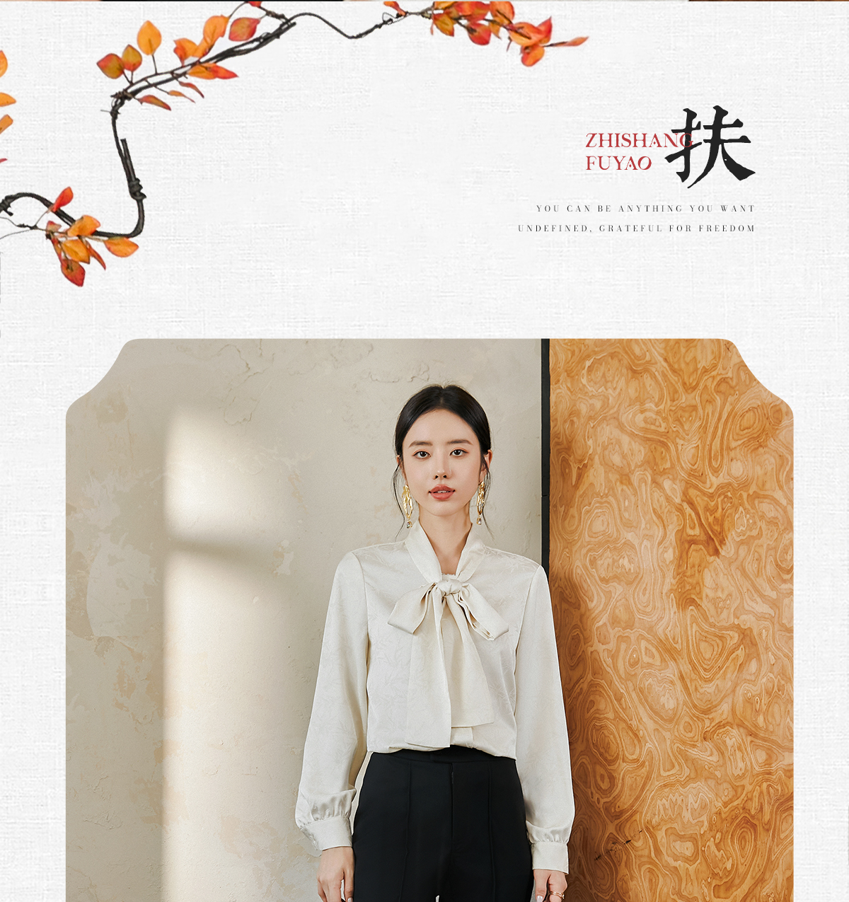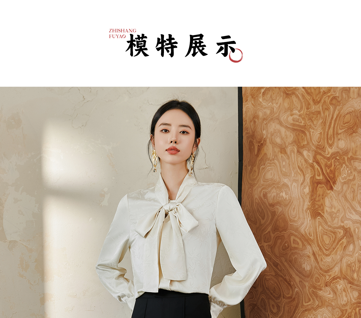 FUYAO扶摇 白色缎面衬衫2025秋国风灯笼袖上衣新中式复古提花衬衣