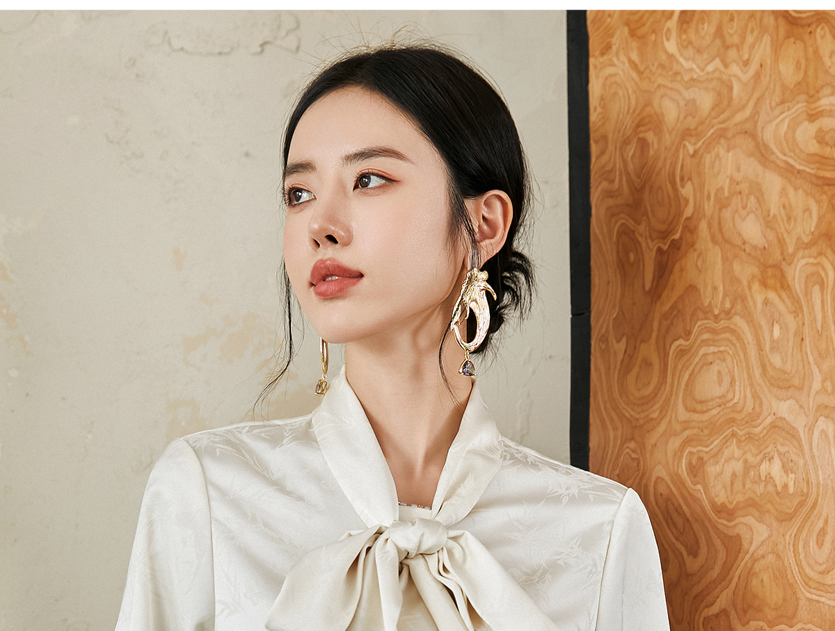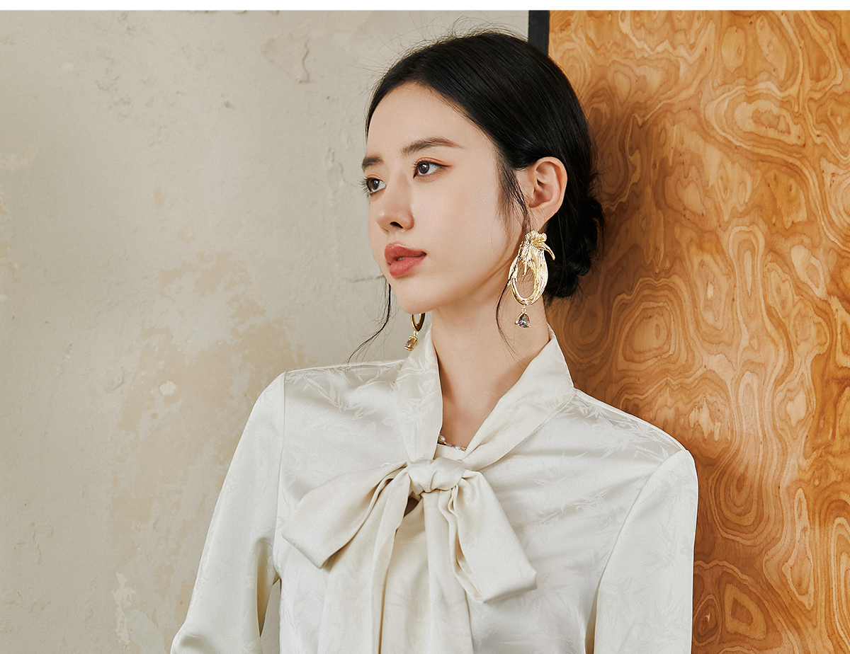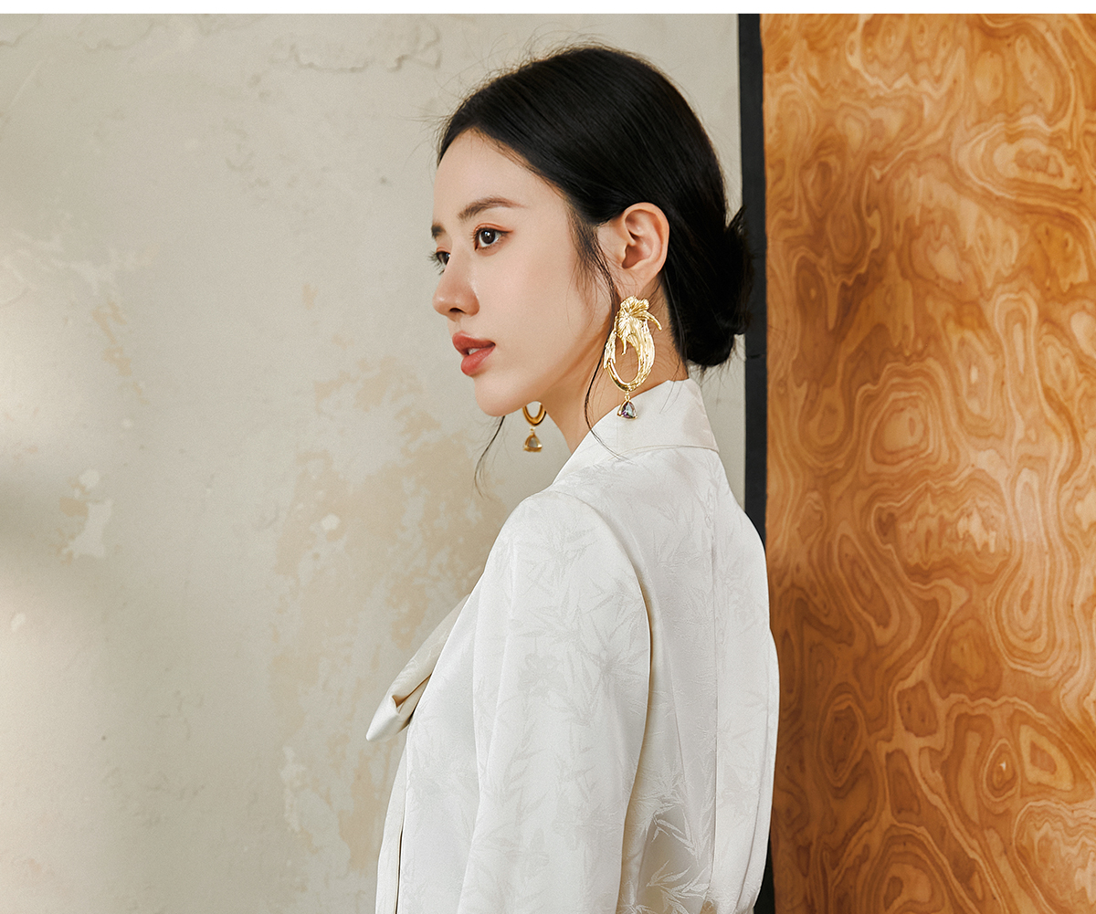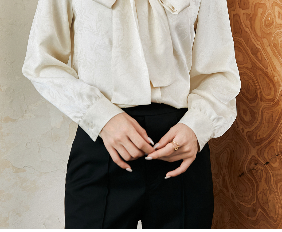 FUYAO扶摇 白色缎面衬衫2025秋国风灯笼袖上衣新中式复古提花衬衣