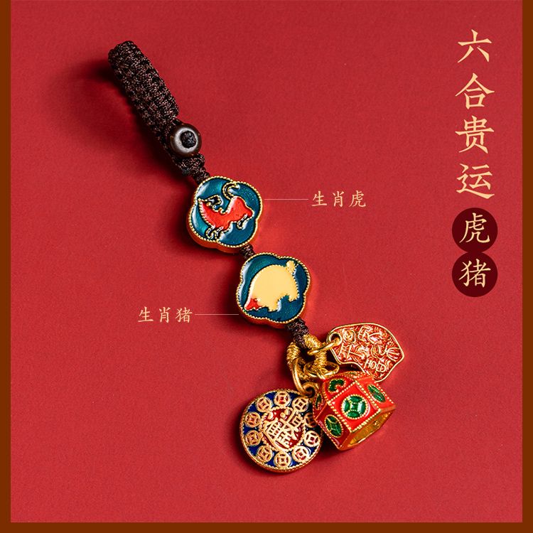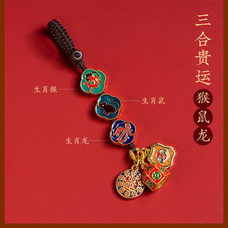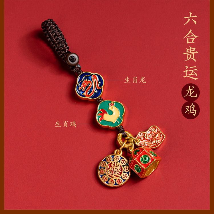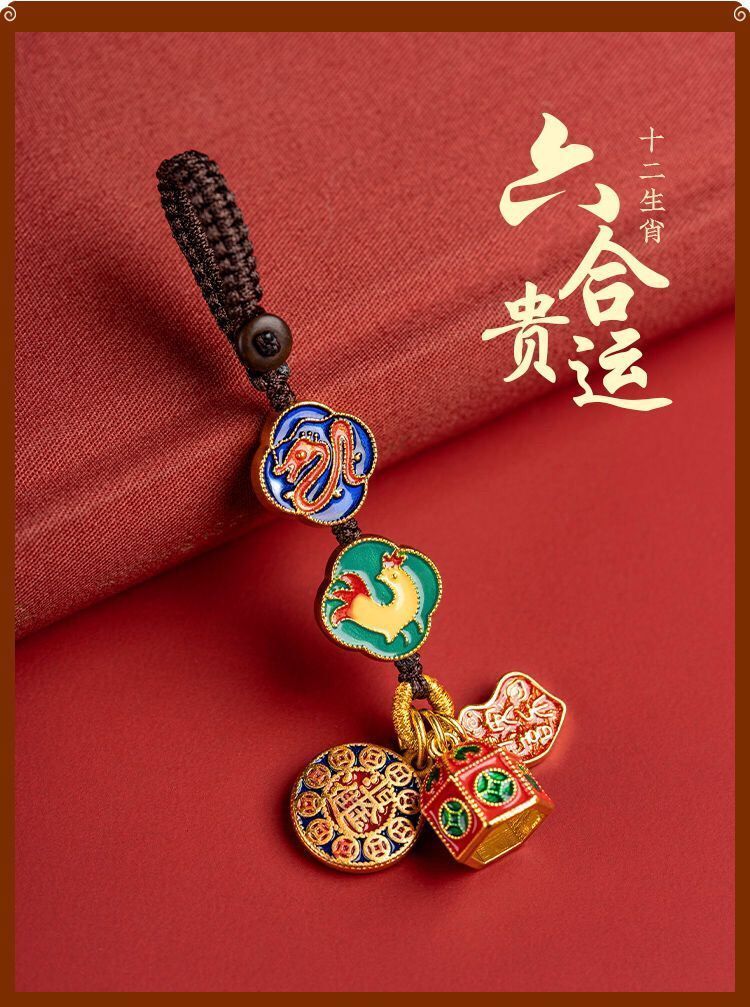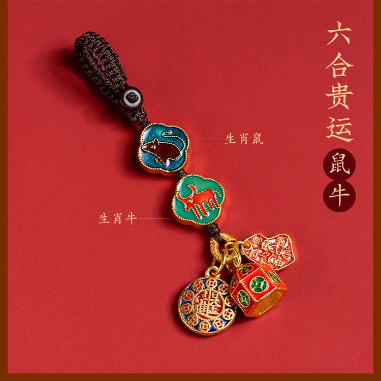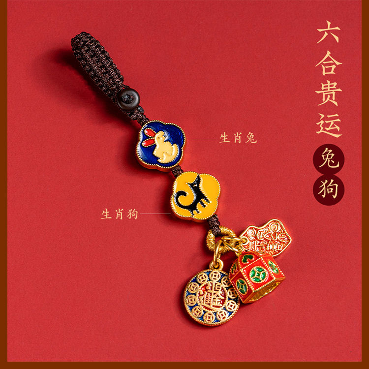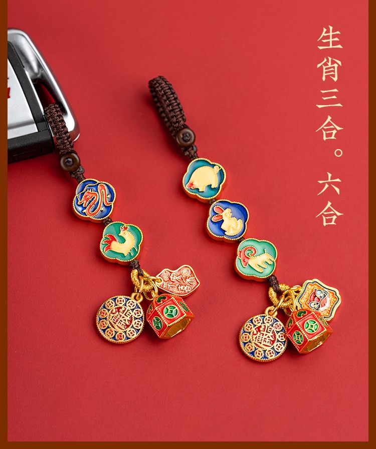 古法金生肖三合六合汽车钥匙扣挂件沙金铜本命年钥匙链包挂饰男女