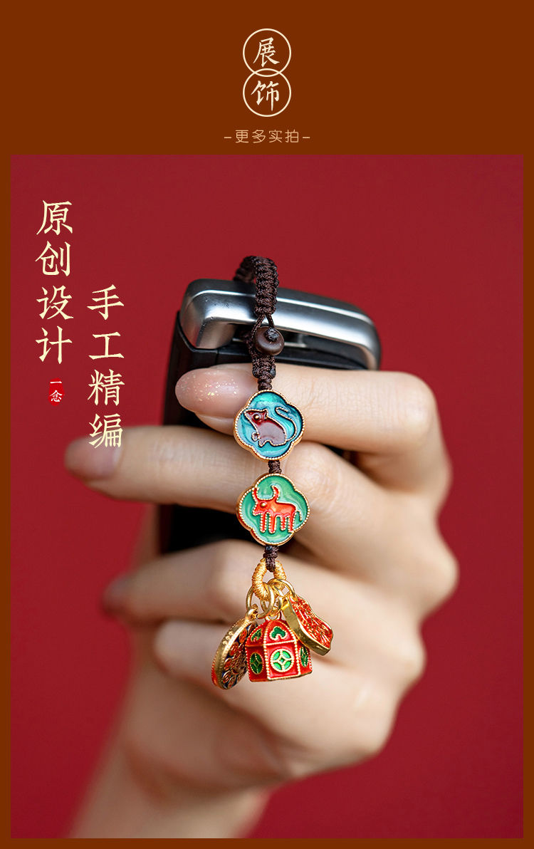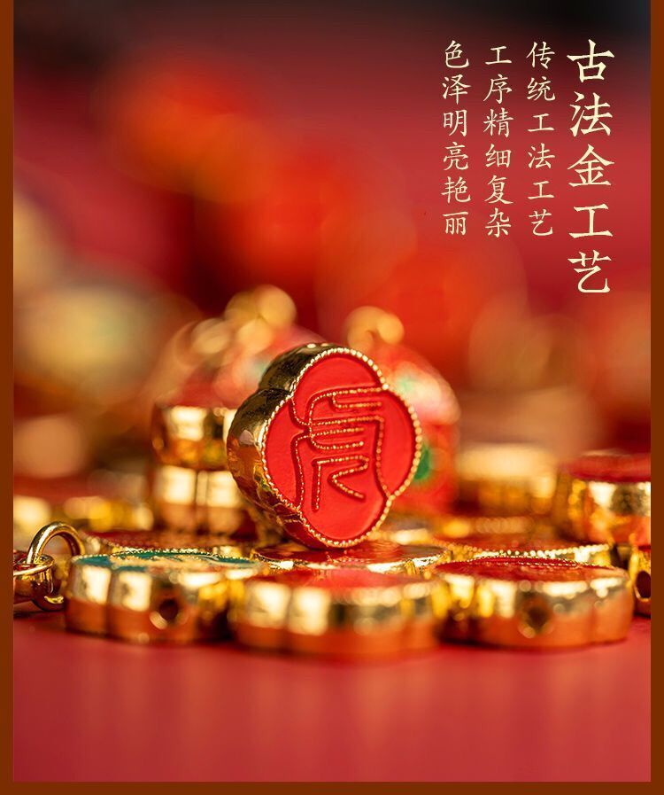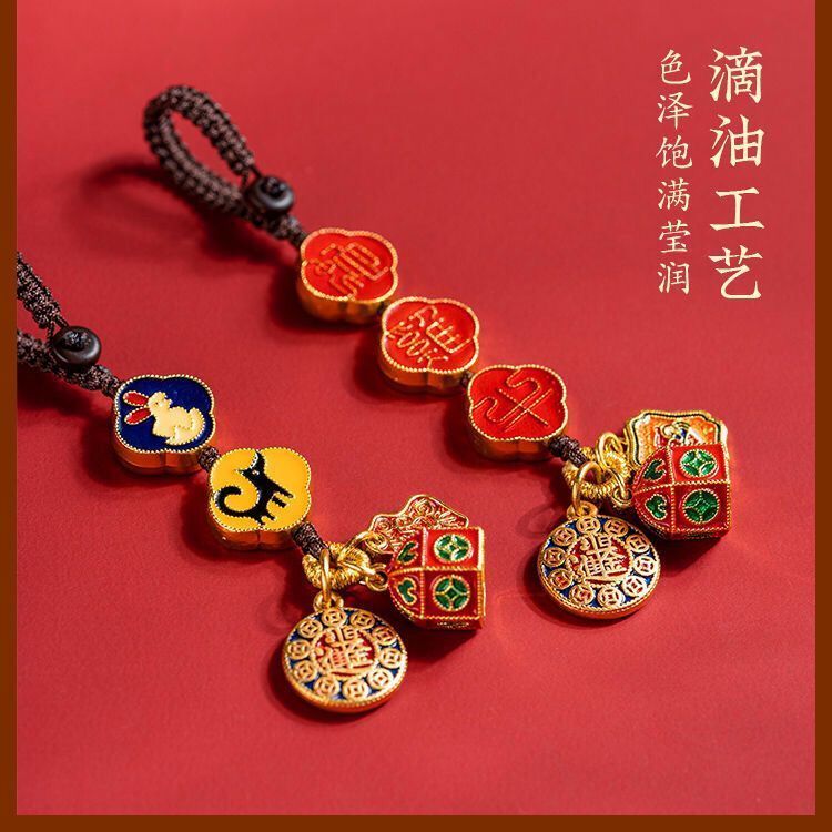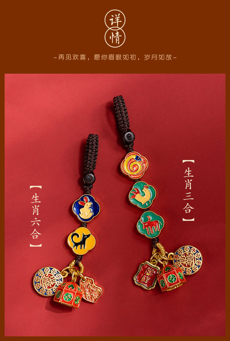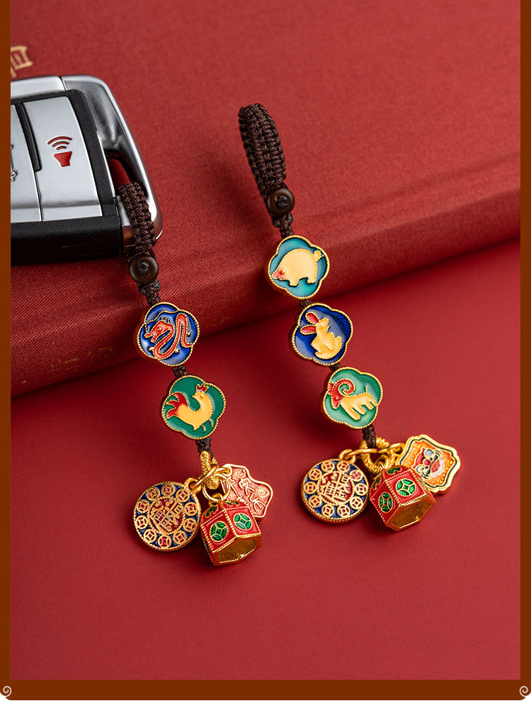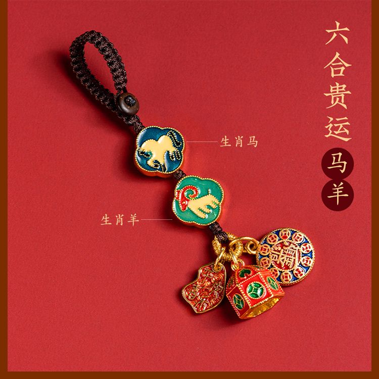 古法金生肖三合六合汽车钥匙扣挂件沙金铜本命年钥匙链包挂饰男女